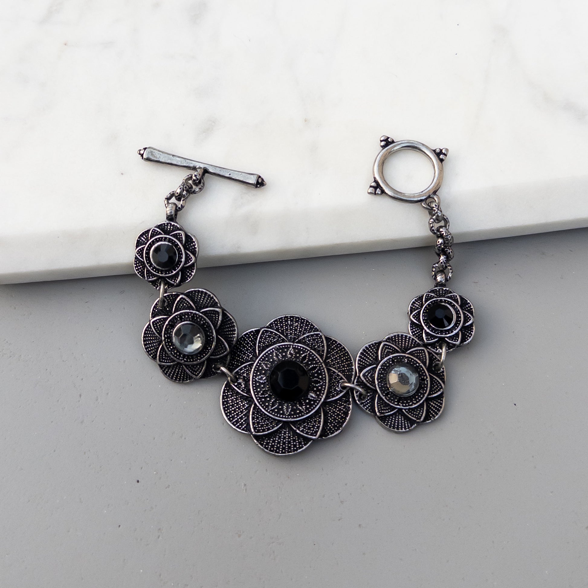 - Bratara fabricata din metal, cu cristale de sticla aplicate.