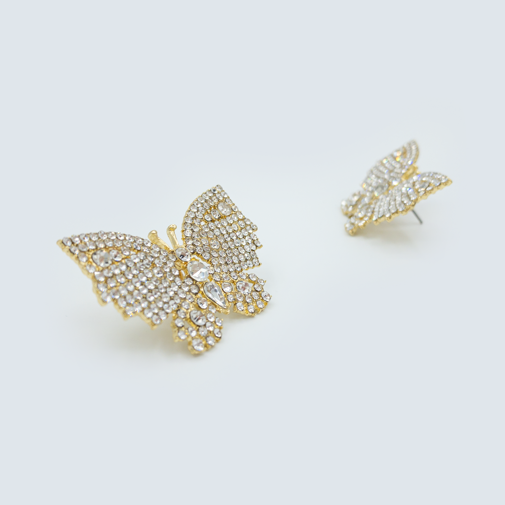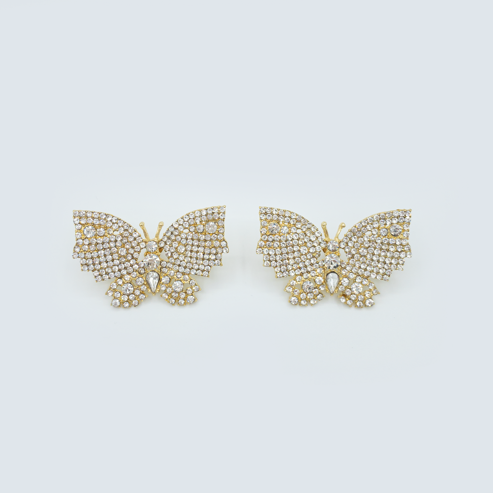 - Cercei de metal in forma de fluture , decorati cu strasuri de sticla , aliaj zinc
