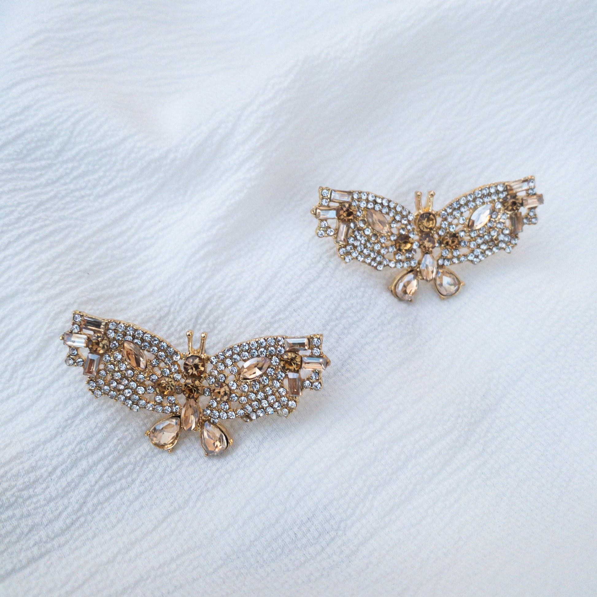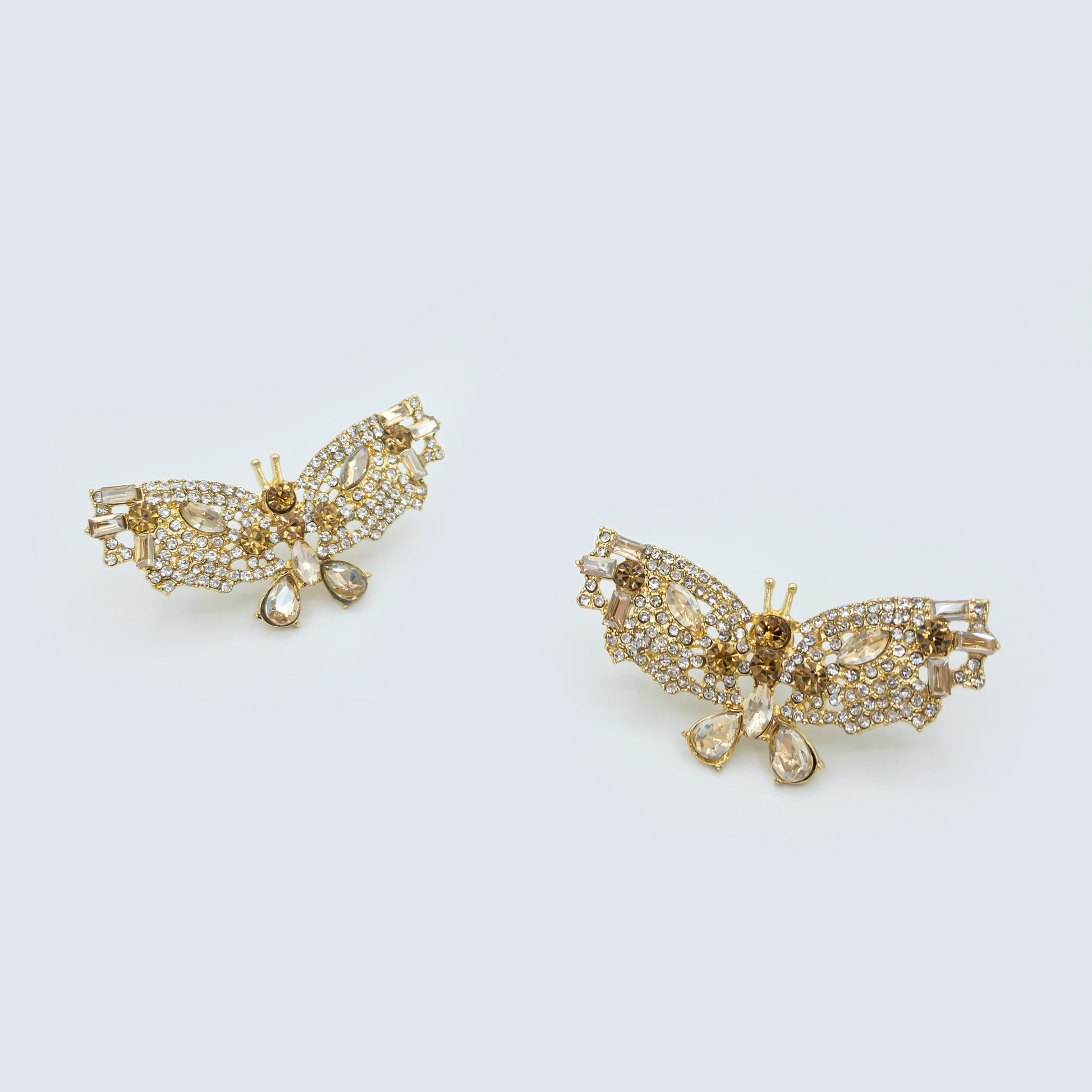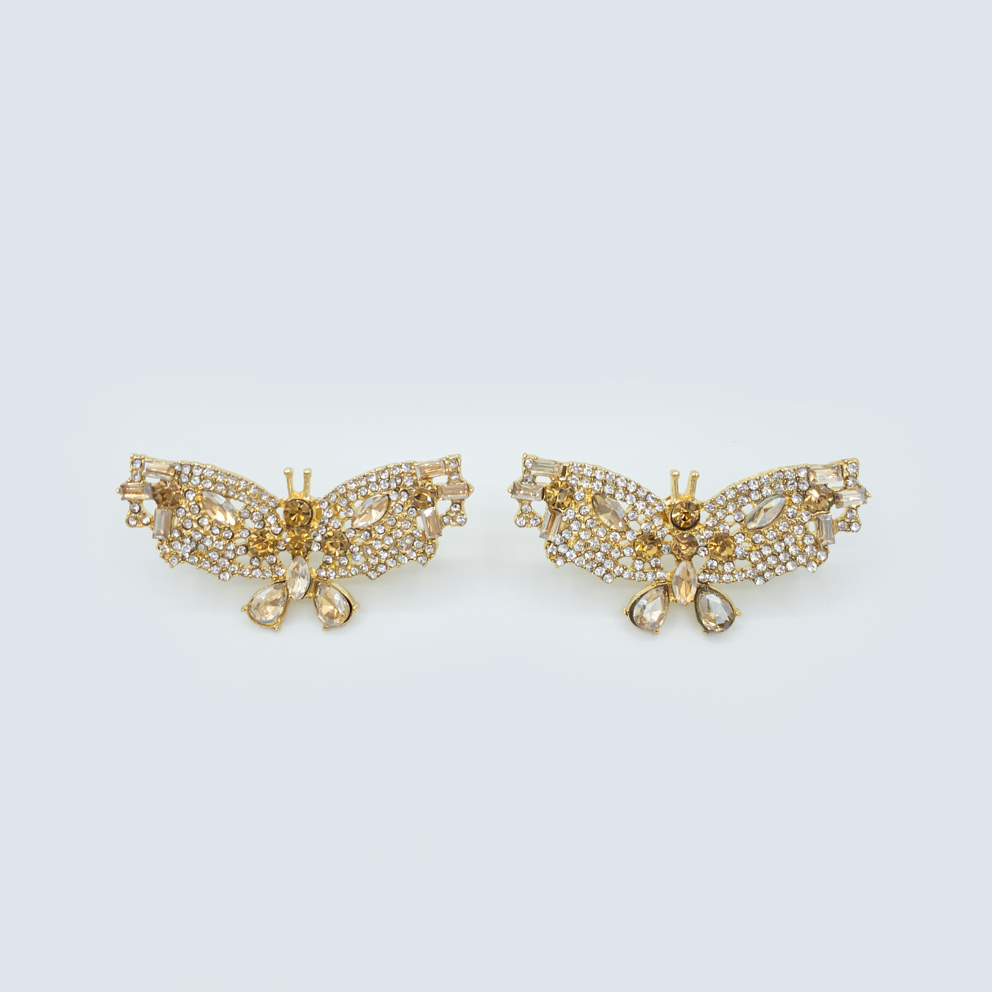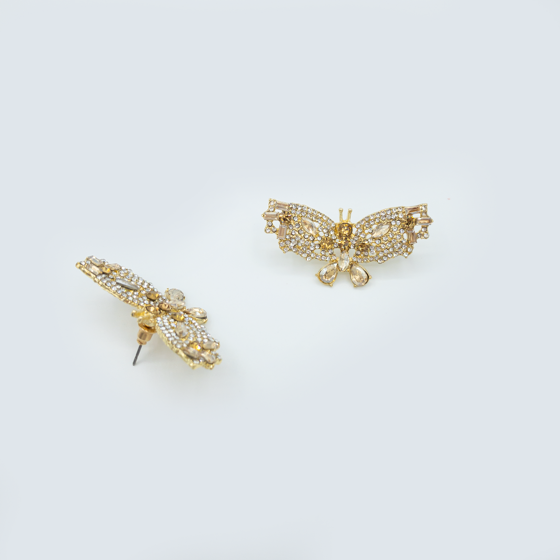 - Cercei de metal in forma de fluture , decorati cu strasuri de sticla