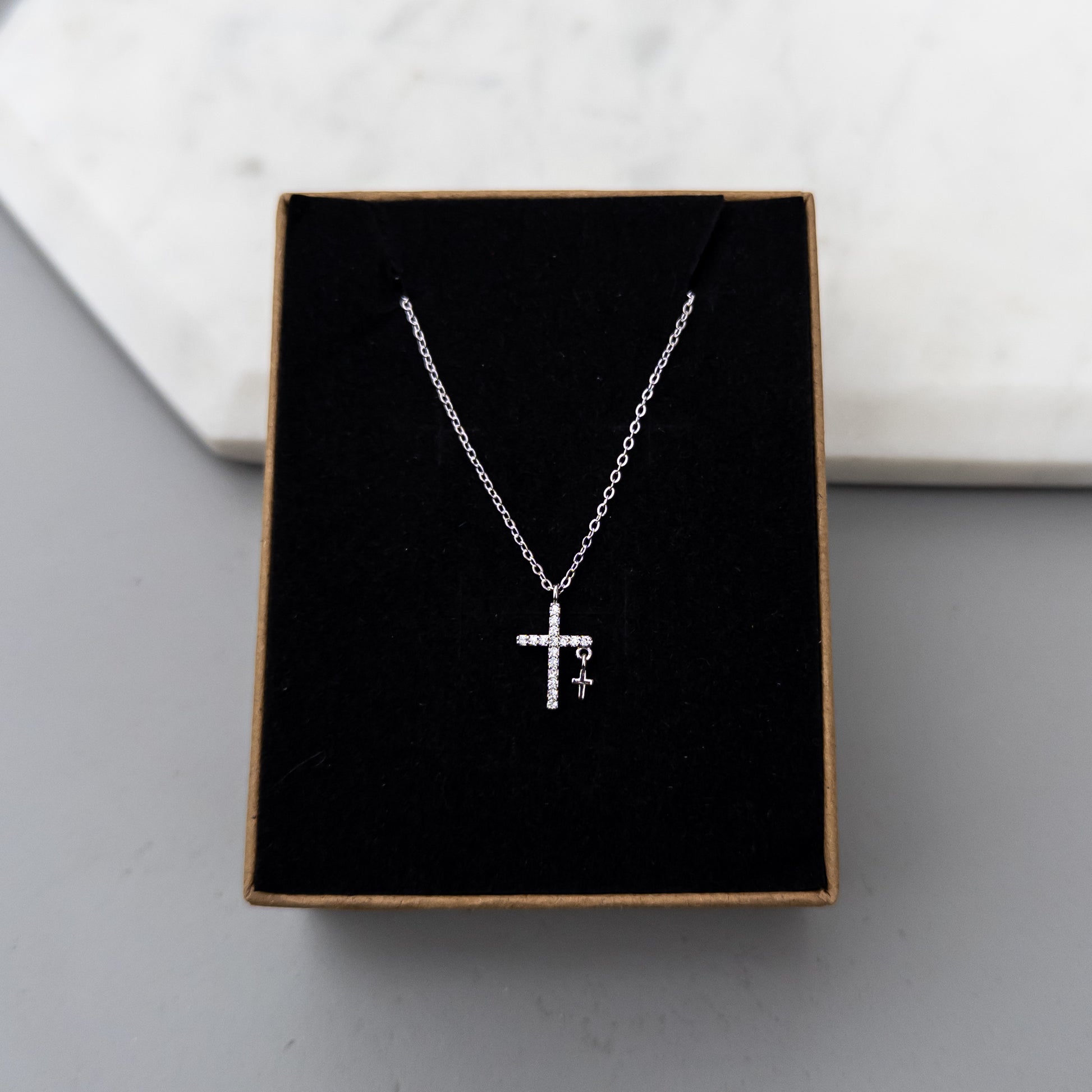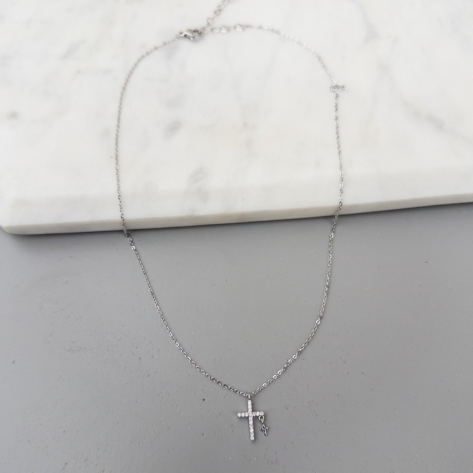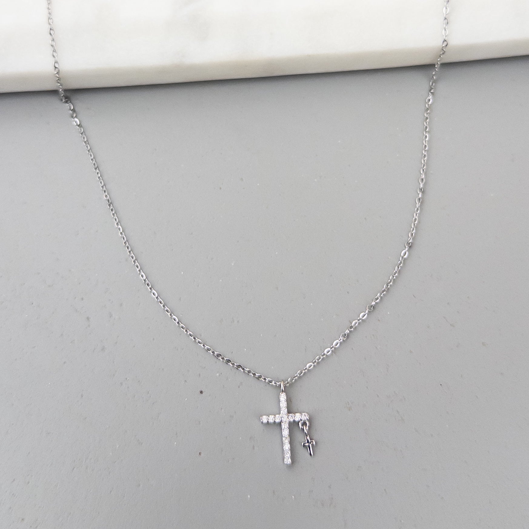 - Colier fabricat din oțel inoxidabil, cu cristale de zirconiu aplicate.