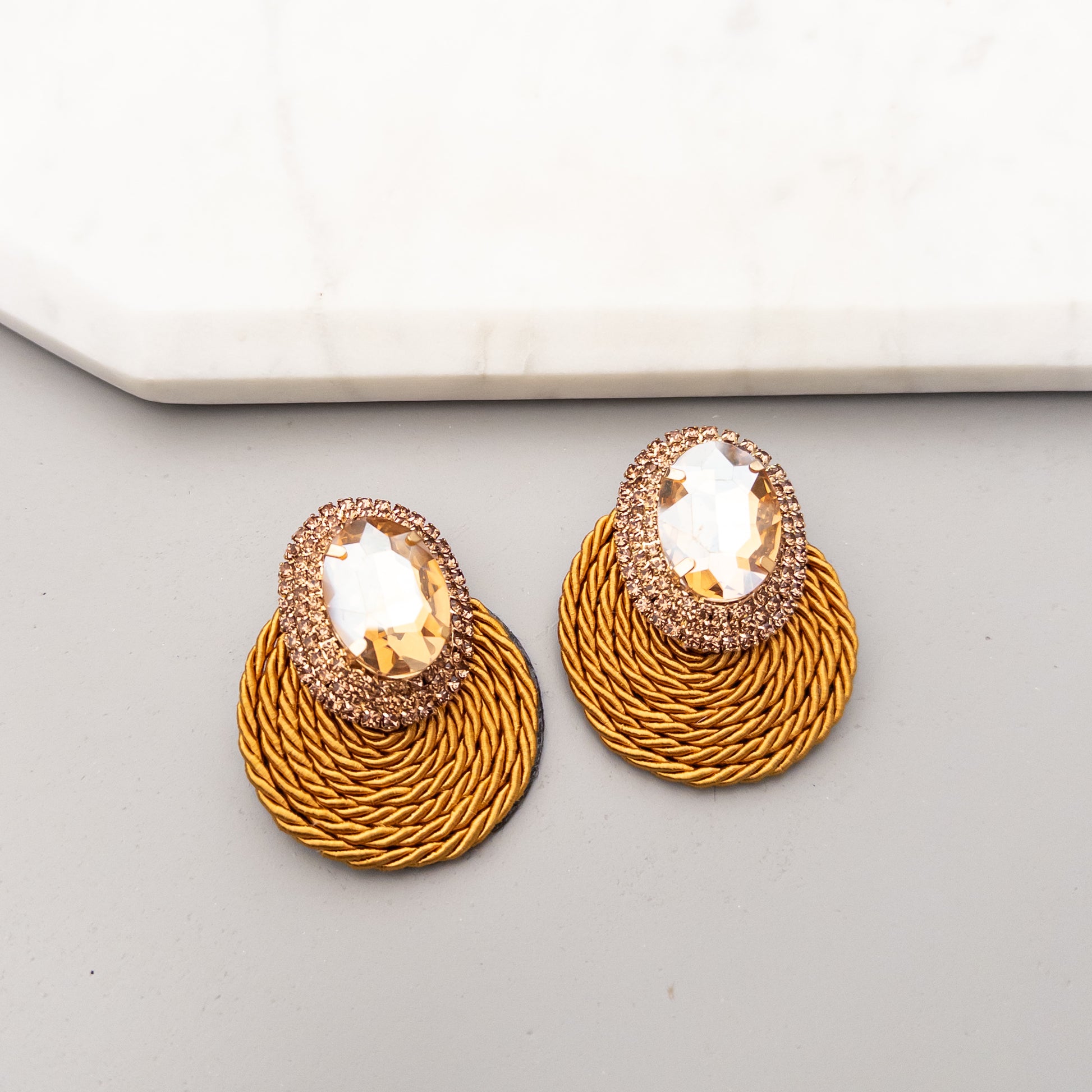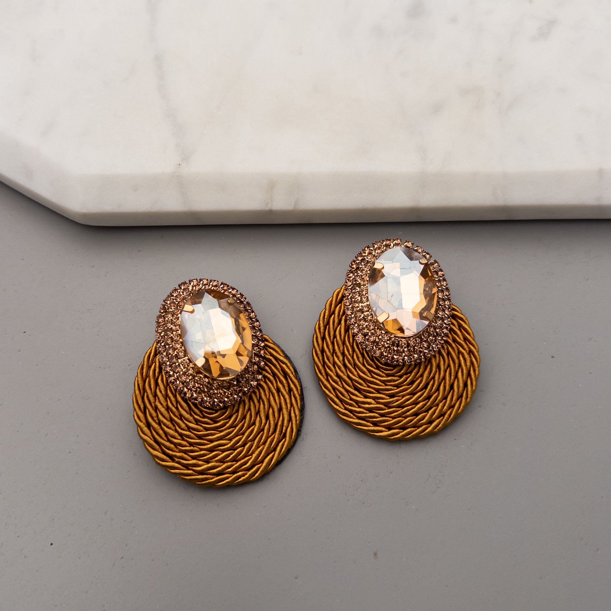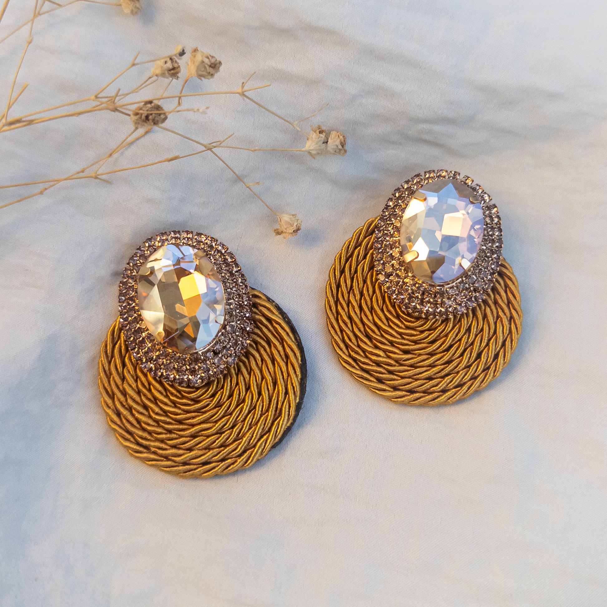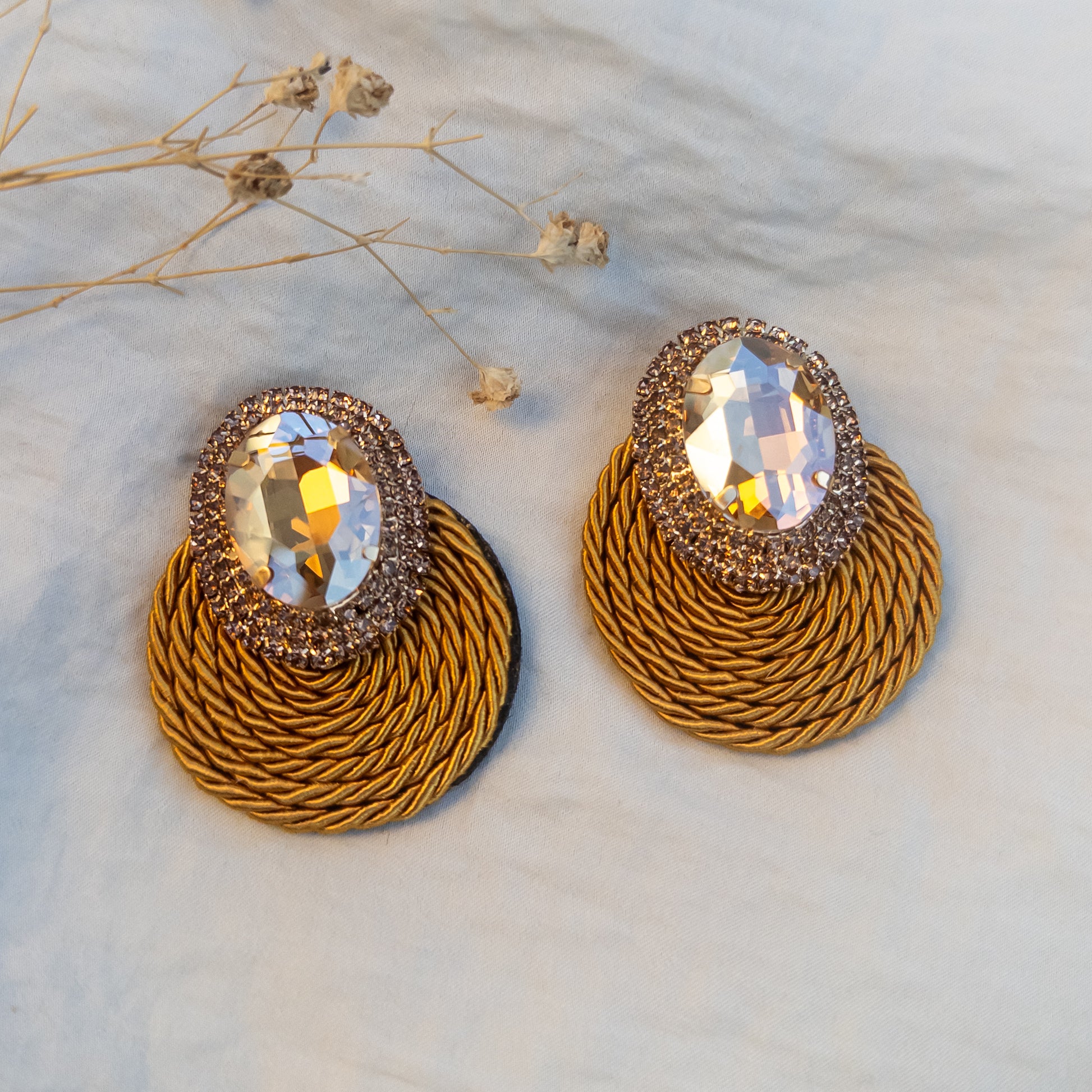 - Cercei fabricati din metal, cu material textil și cristale de sticla aplicate.