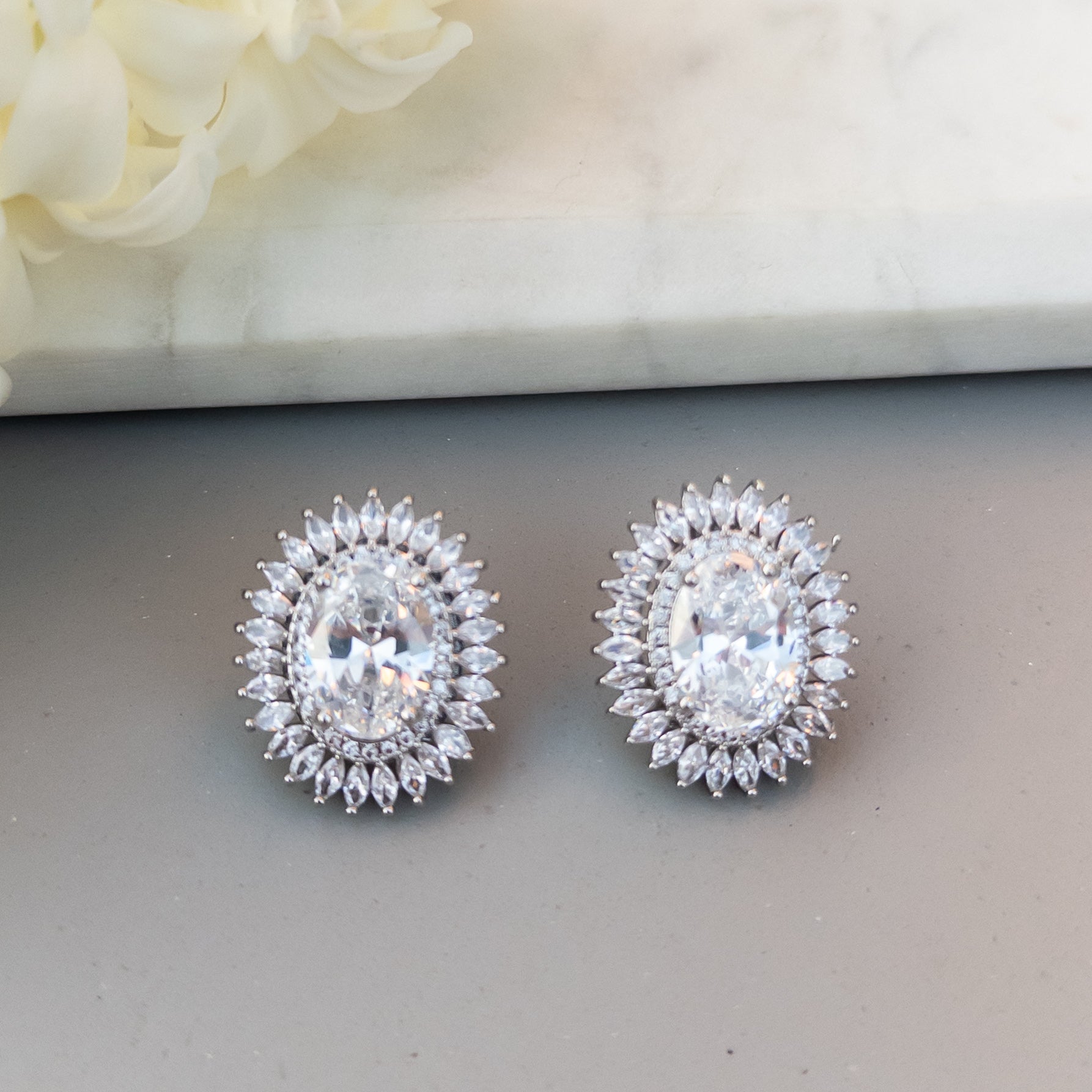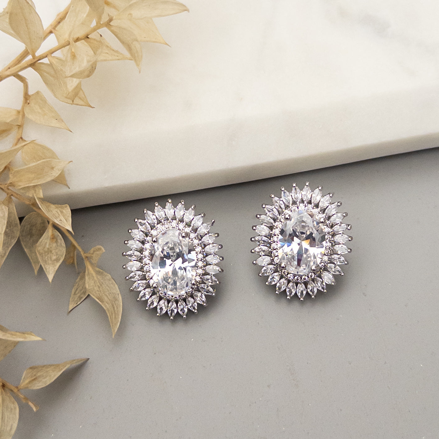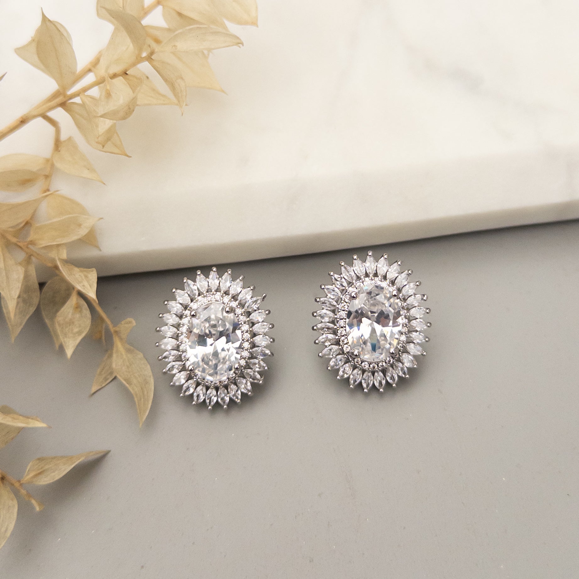 - Cercei fabricati din oțel inoxidabil, placati cu rodiu, cu cristale de zirconiu aplicate.