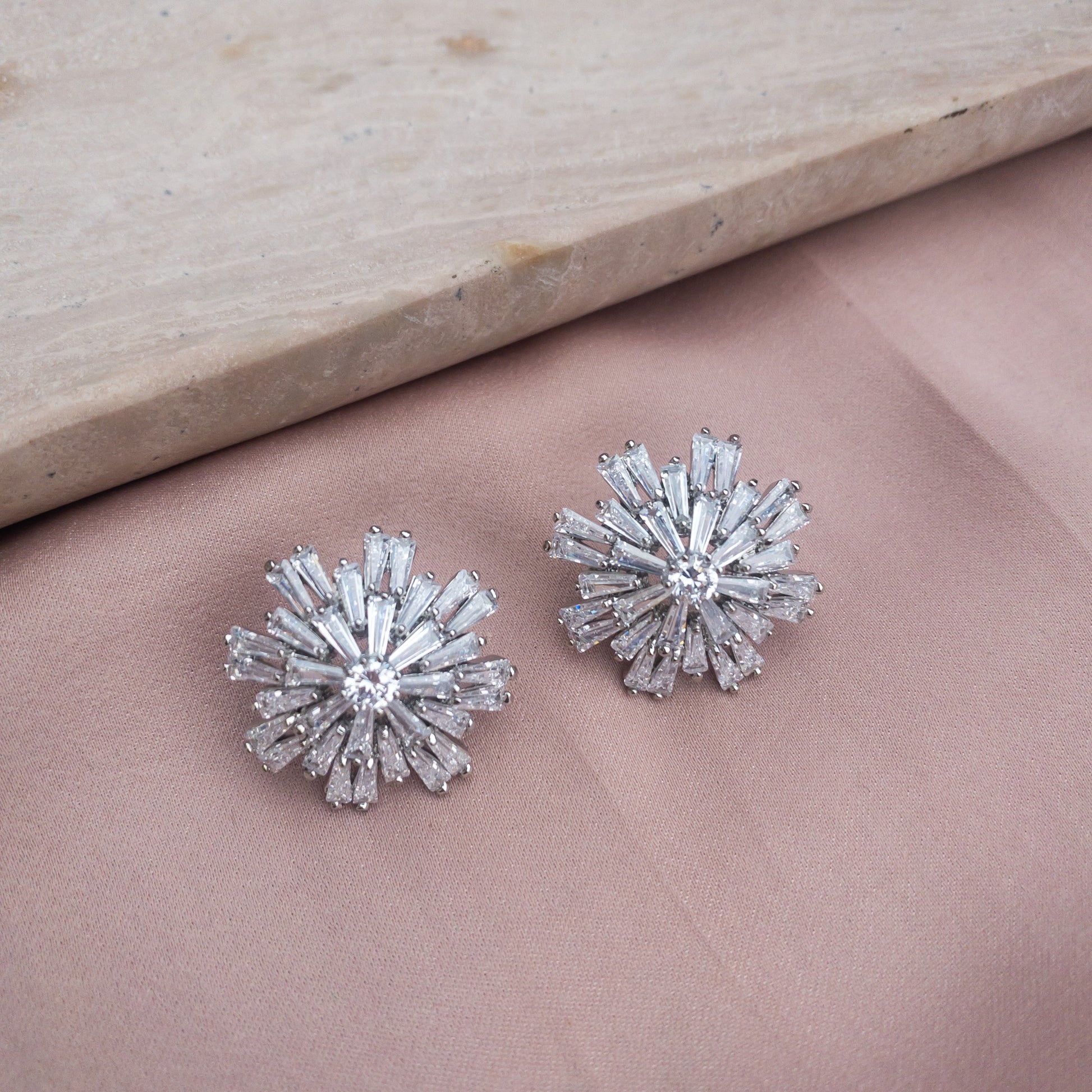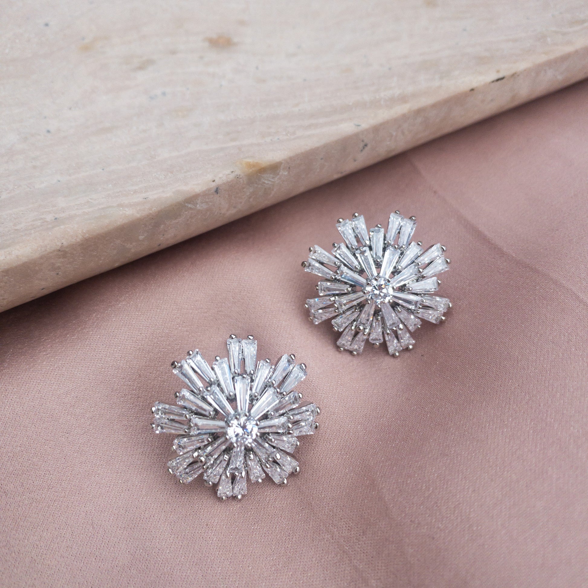 - Cercei fabricati din metal, placati cu rodiu, cu cristale de zirconiu aplicate.