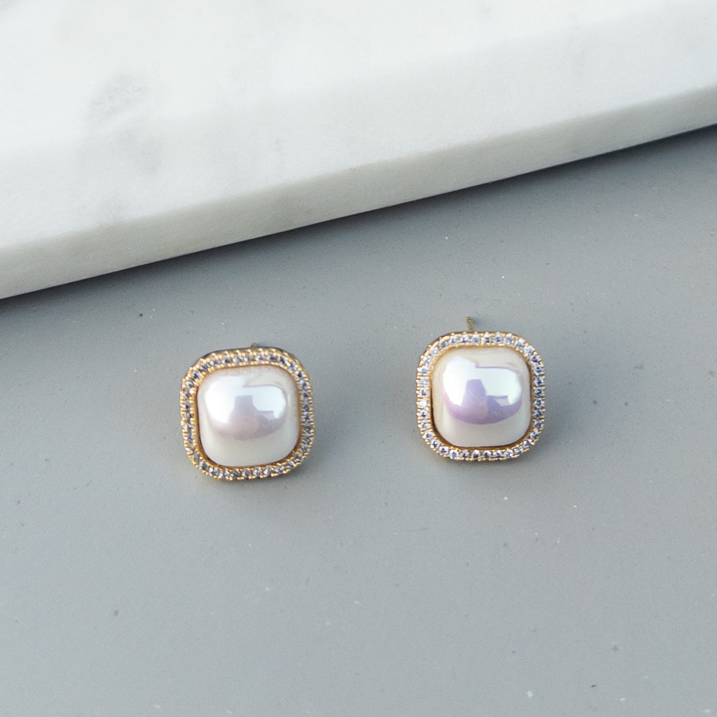 - Cercei fabricati din oțel inoxidabil, cu cristale de zirconiu și perle.