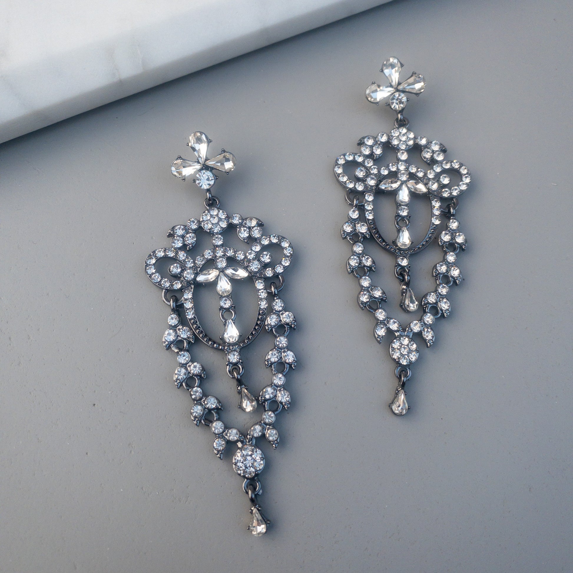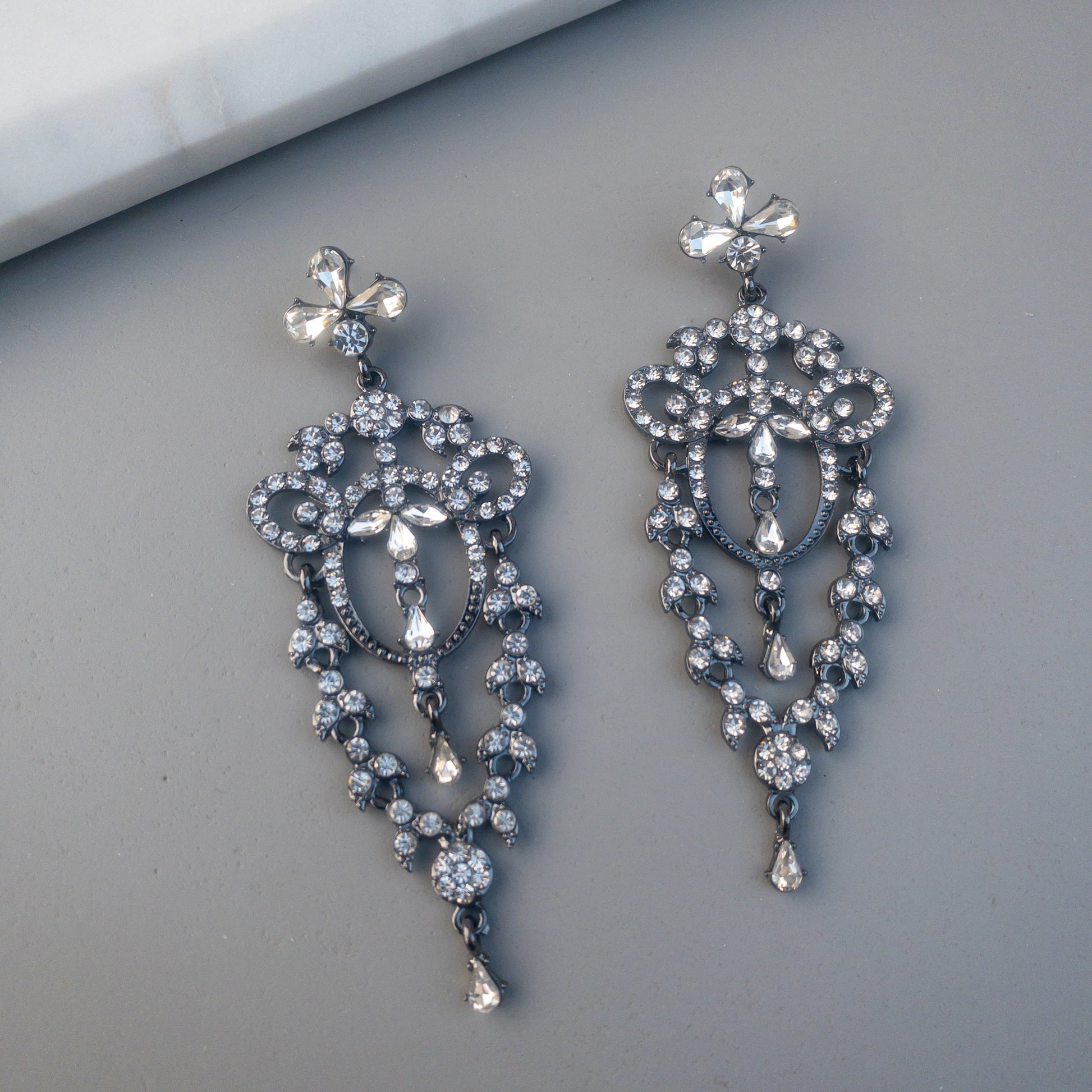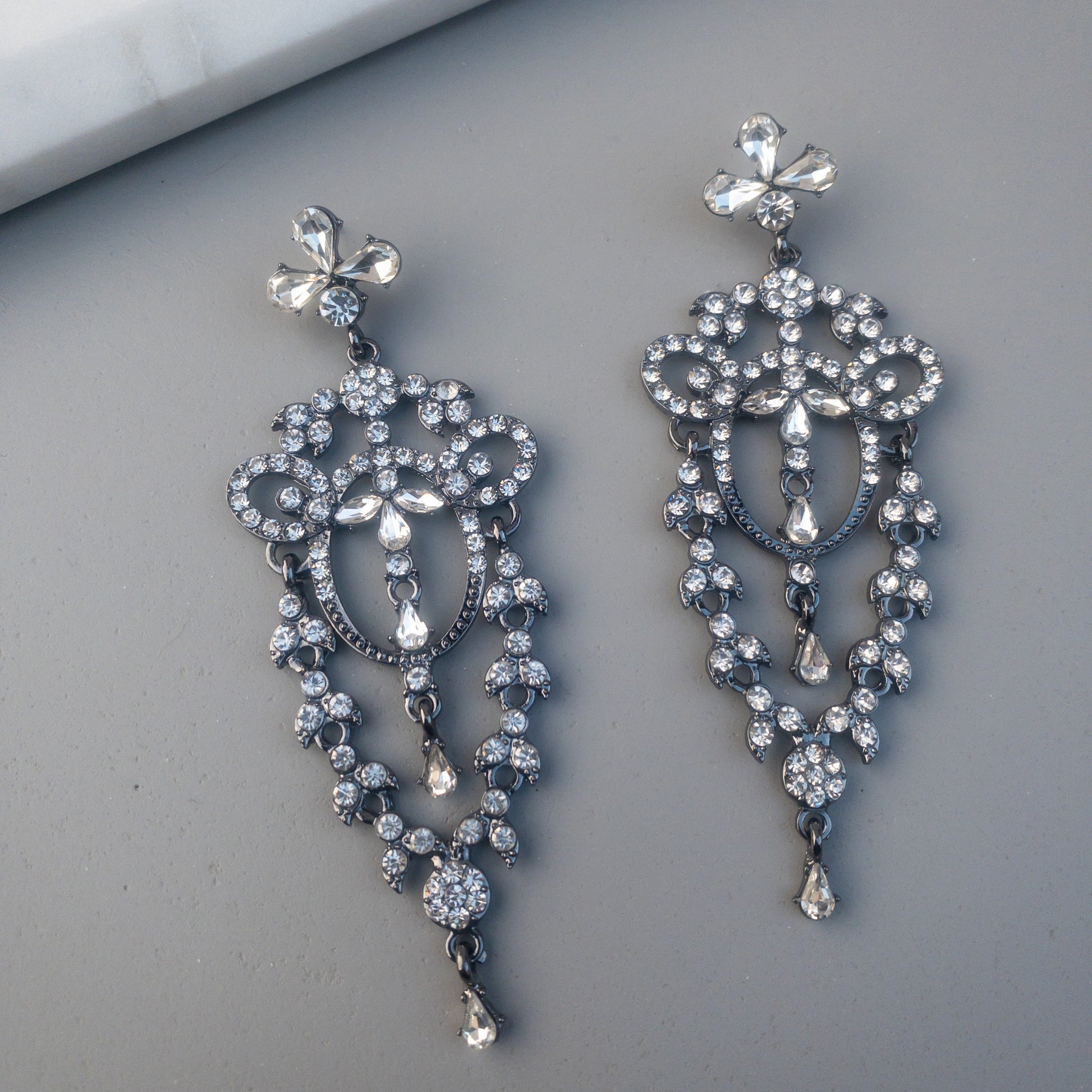 - Cercei fabricati din metal, cu cristale de sticla aplicate.