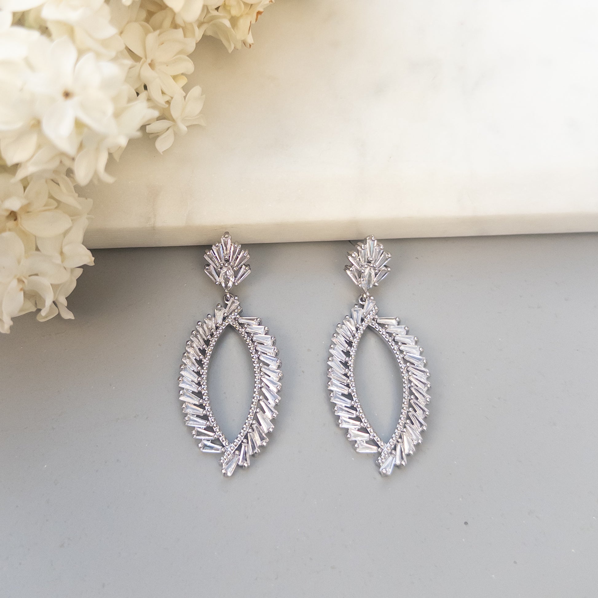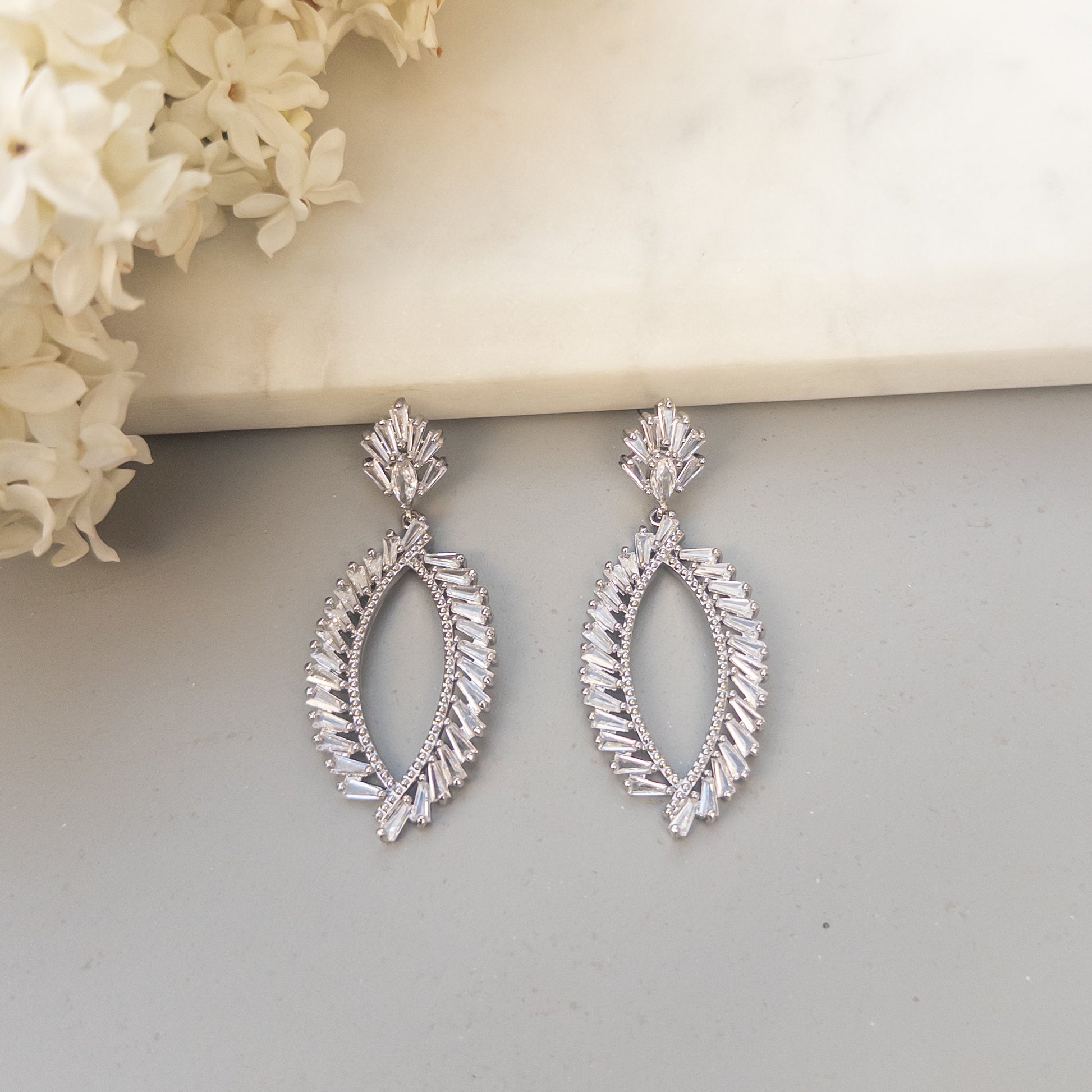 - Cercei fabricati din oțel inoxidabil, placati cu rodiu, cu cristale de zirconiu aplicate.