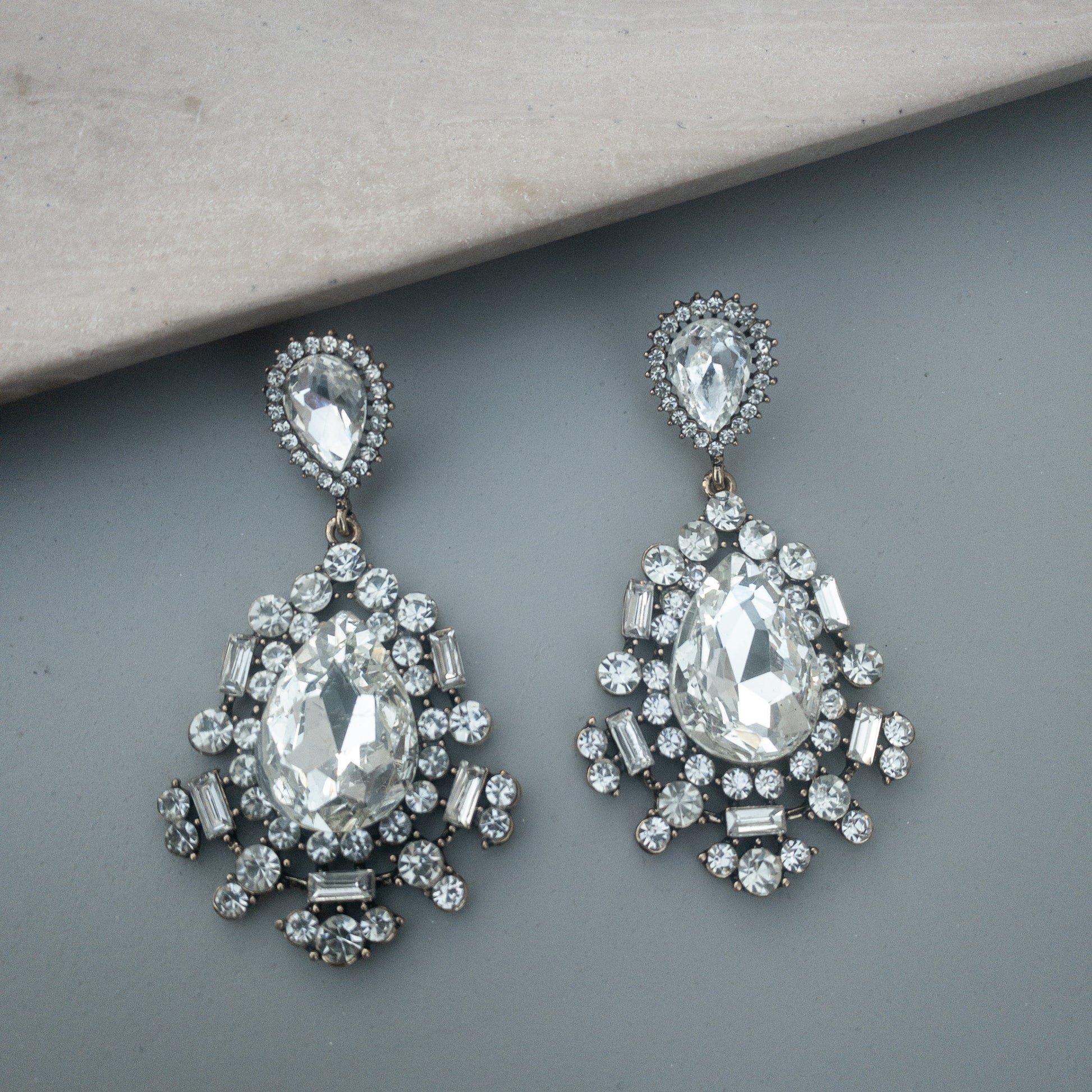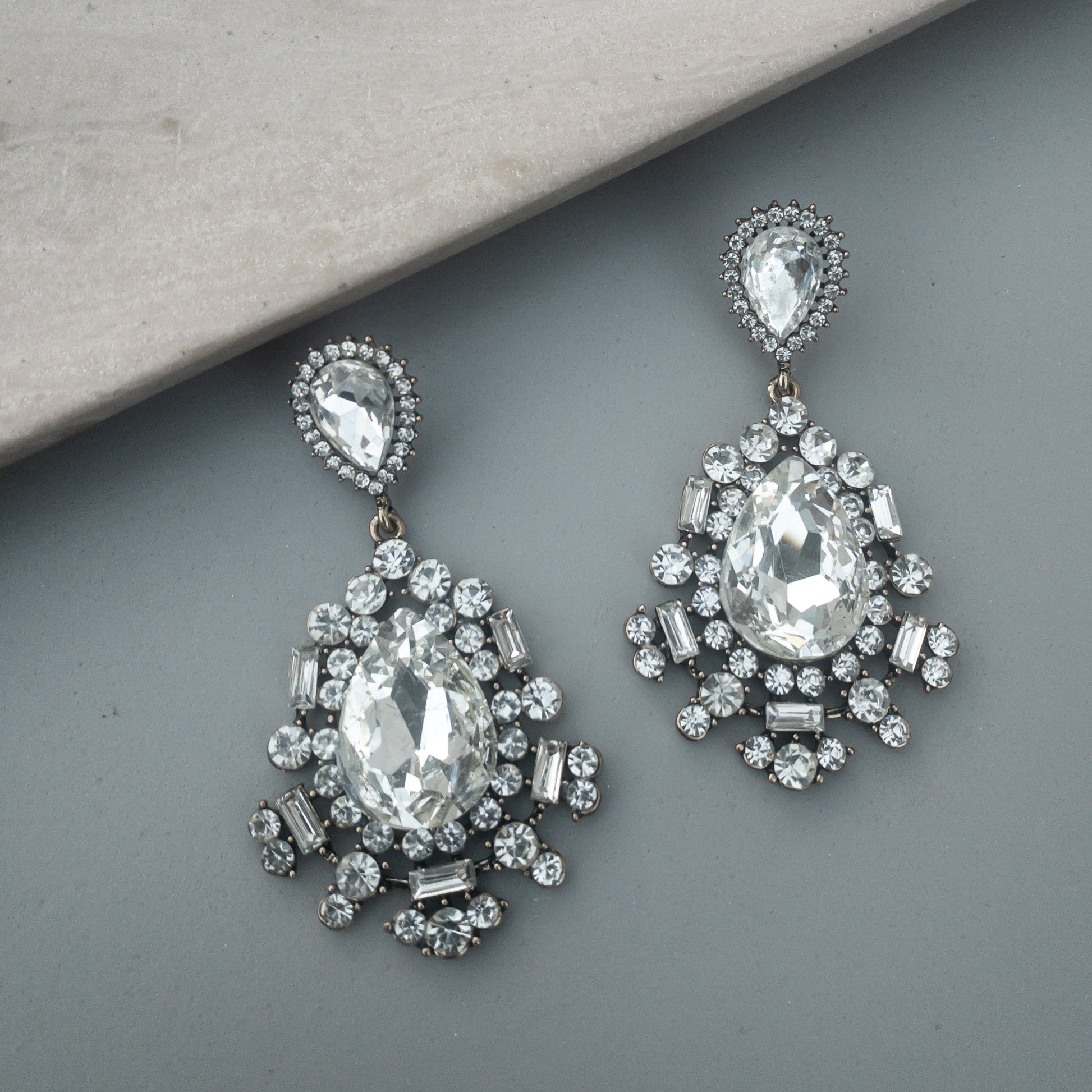 - Cercei fabricati din metal, cu cristale de sticla aplicate.