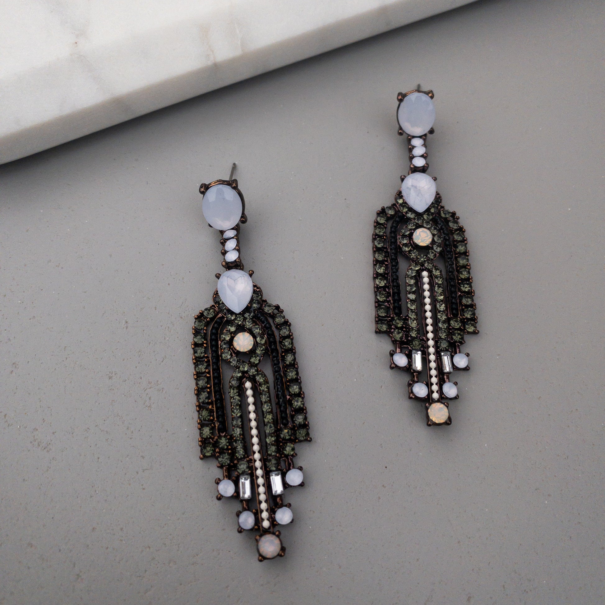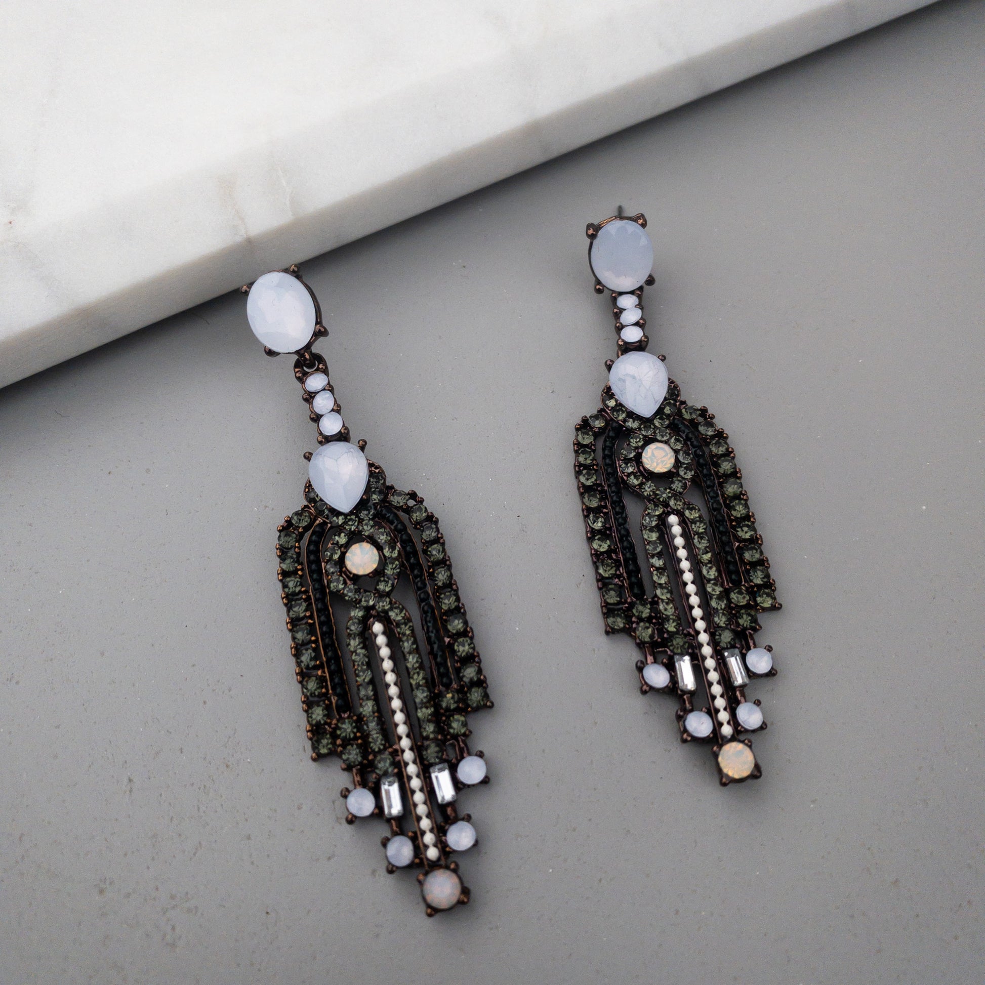 - Cercei fabricati din metal, cu cristale de sticla aplicate.