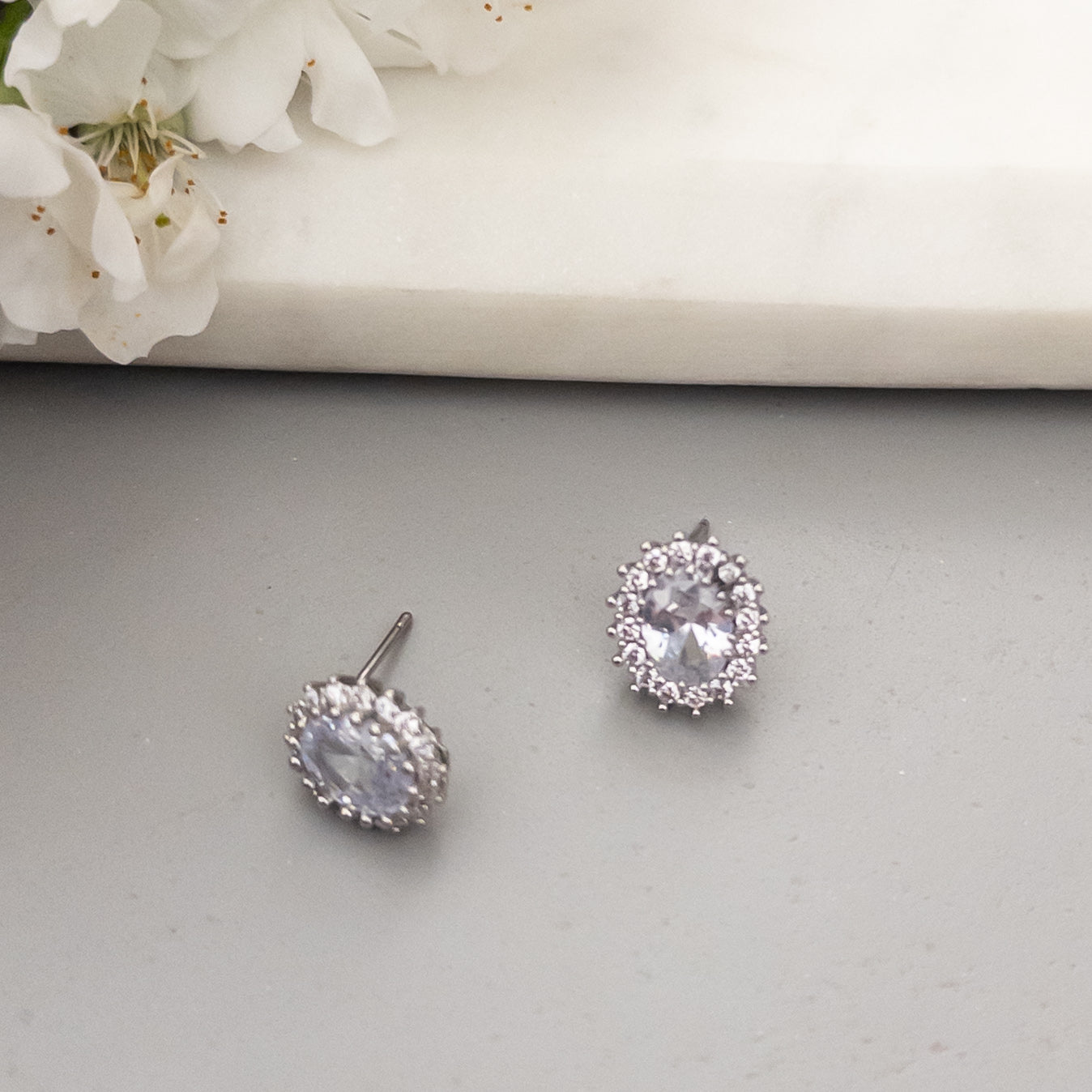- Cercei fabricati din otel inoxidabil, cu cristale de zirconiu aplicate.