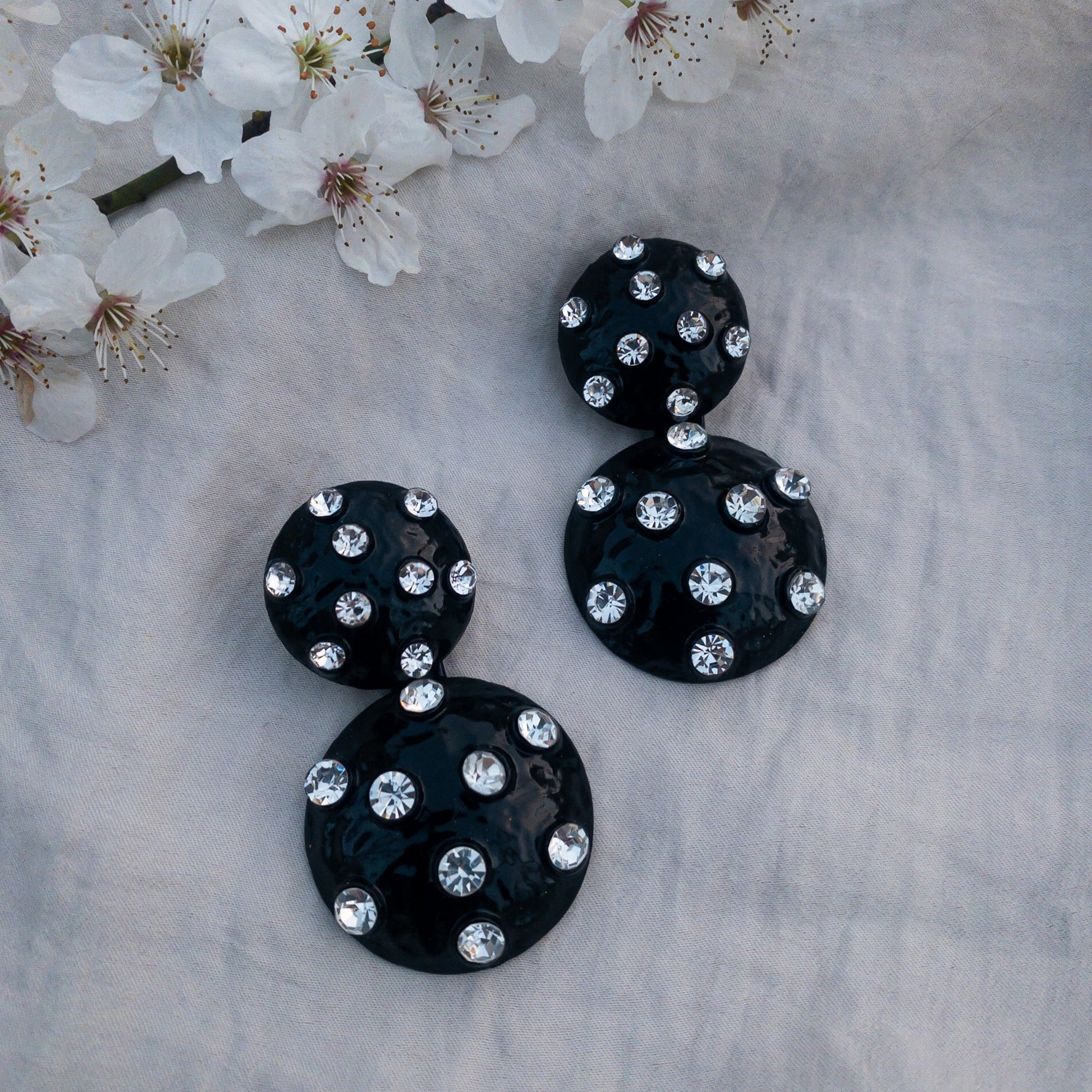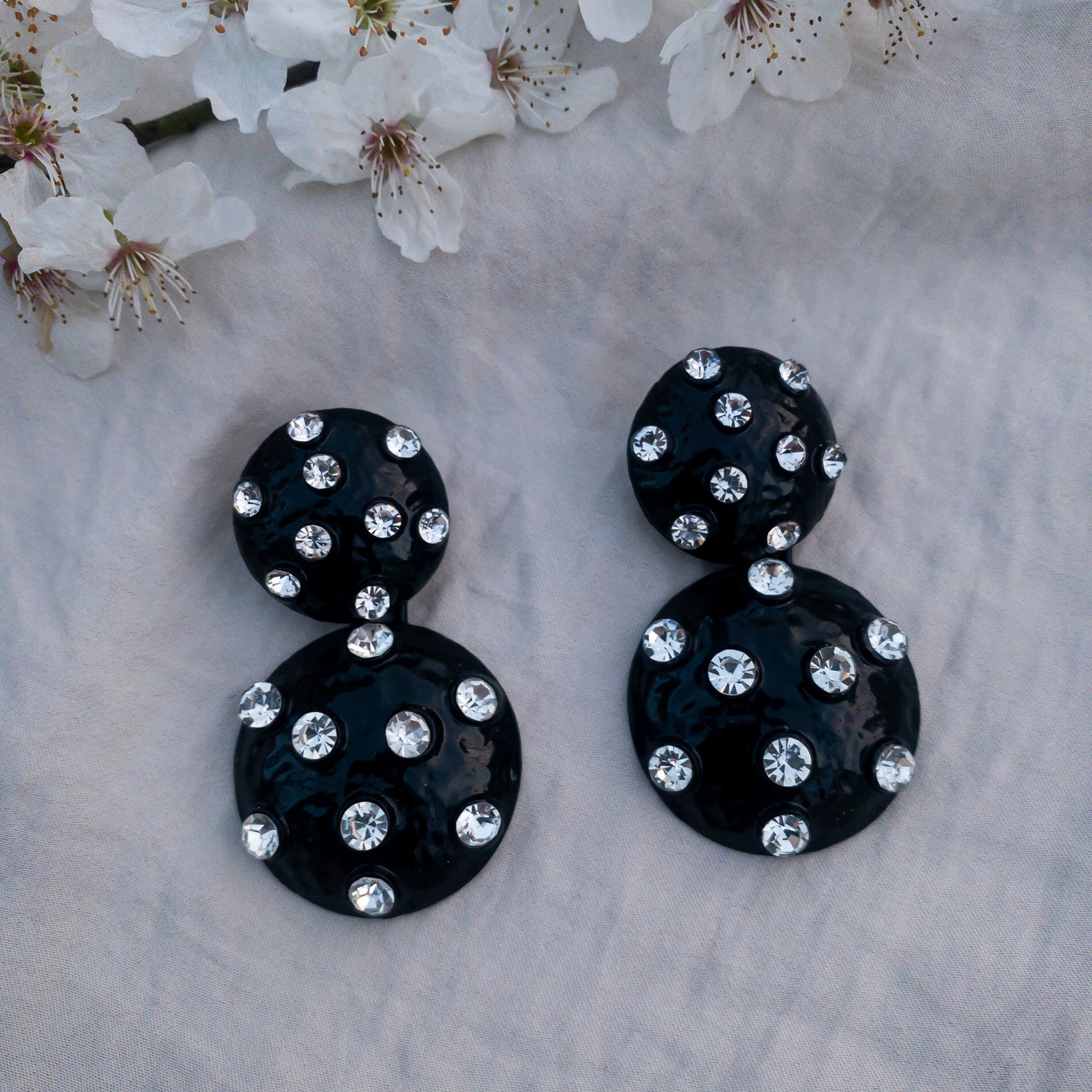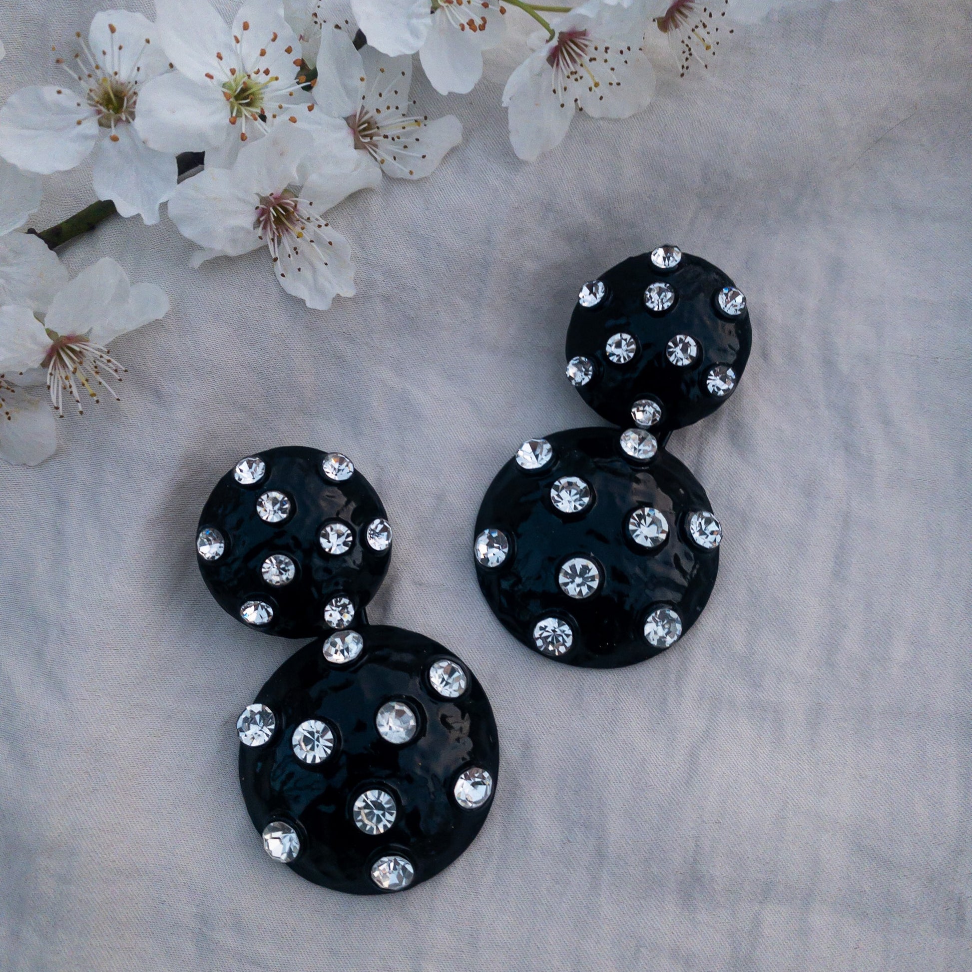 - Cercei fabricati din metal, cu cristale de sticla aplicate.