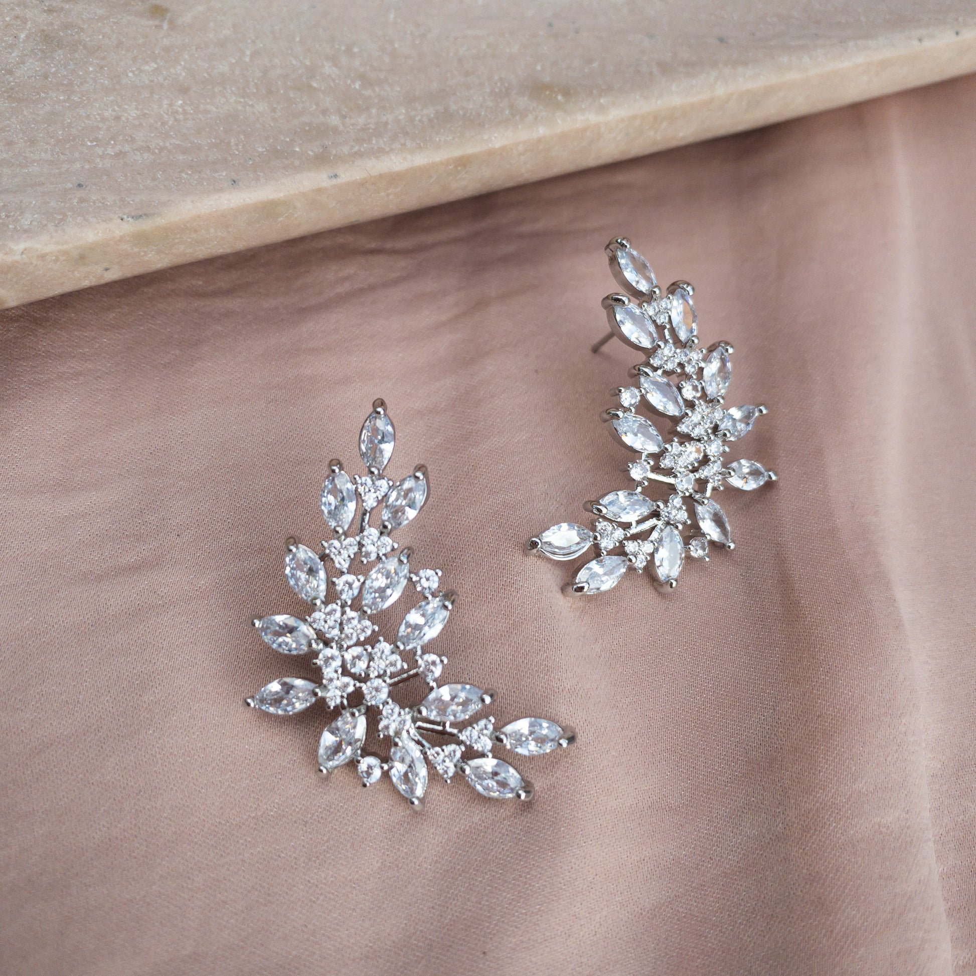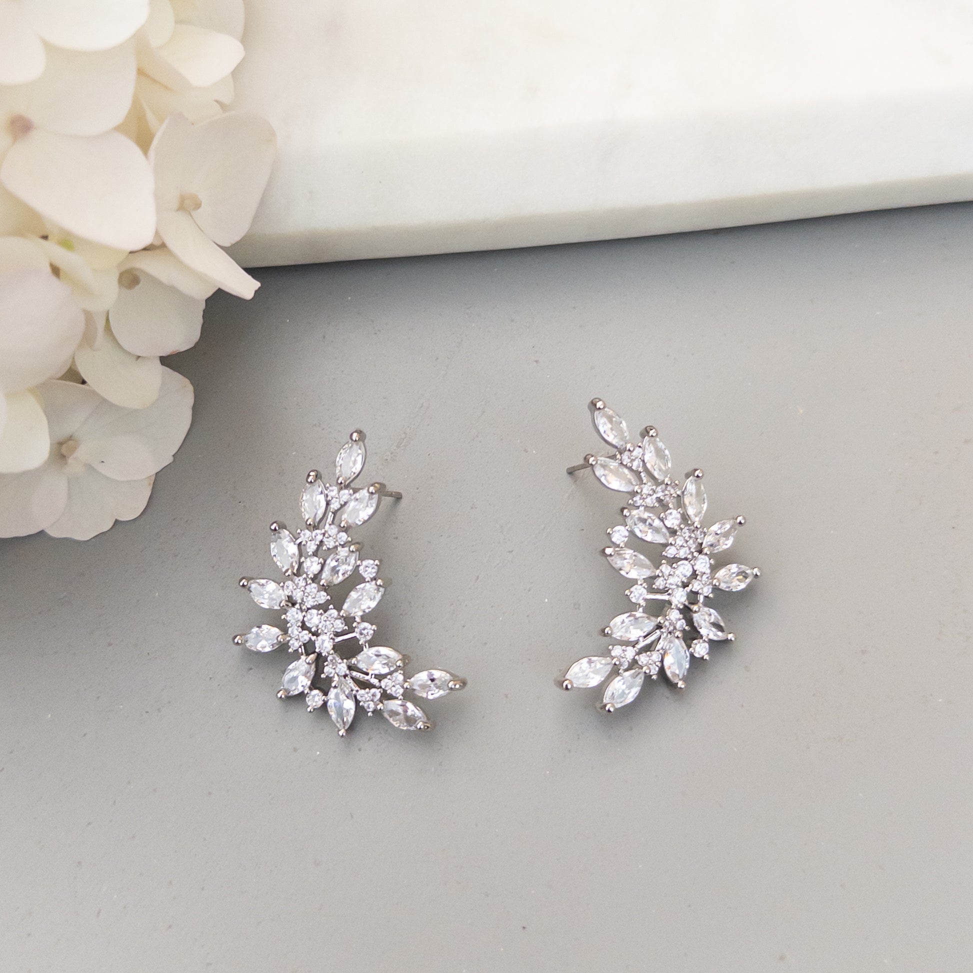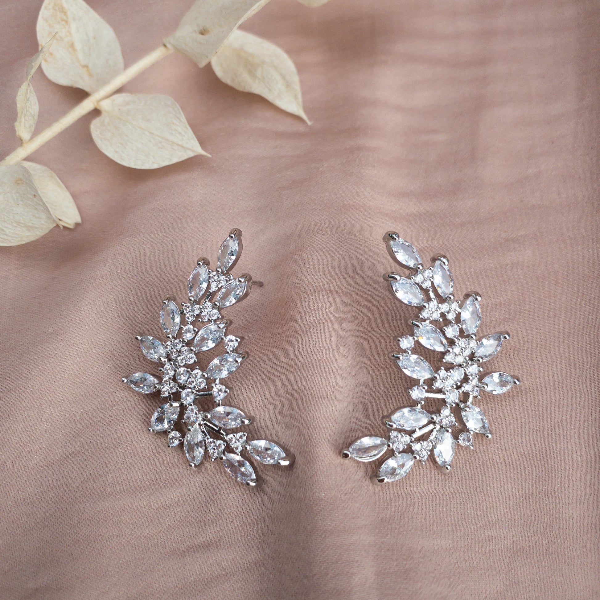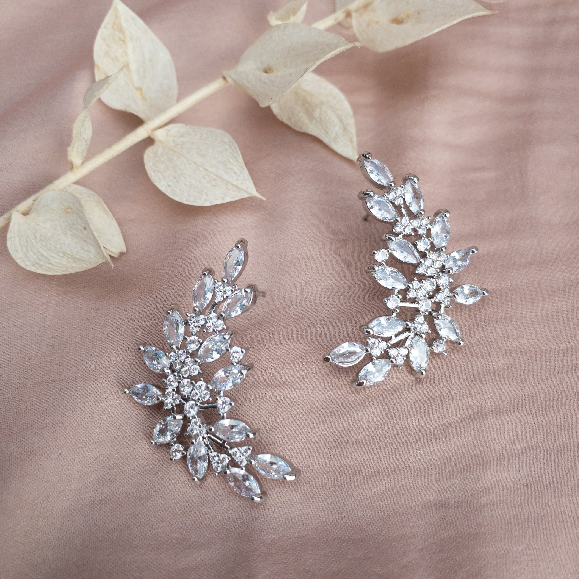 - Cercei fabricati din cupru, placati cu rodiu, cu cristale de zirconiu aplicate.