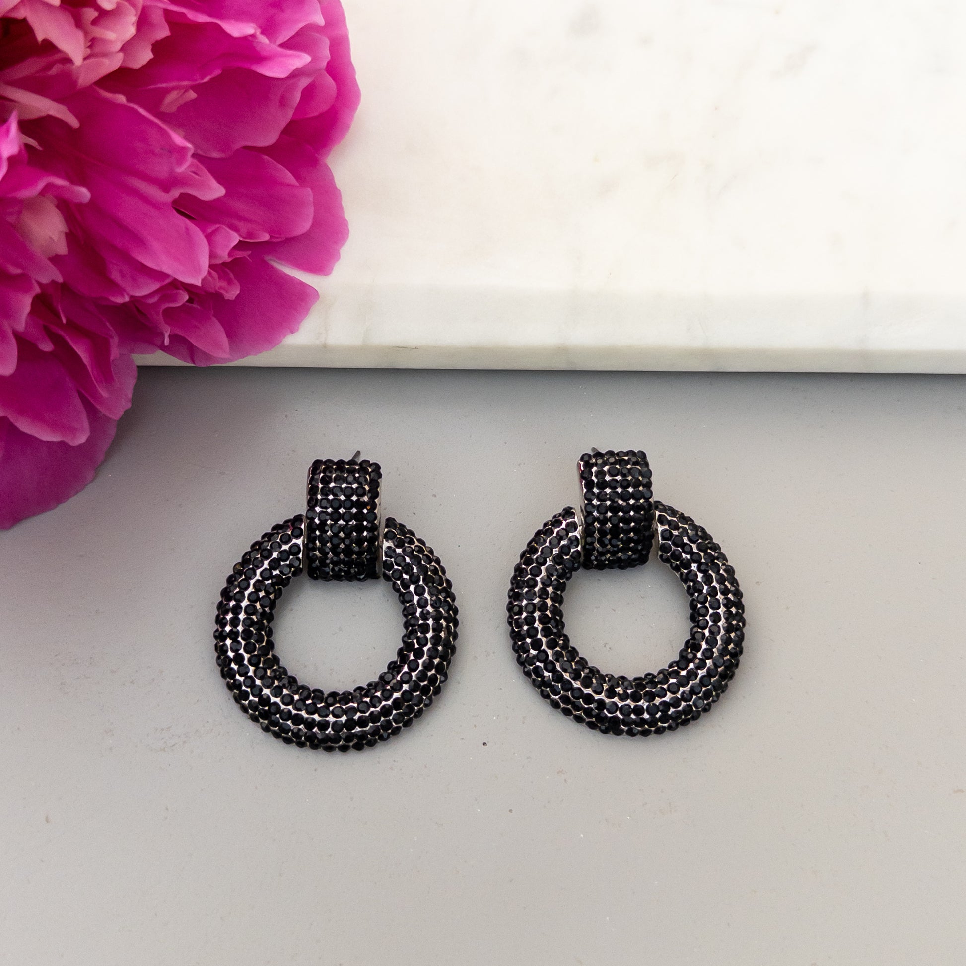 - Cercei fabricati din metal, cu cristale de sticla aplicate.