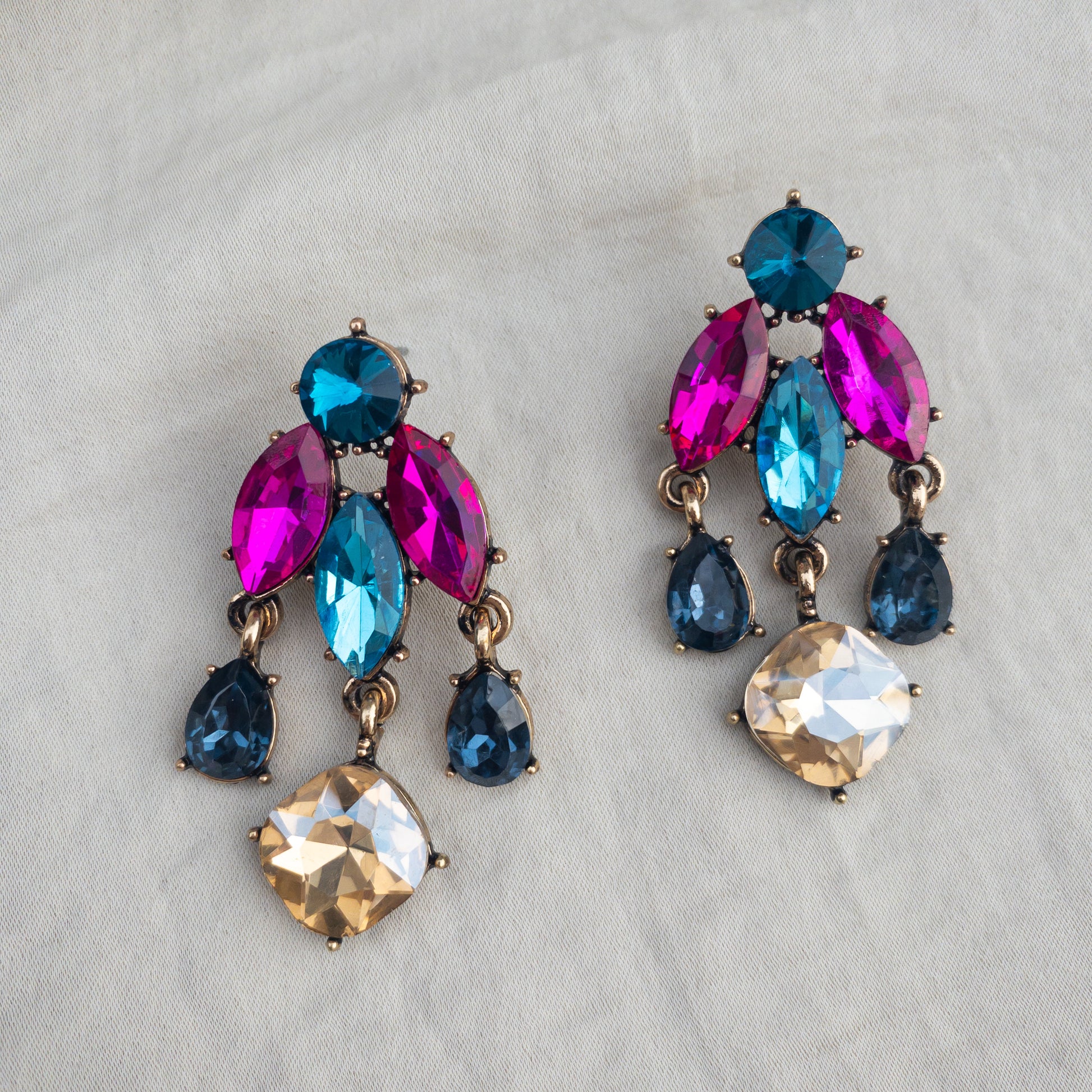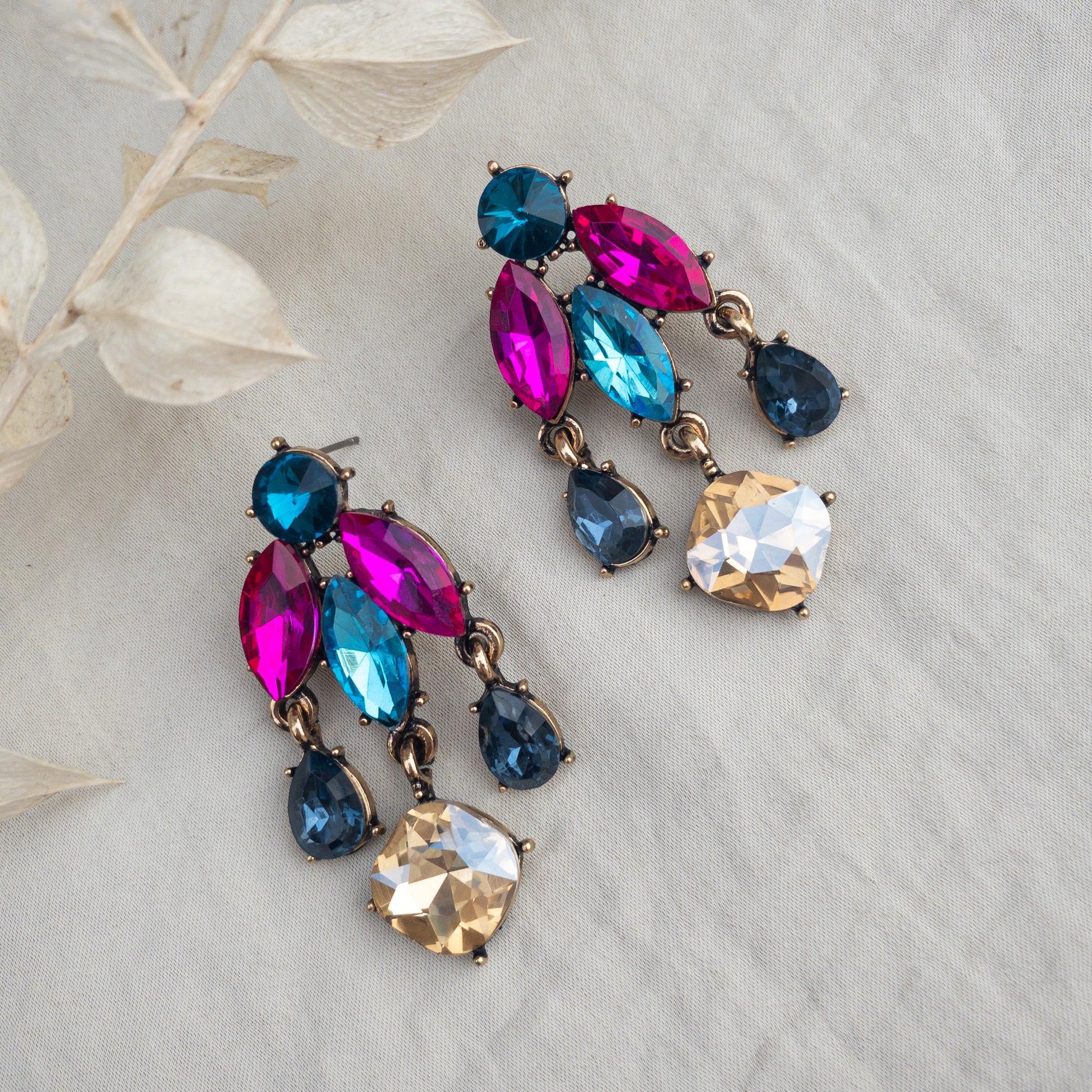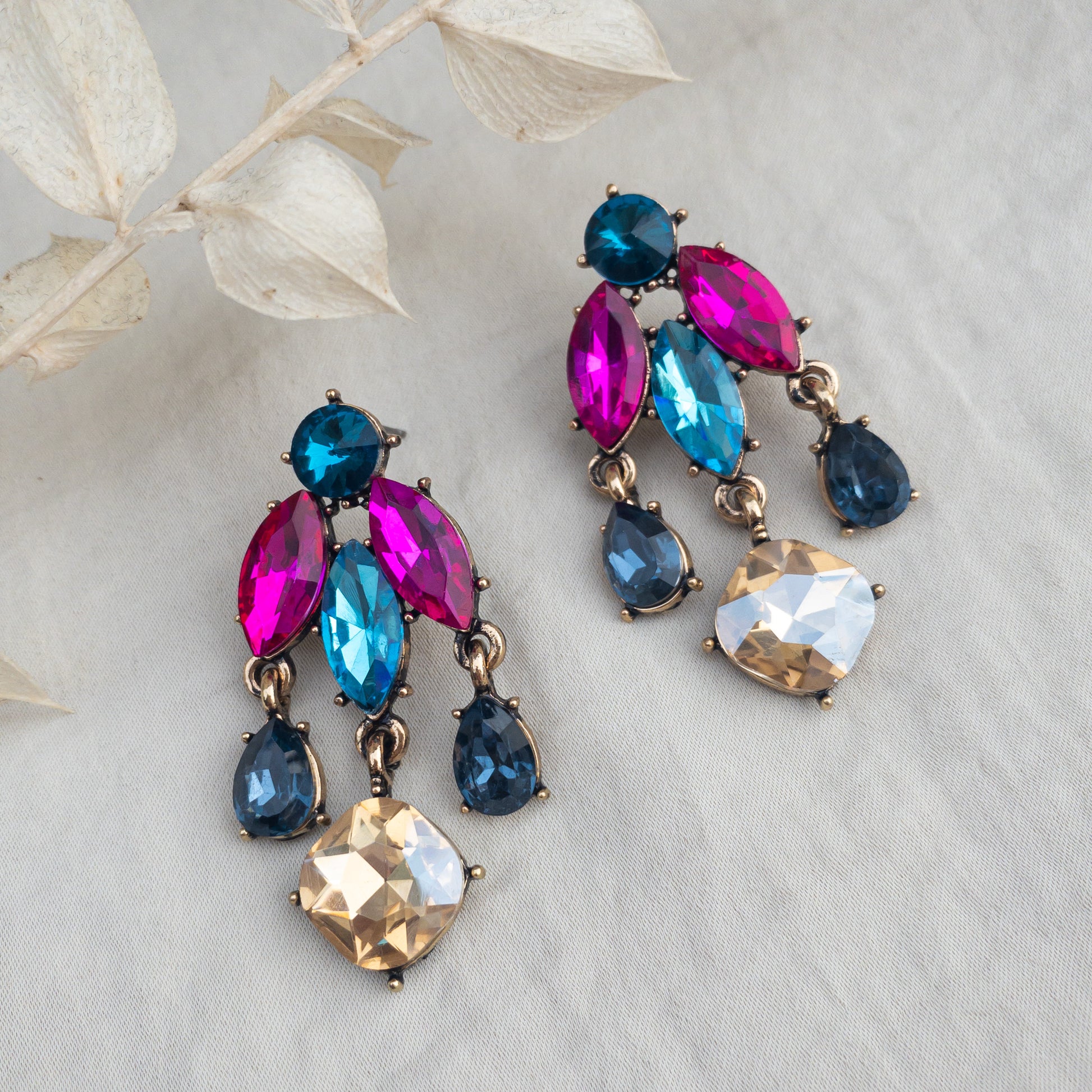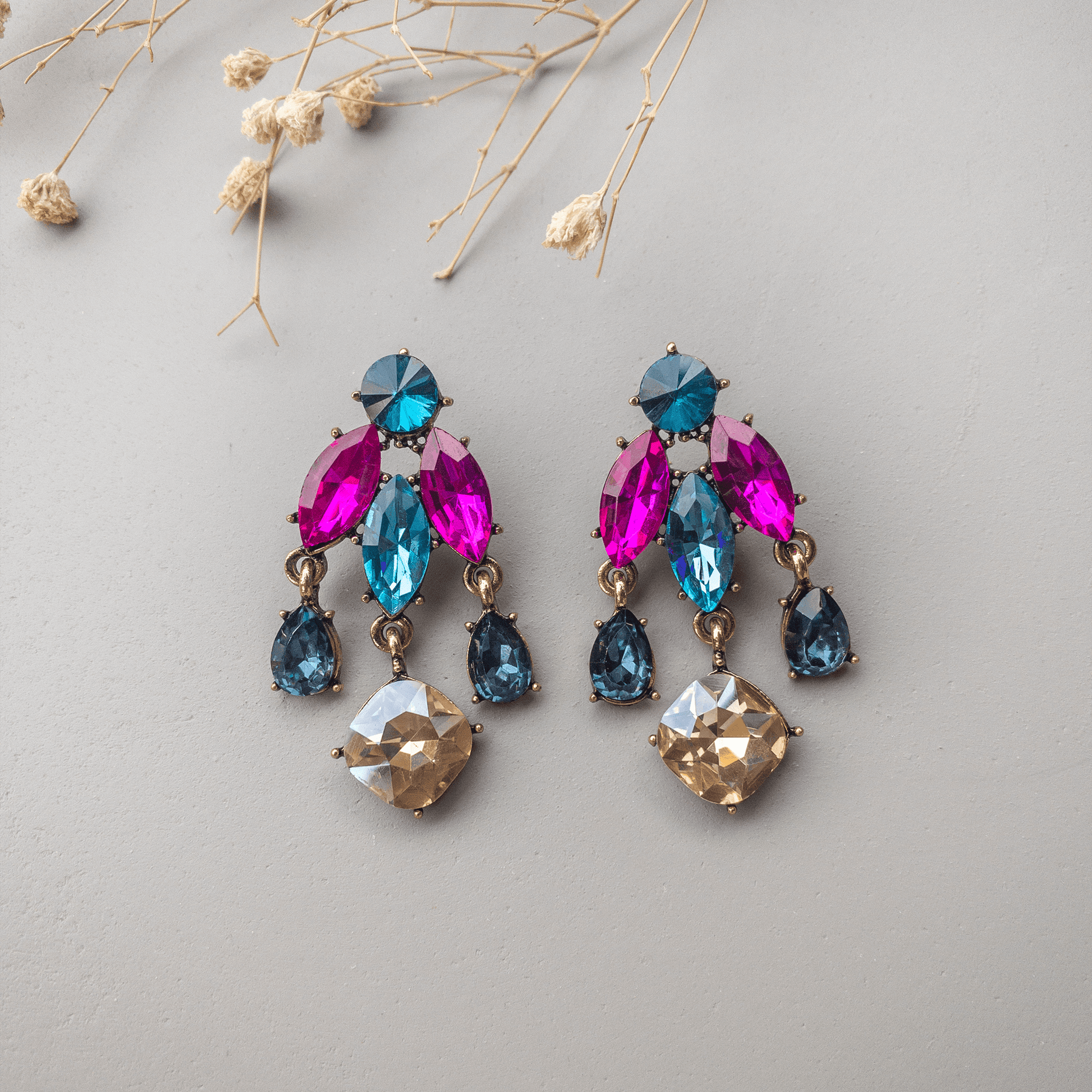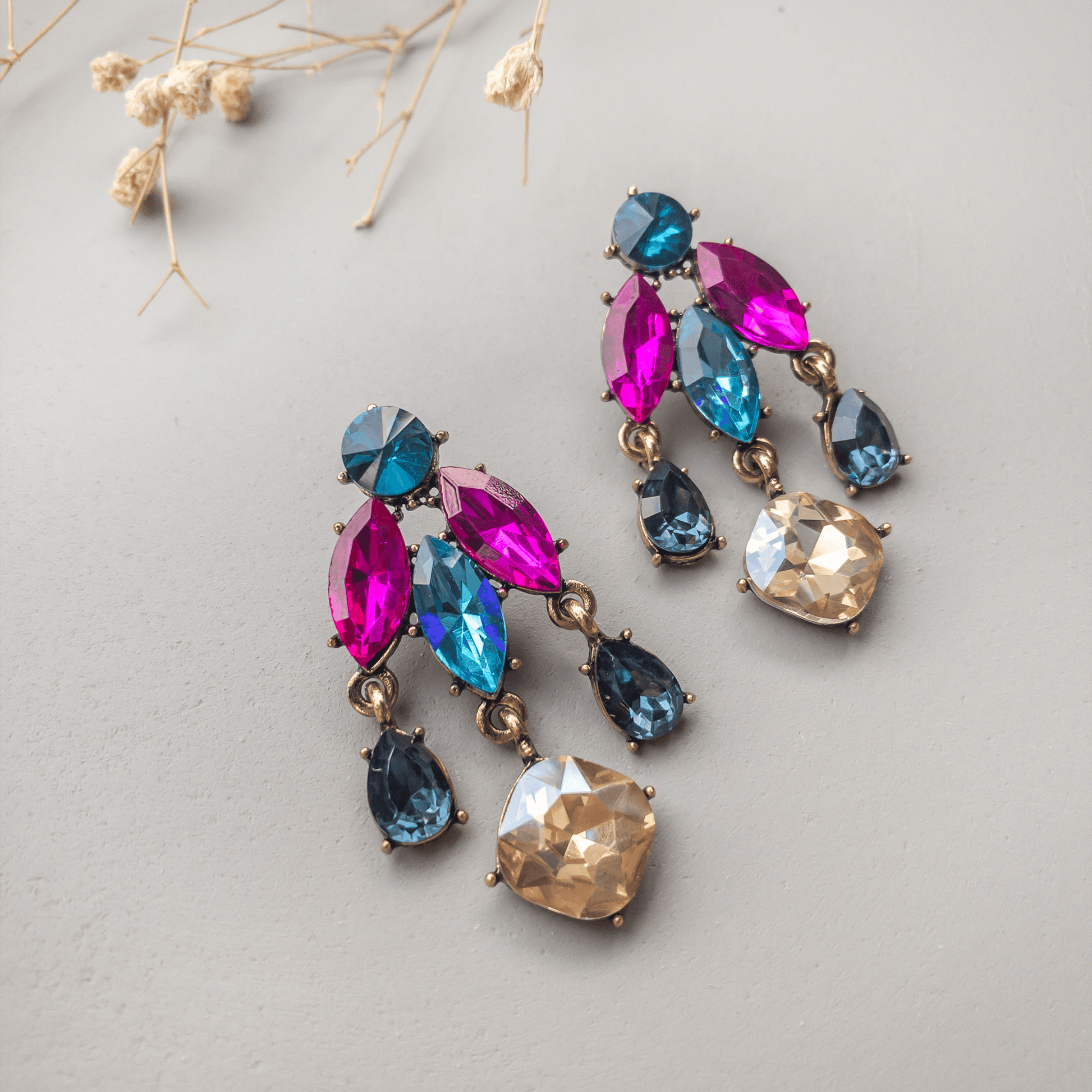 - Cercei fabricati din metal cu cristale de sticla aplicate, aliaj zinc, fara nichel.