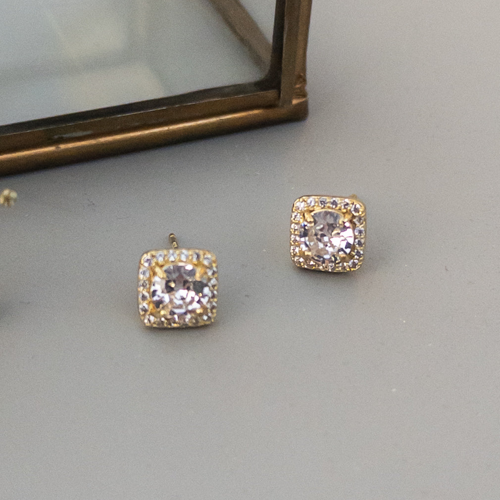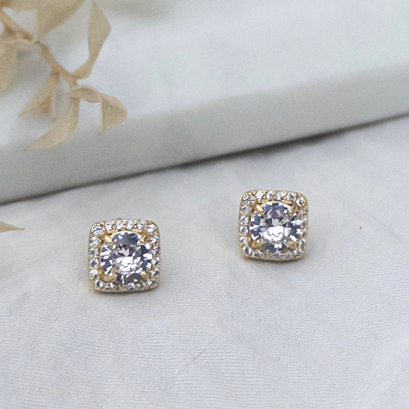 - Cercei fabricati din otel inoxidabil, cu cristale de zirconiu aplicate.