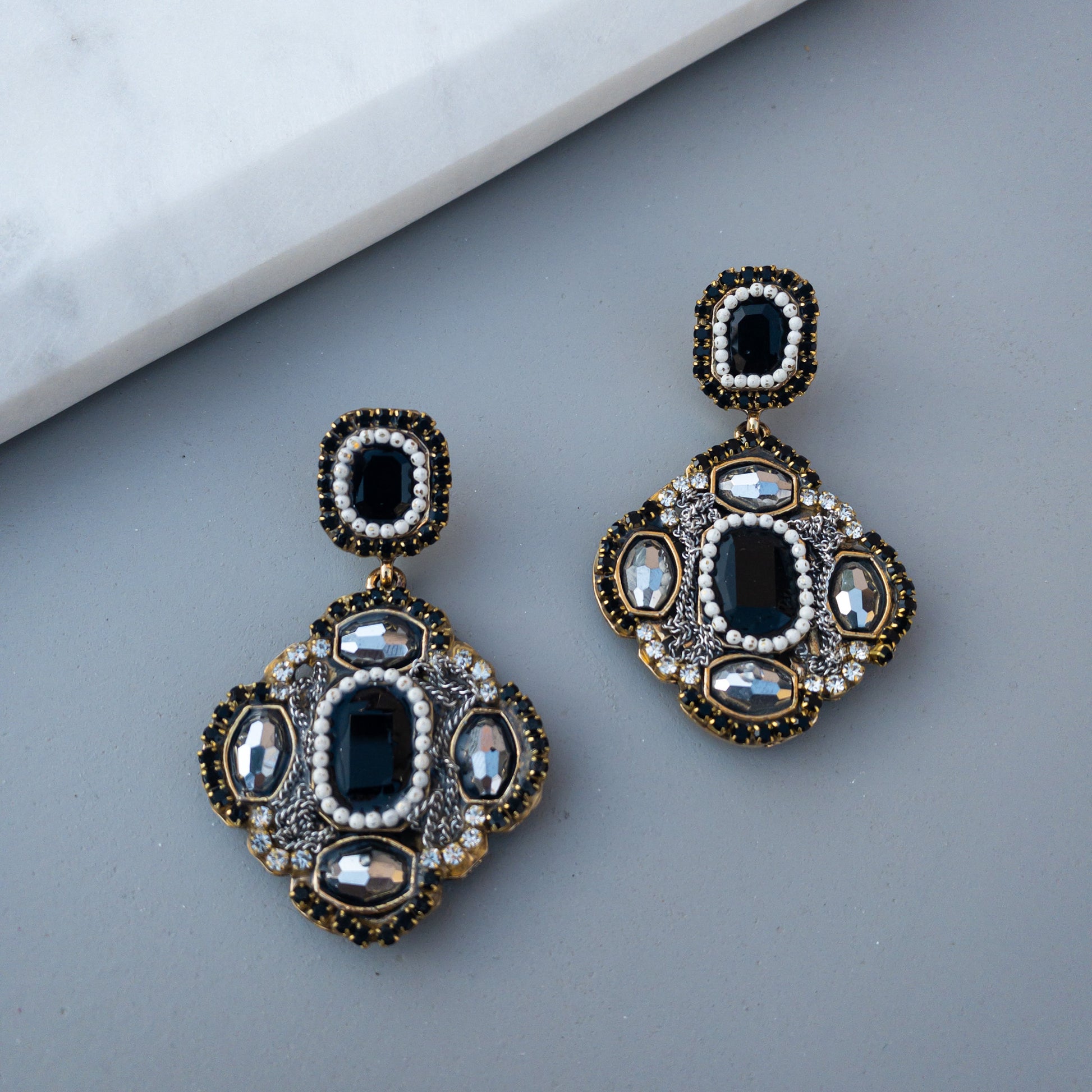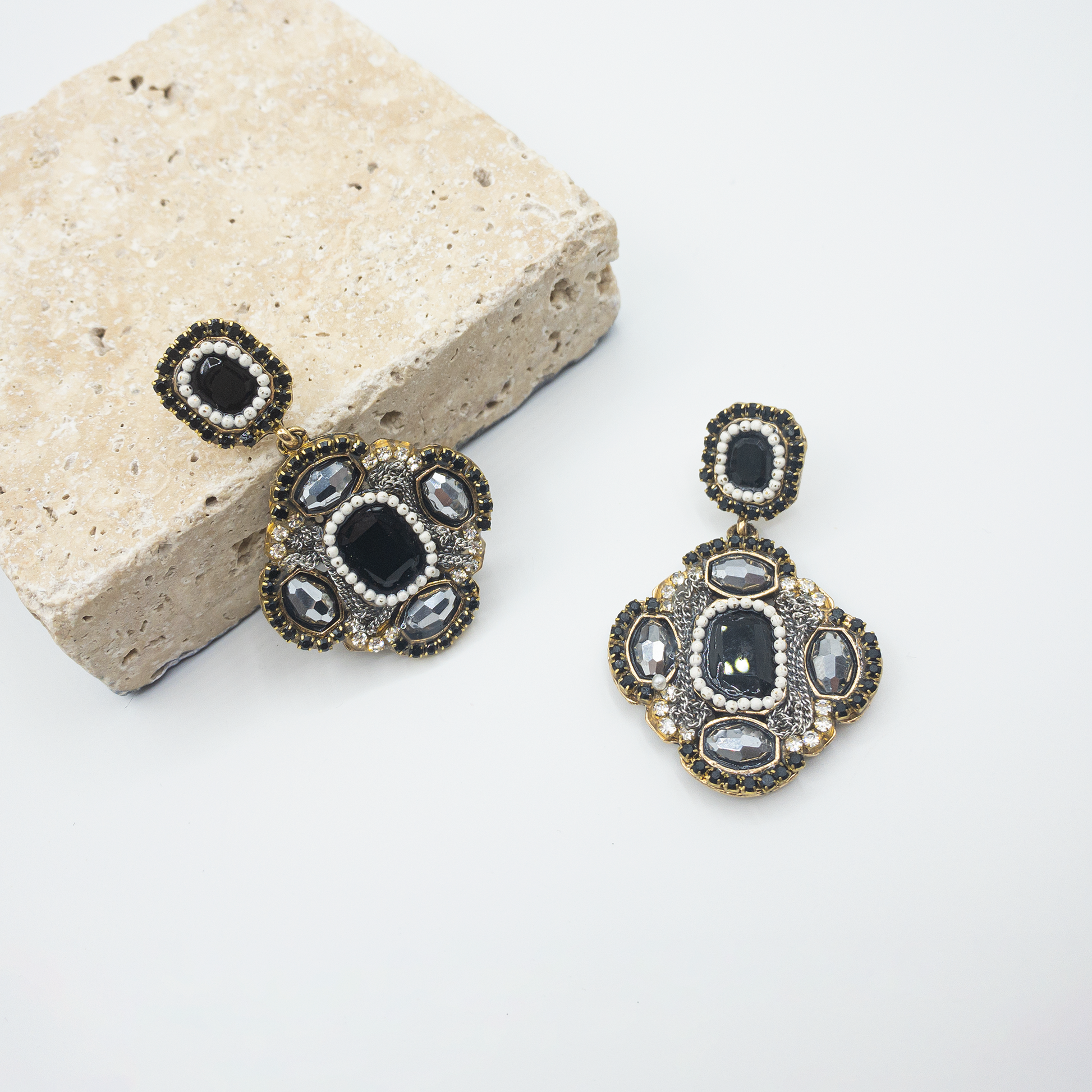 - Cercei din metal cu cristale si siraguri de lanturi aplicate, aliaj zinc
