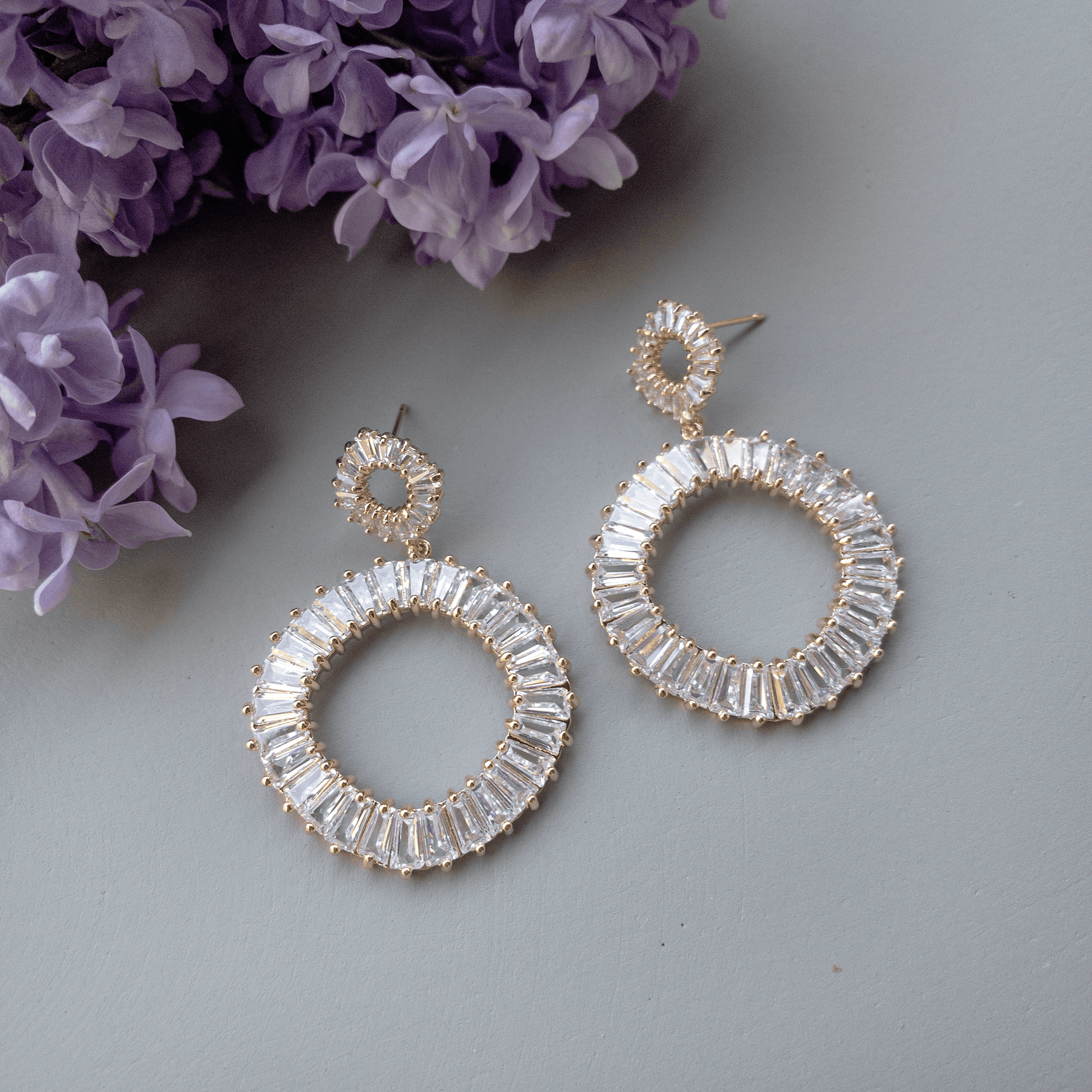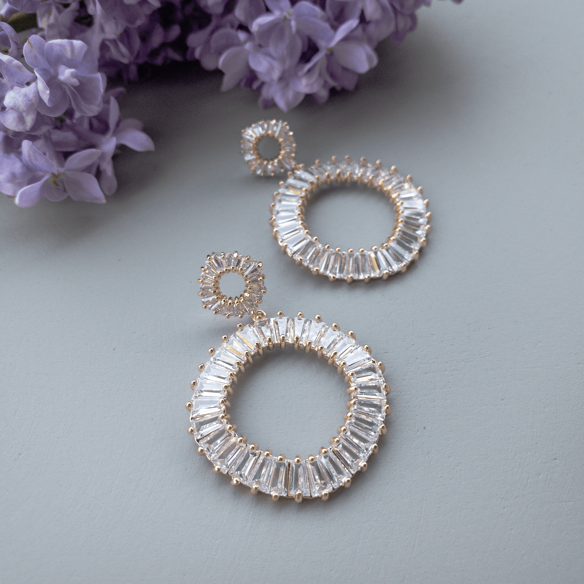 - Cercei din metal cu cristale de zirconiu aplicate, aliaj zinc, fara nichel