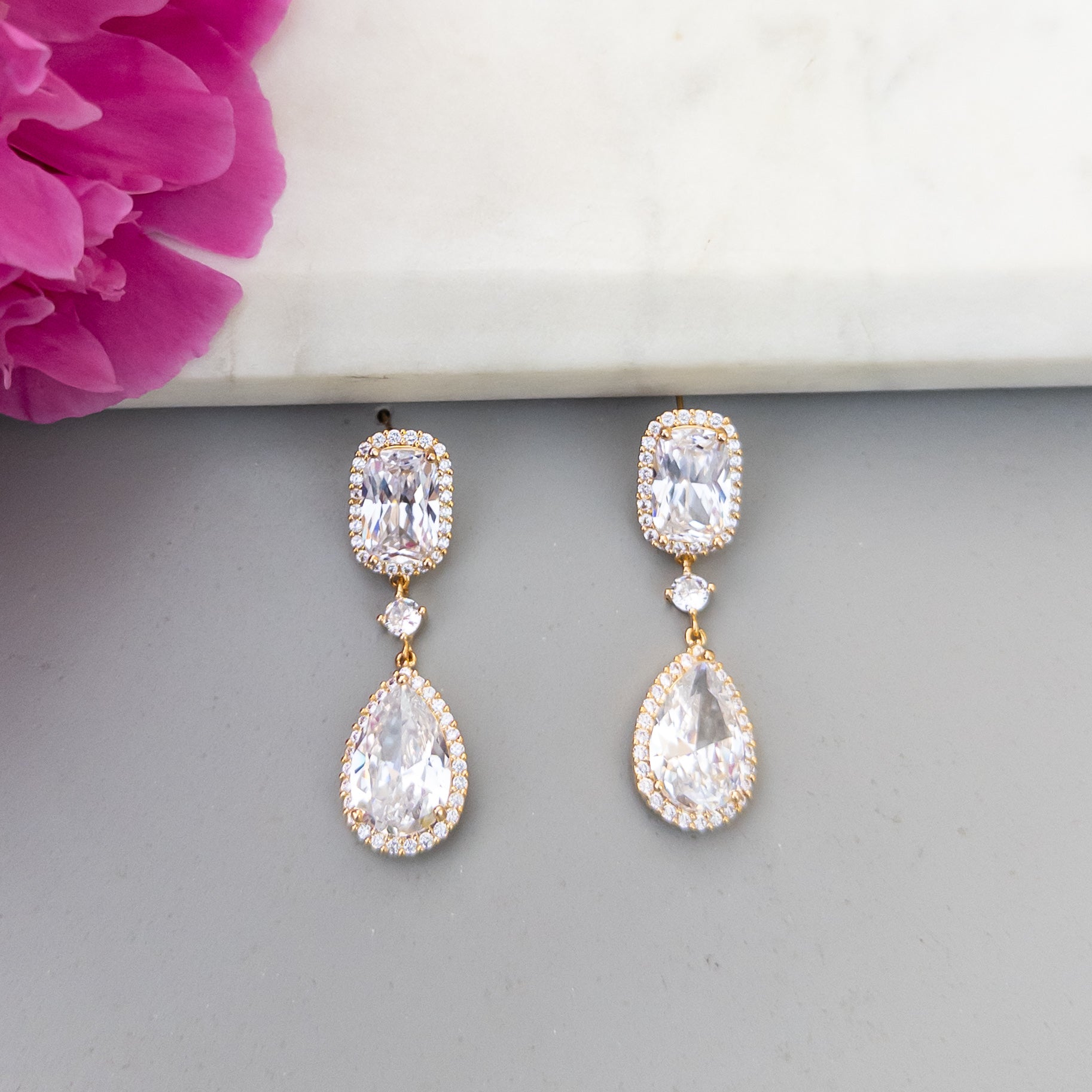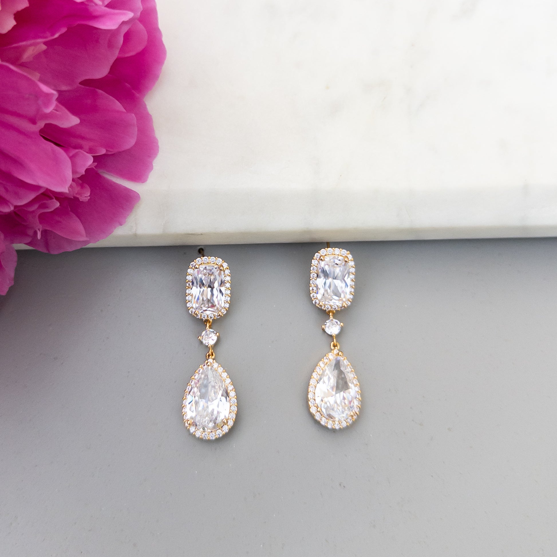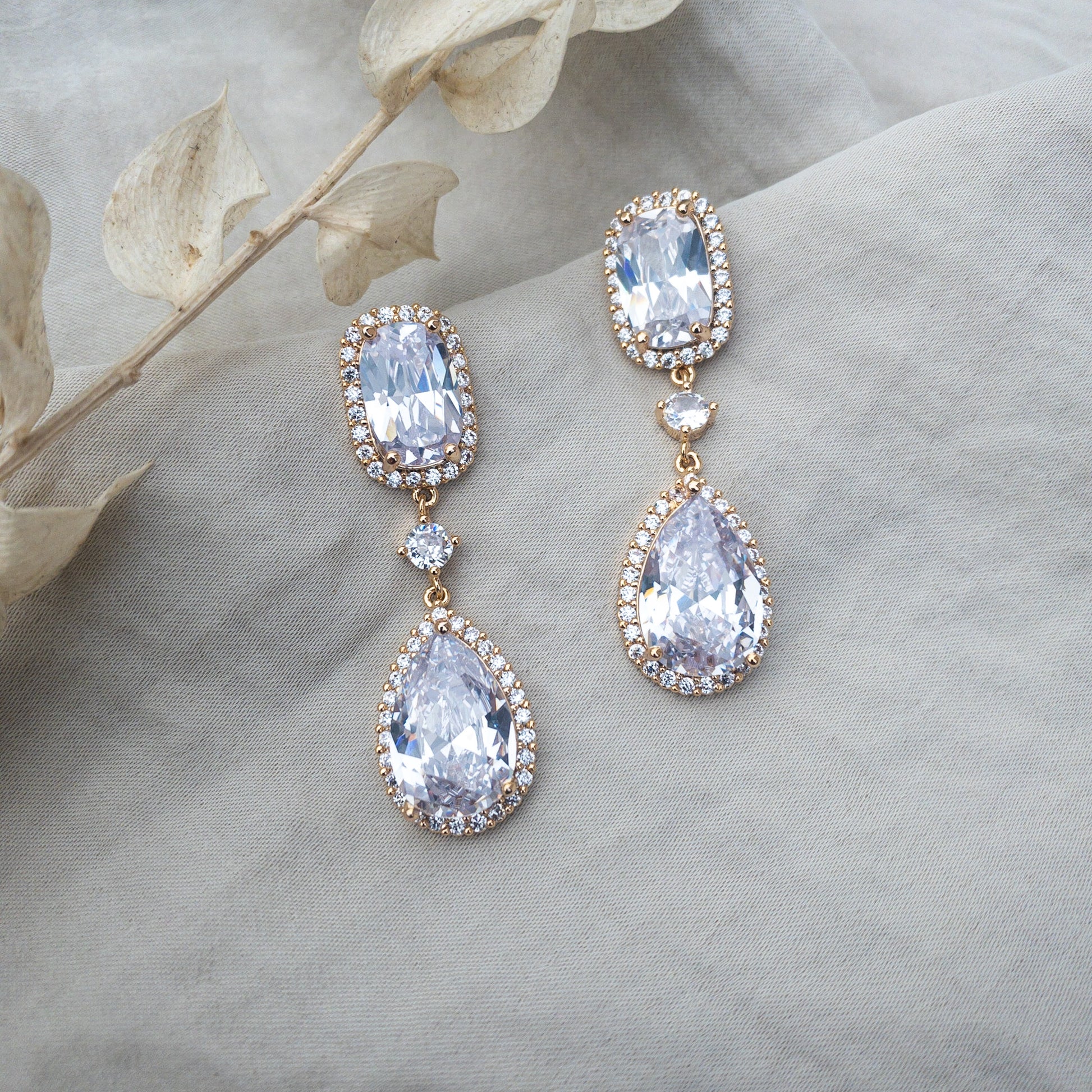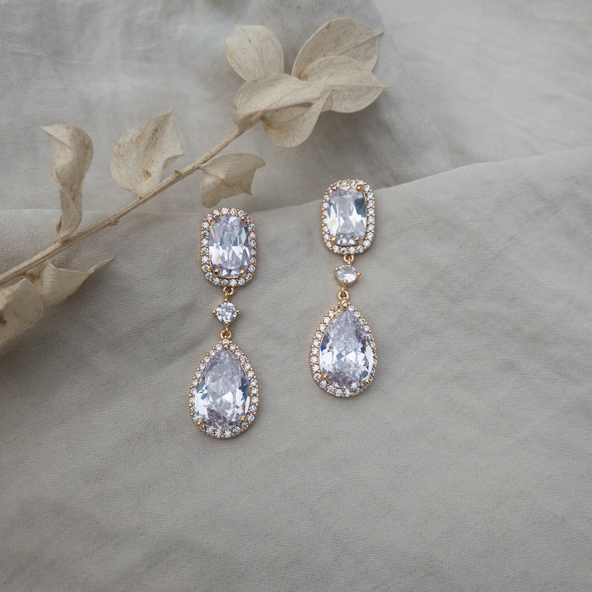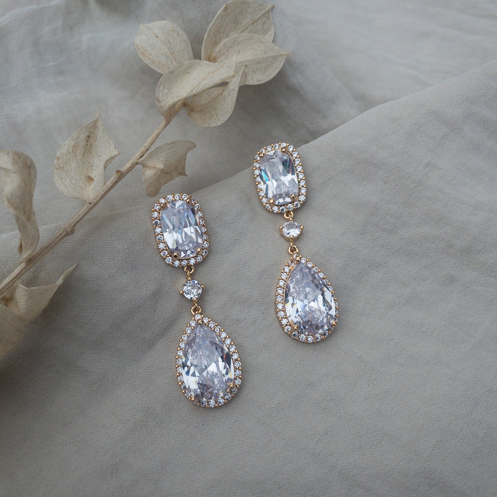 - Cercei fabricati din metal, placat cu rodiu, cu cristale de zirconiu aplicate.