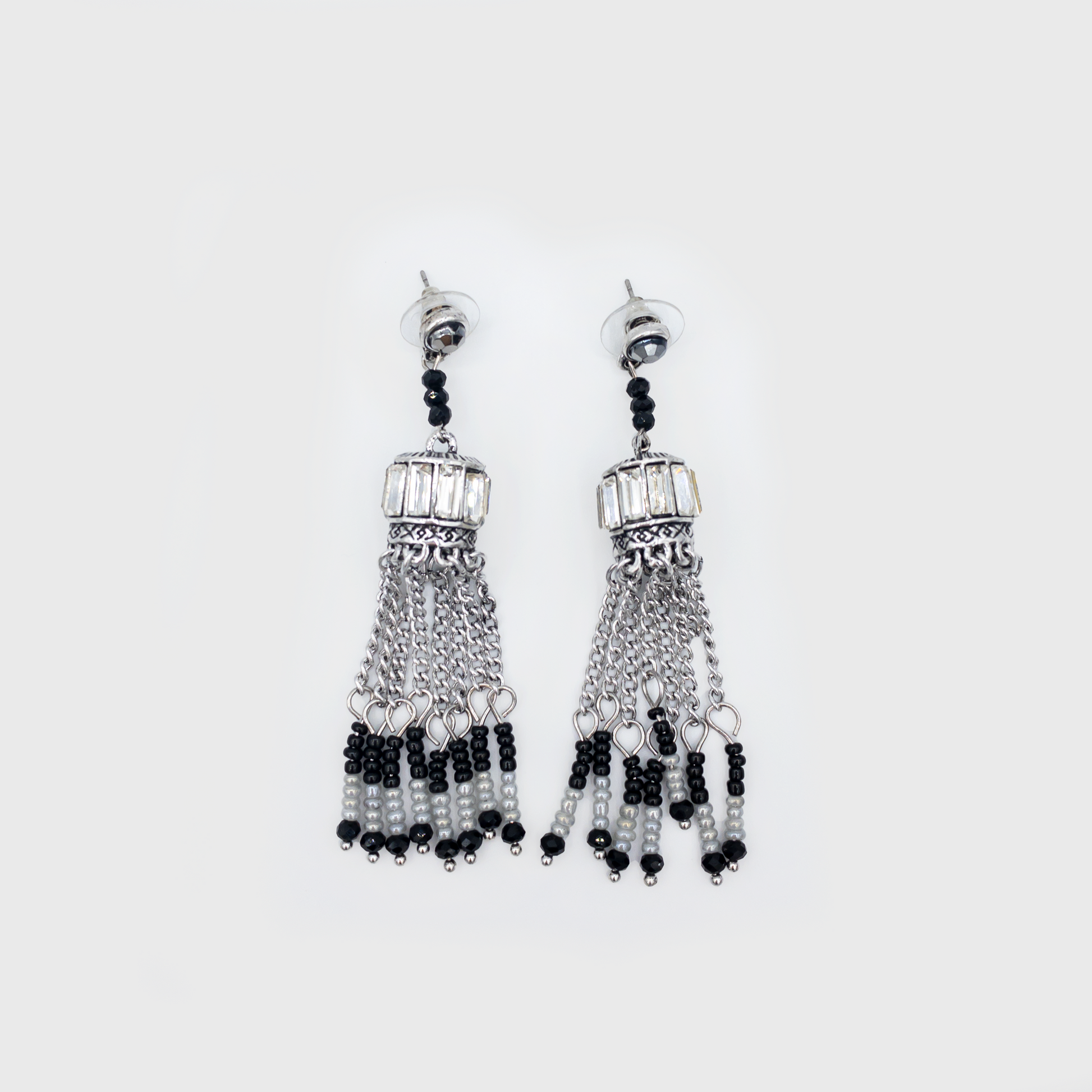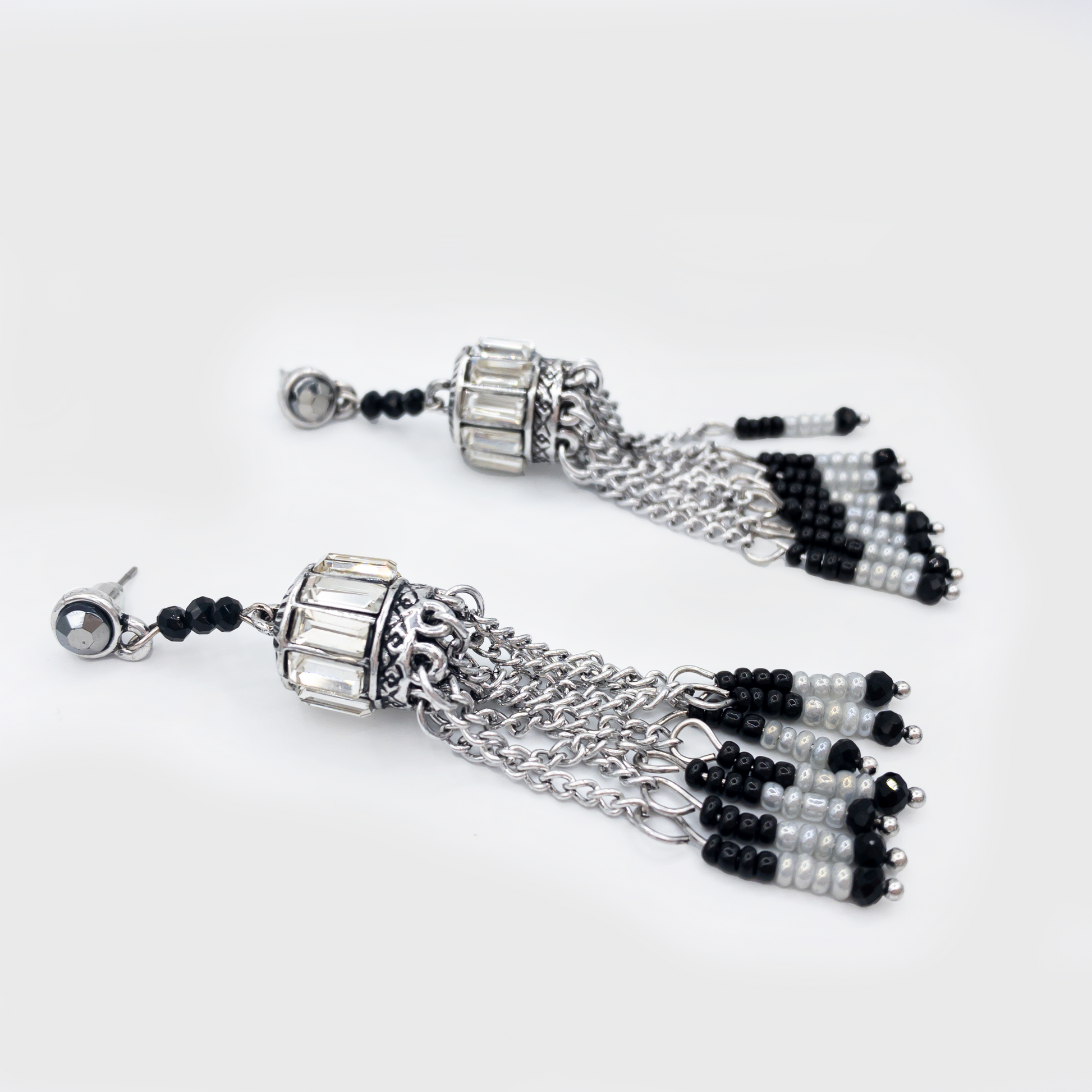 - Cercei din metal cu siraguri de lanturi si cristale aplicate, aliaj zinc