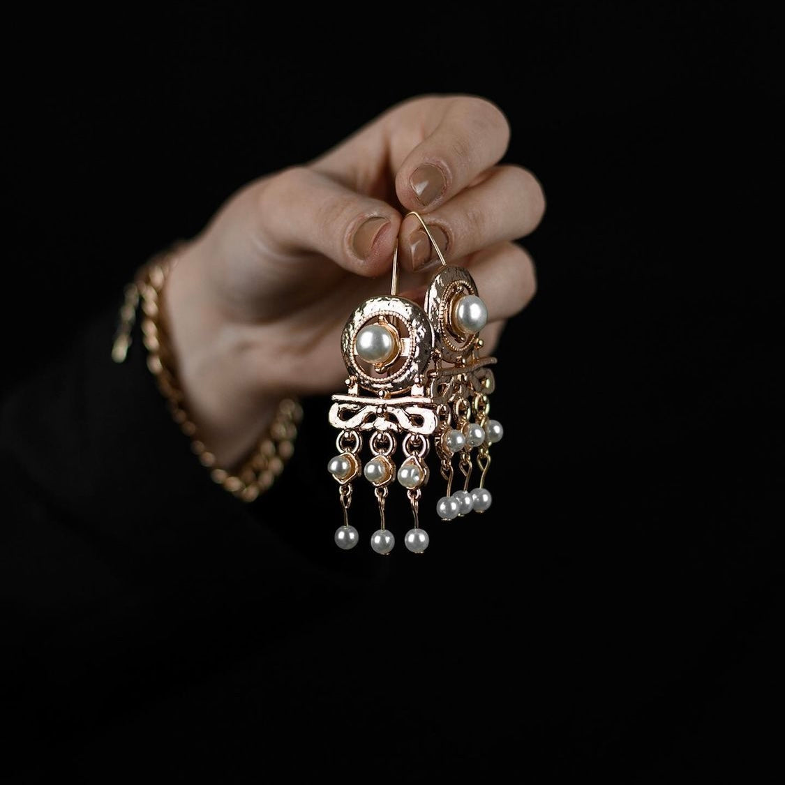 - Cercei din metal cu perle sintetice aplicate, aliaj zinc
