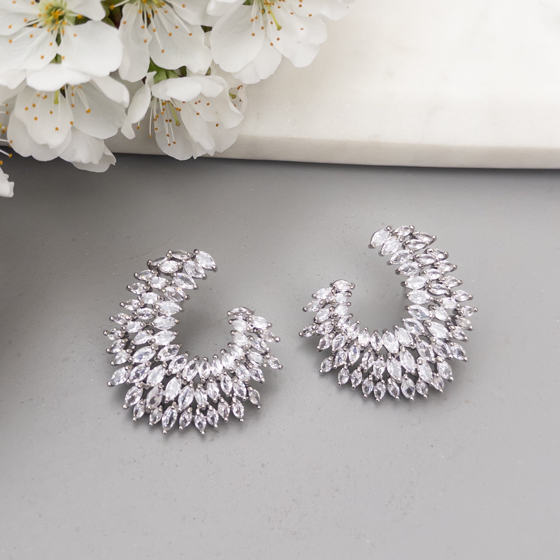 - Cercei fabricati din oțel inoxidabil, placat cu rodiu, cu cristale de zirconiu aplicate.