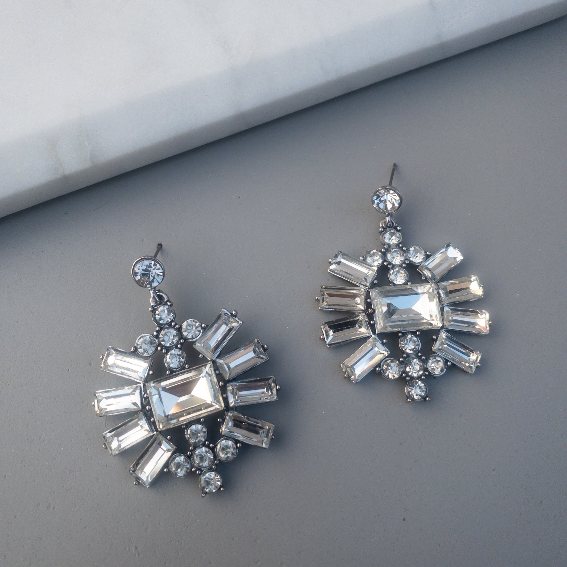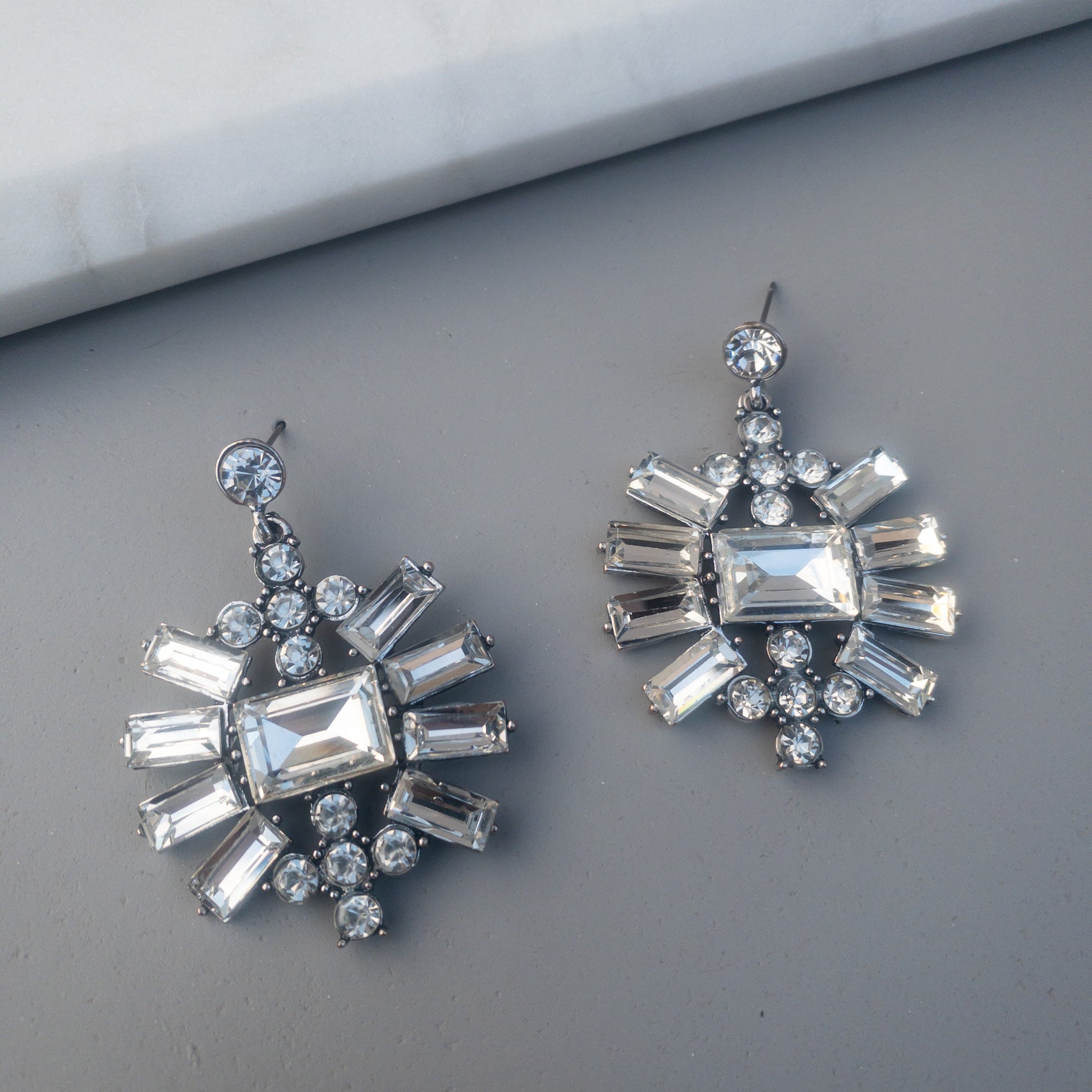 - Cercei fabricati din metal, cu cristale de sticla aplicate.