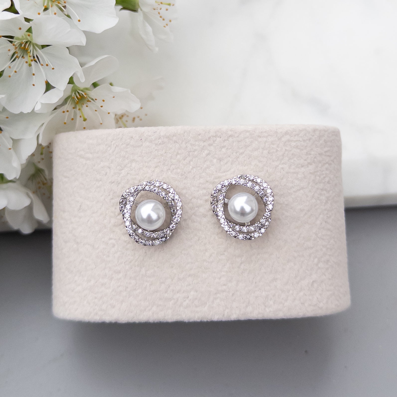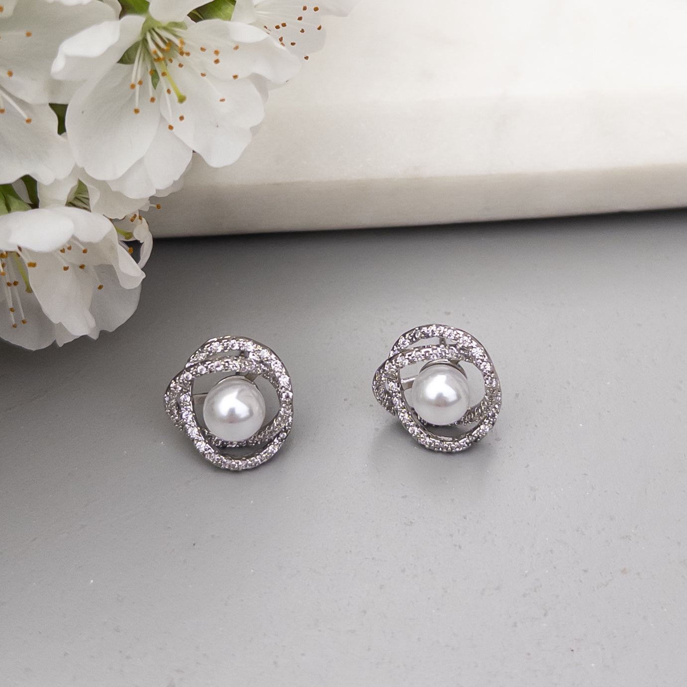 - Cercei fabricati din otel inoxidabil, cu cristale de zirconiu si perle aplicate.