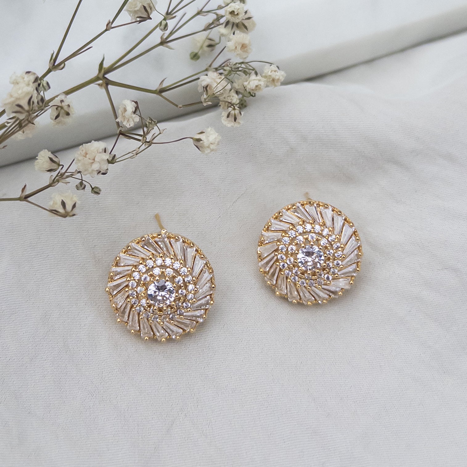 - Cercei fabricati din oțel inoxidabil, cu cristale de zirconiu aplicate.