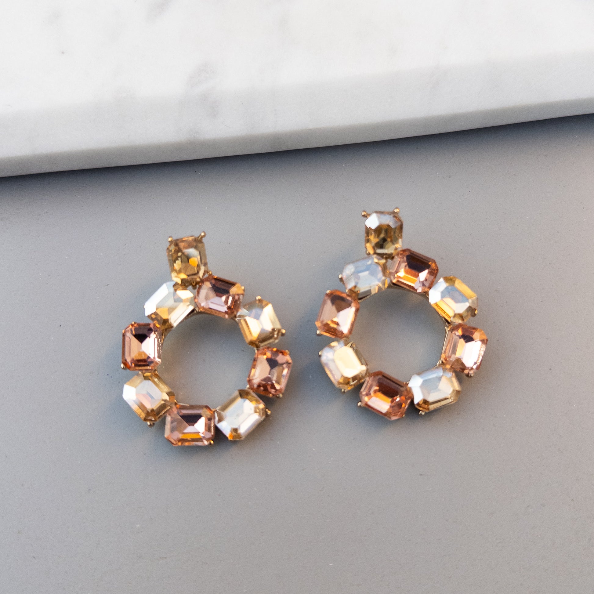 - Cercei fabricati din metal, cu cristale de sticla aplicate.