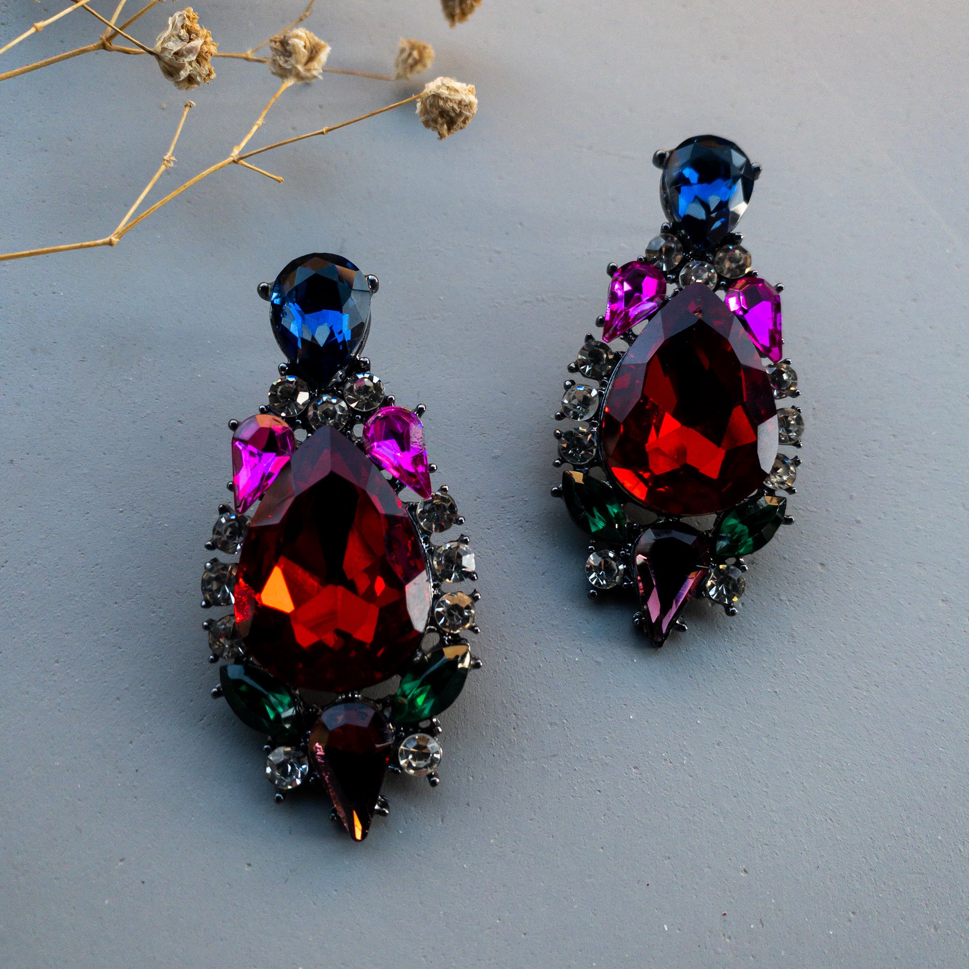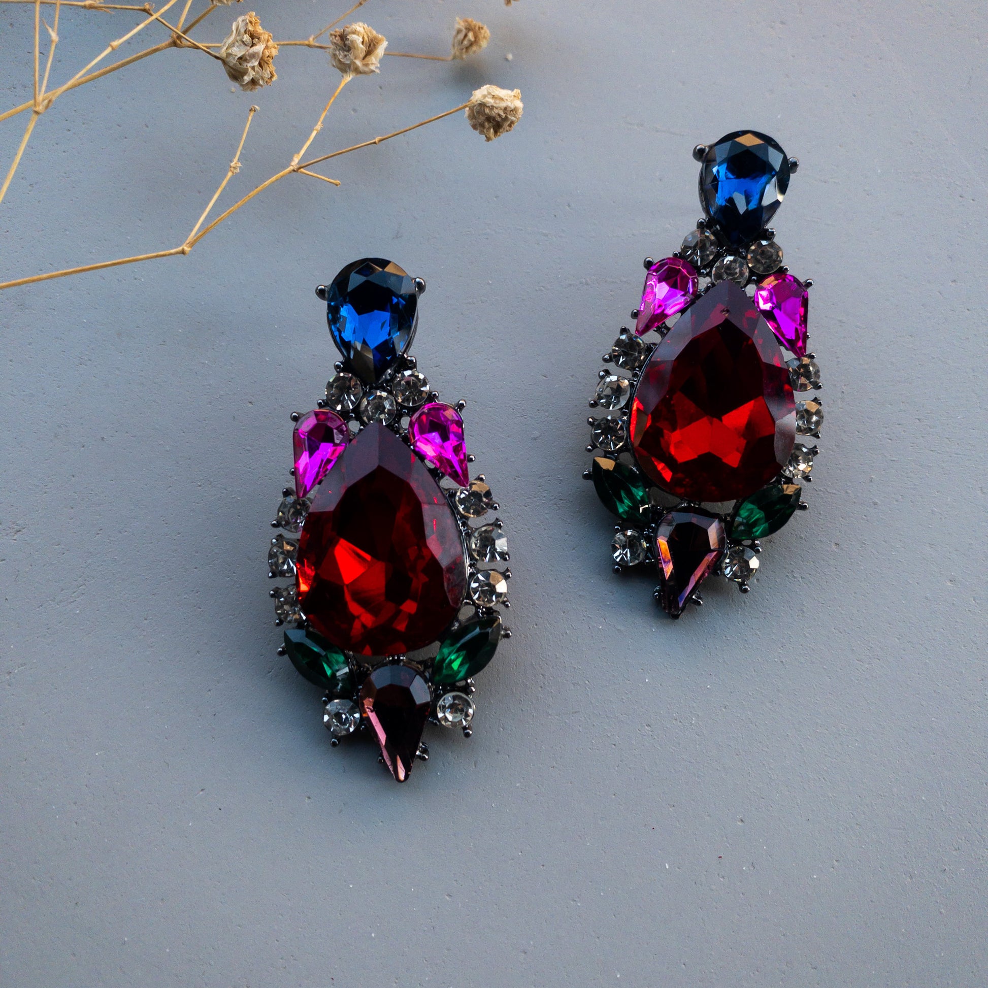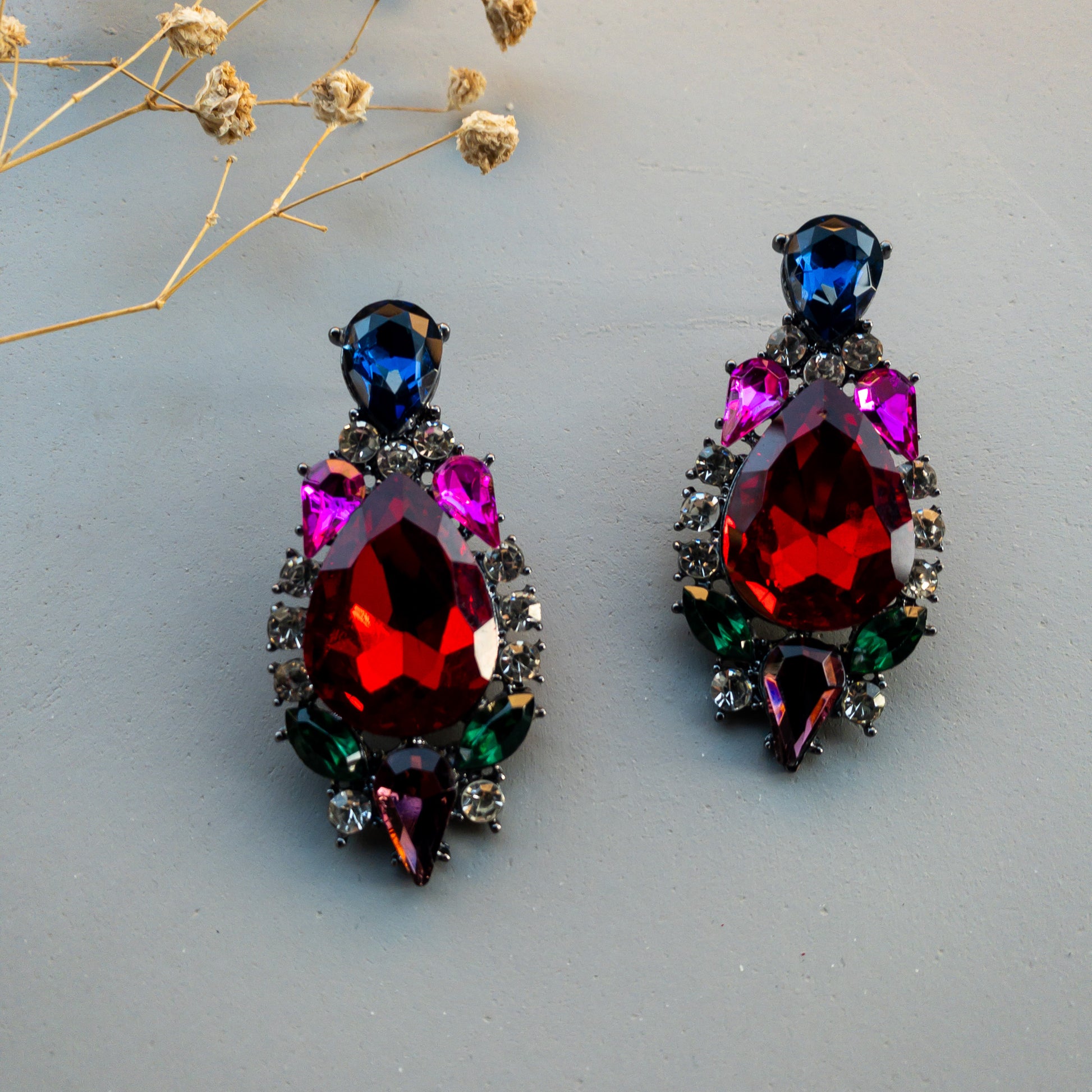 - Cercei fabricati din metal, cu cristale de sticla aplicate.