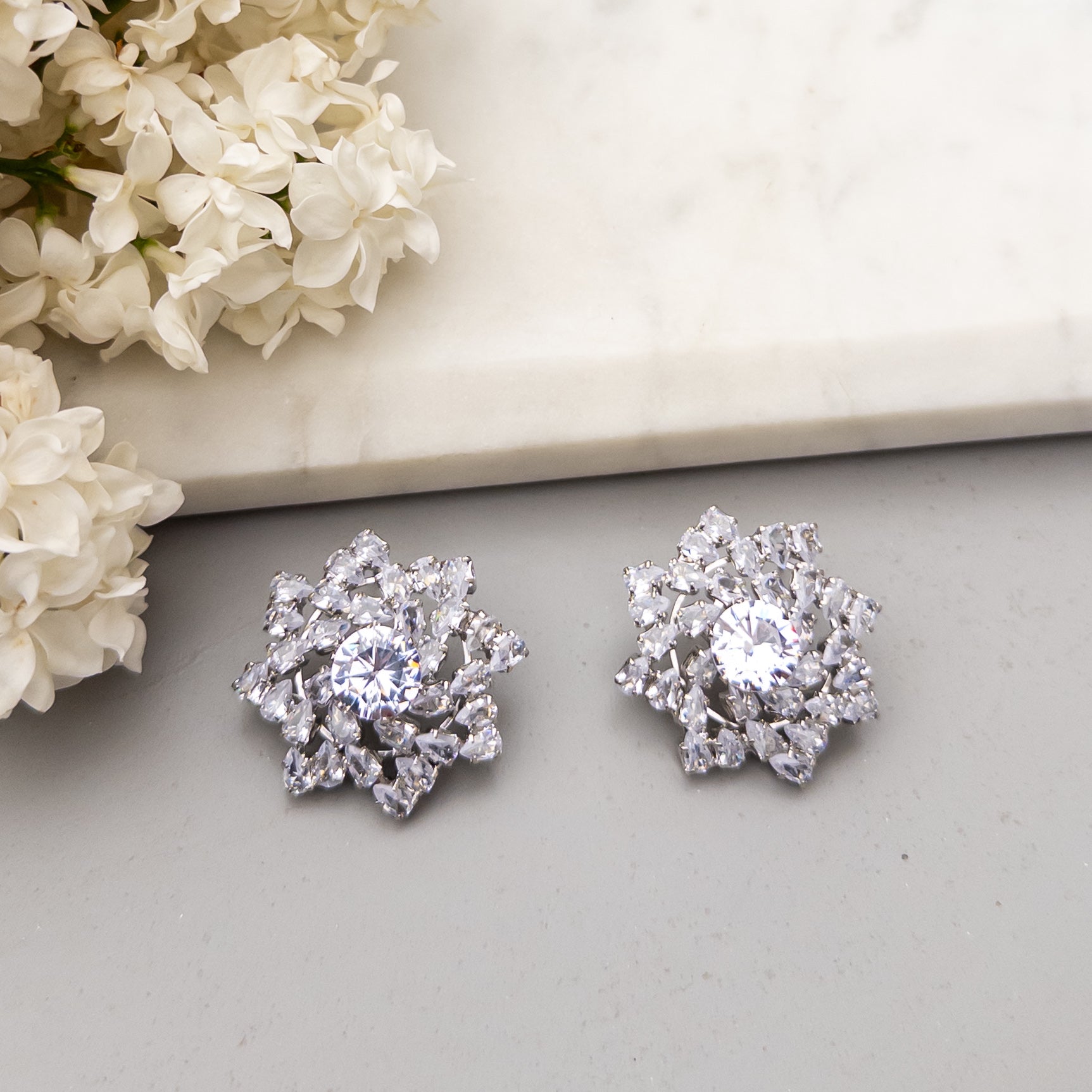 - Cercei fabricati din oțel inoxidabil, cu cristale de zirconiu aplicate.