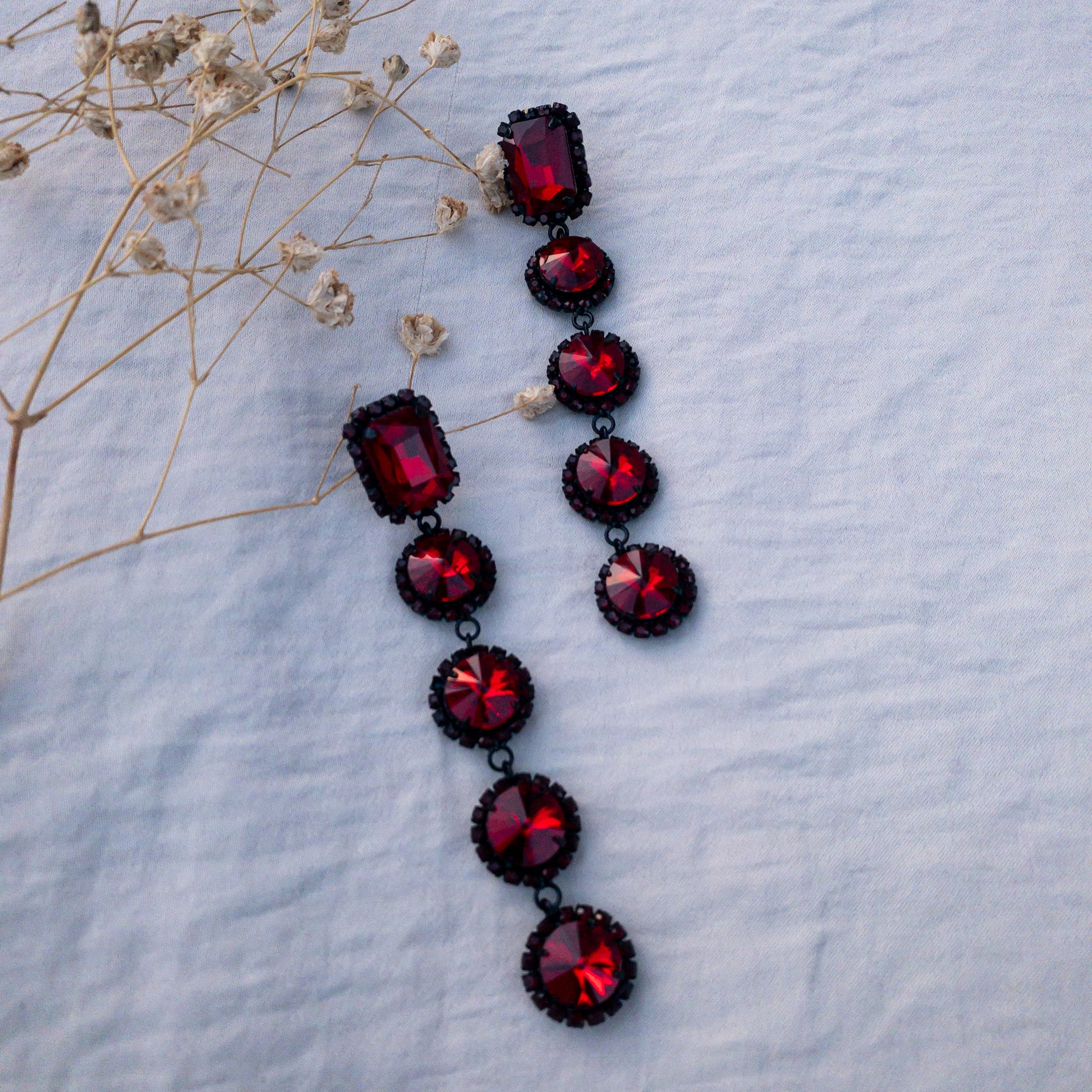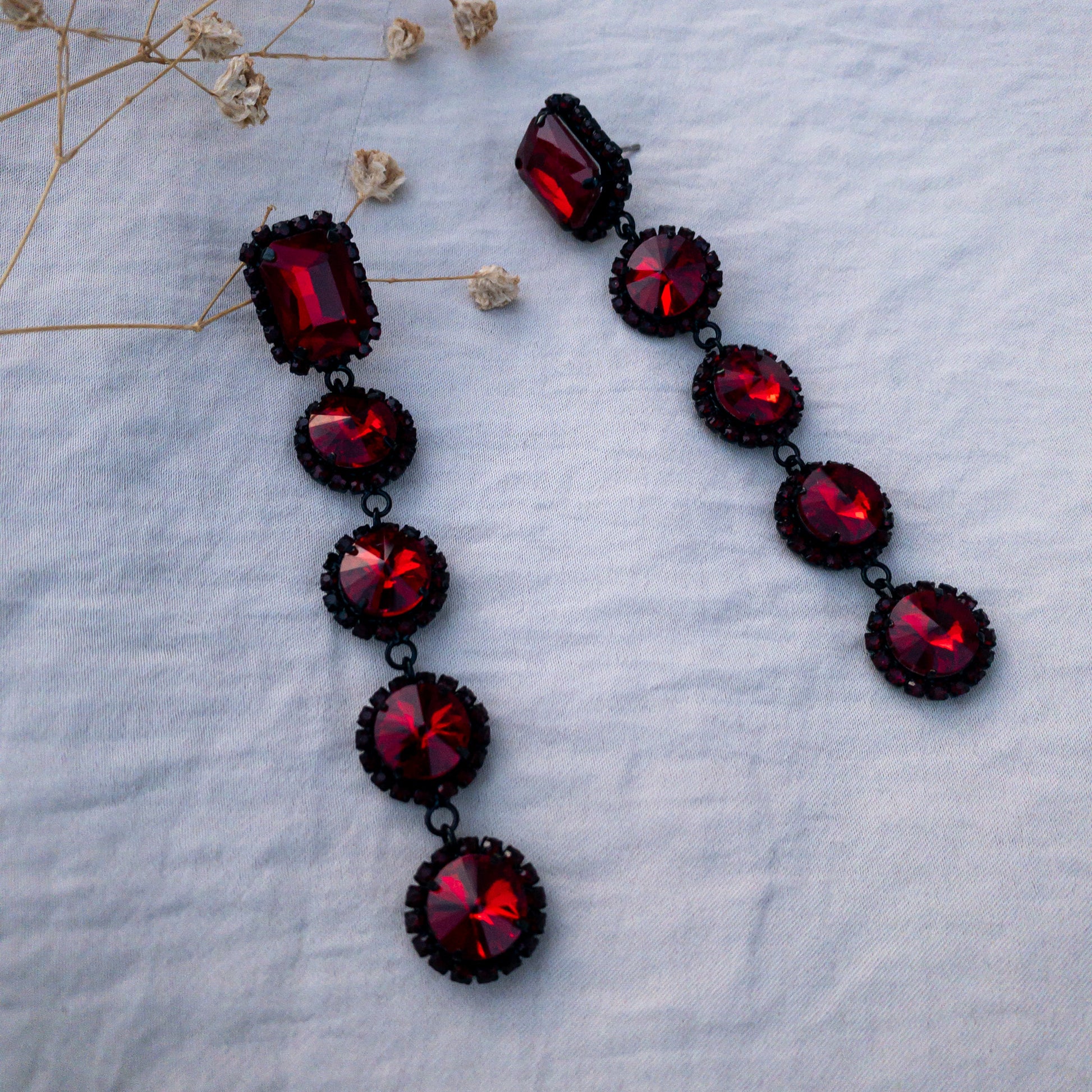 - Cercei fabricati din metal, cu cristale de sticla aplicate.