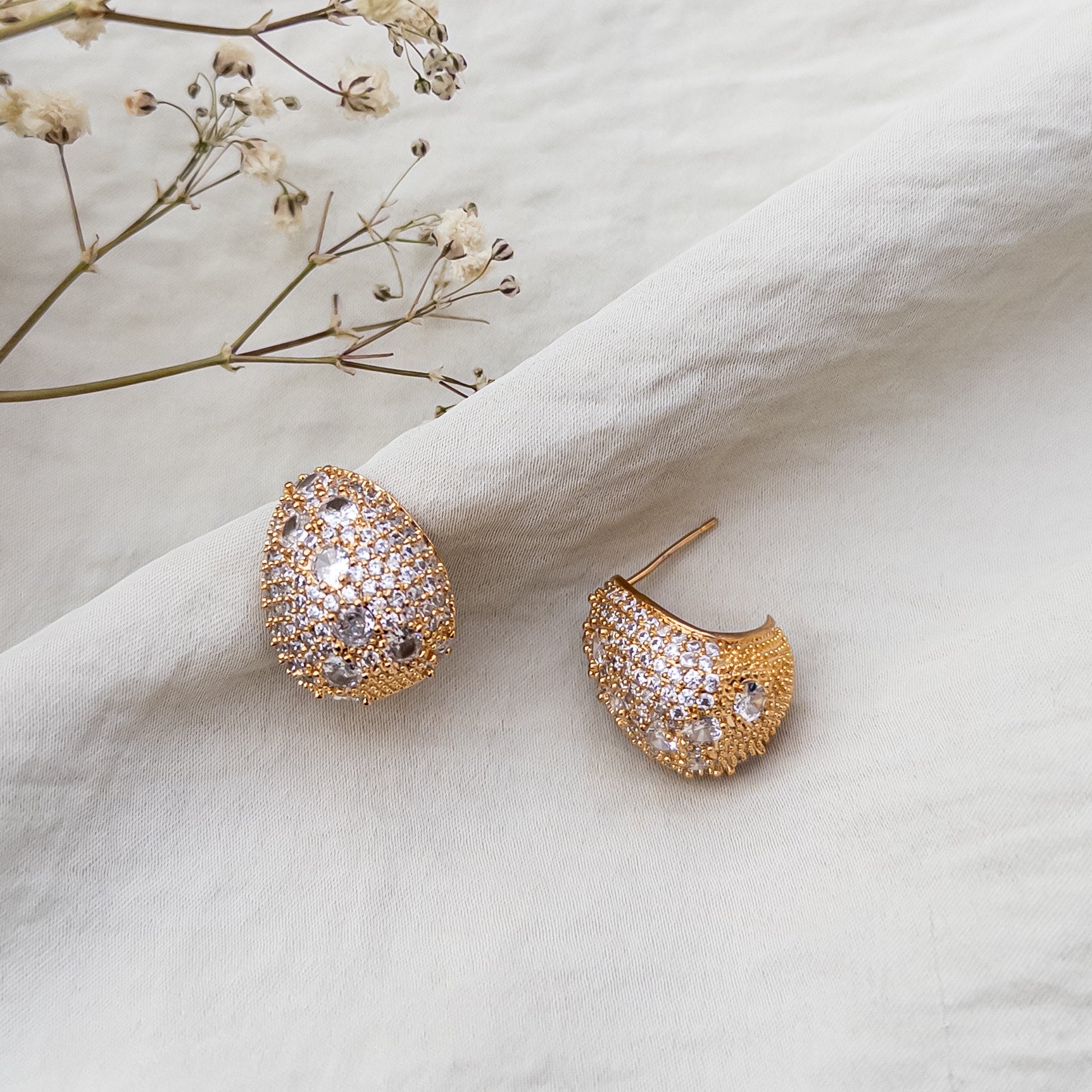 - Cercei fabricati din oțel inoxidabil, cu cristale de zirconiu aplicate.