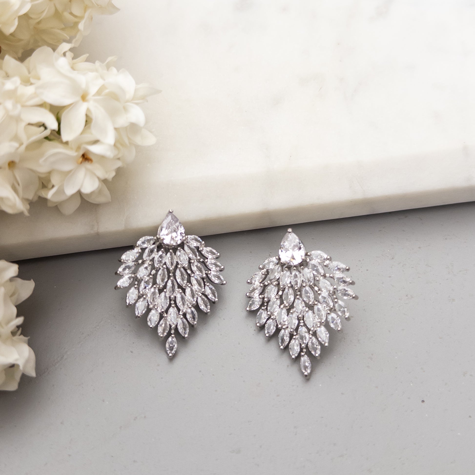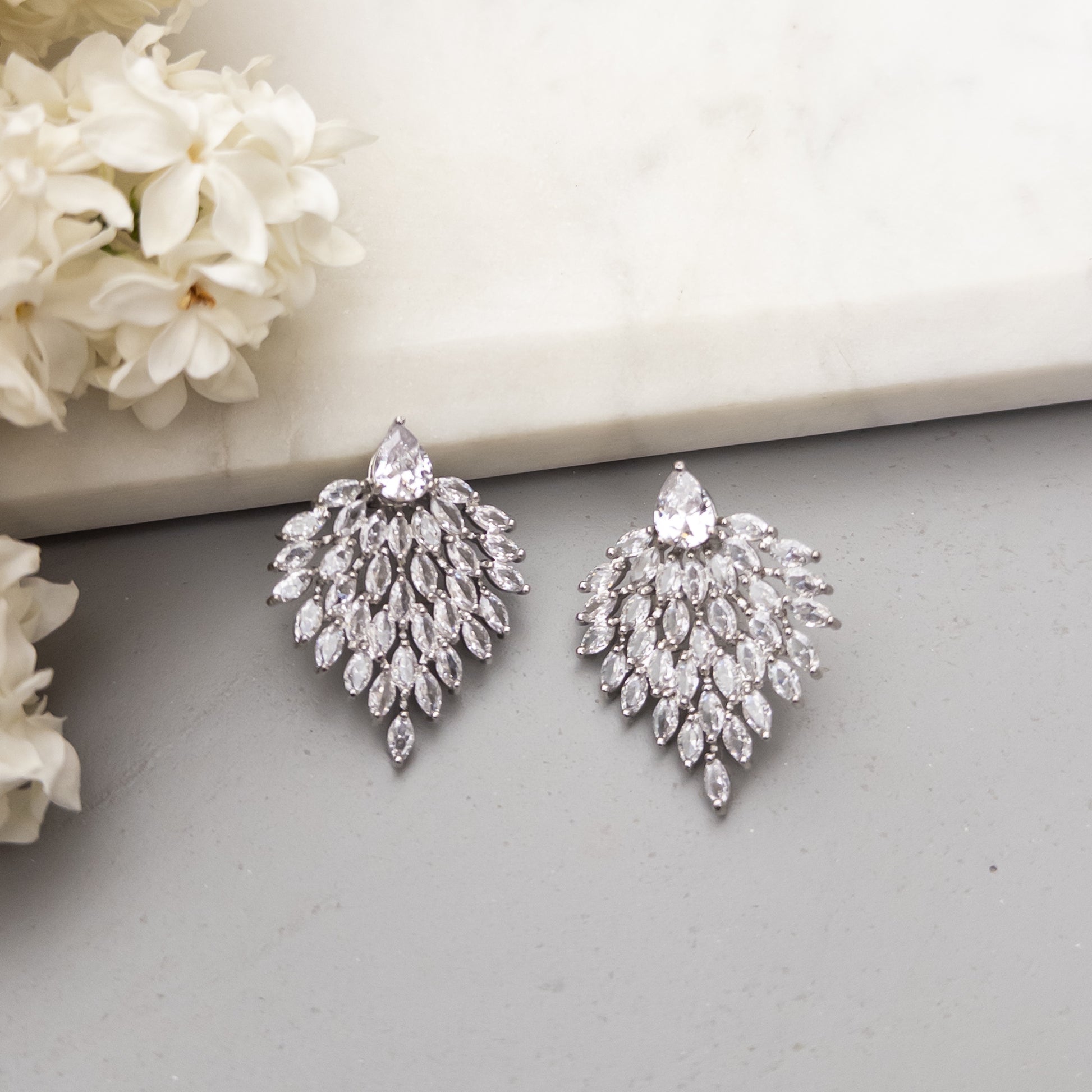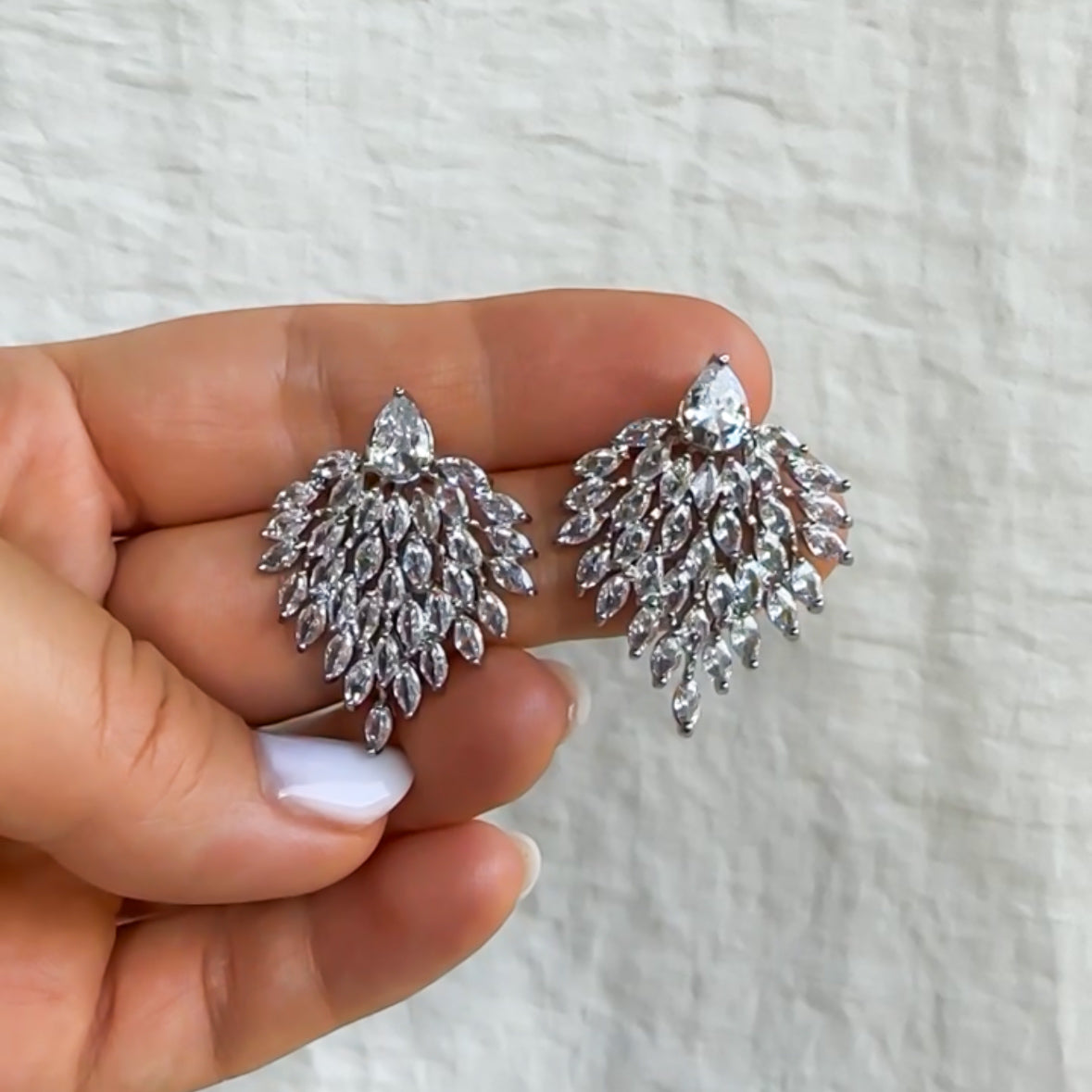 - Cercei fabricati din oțel inoxidabil, cu cristale de zirconiu aplicate.