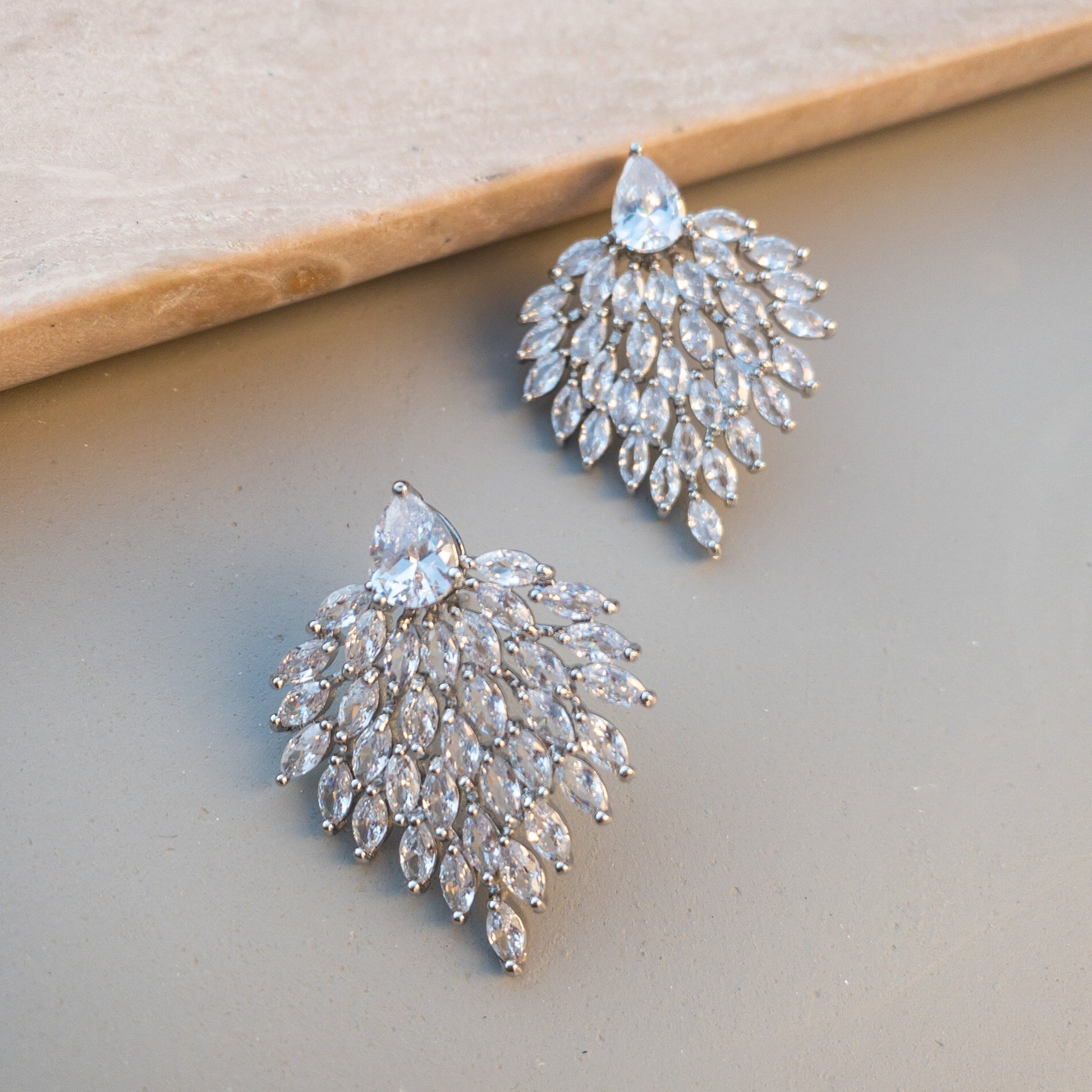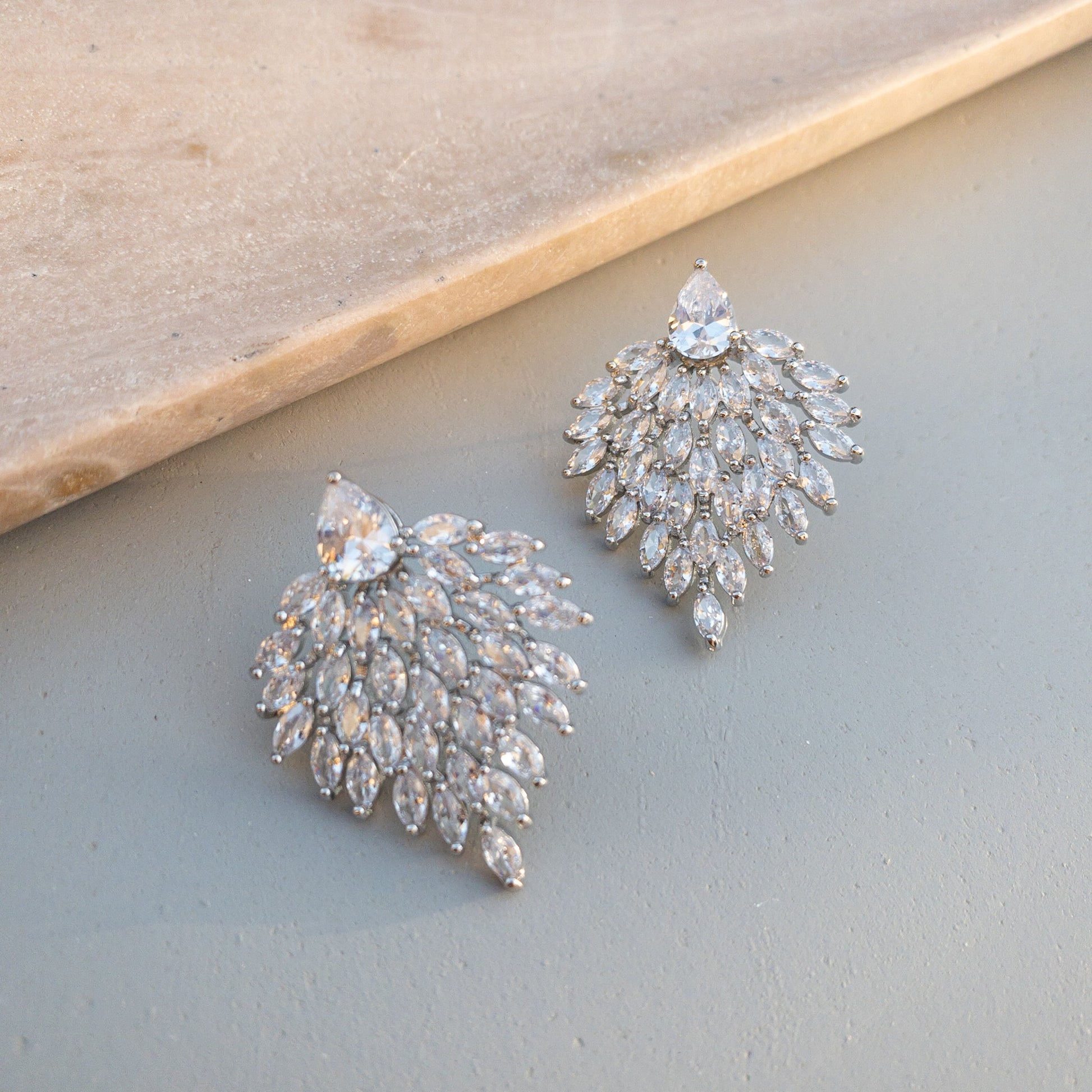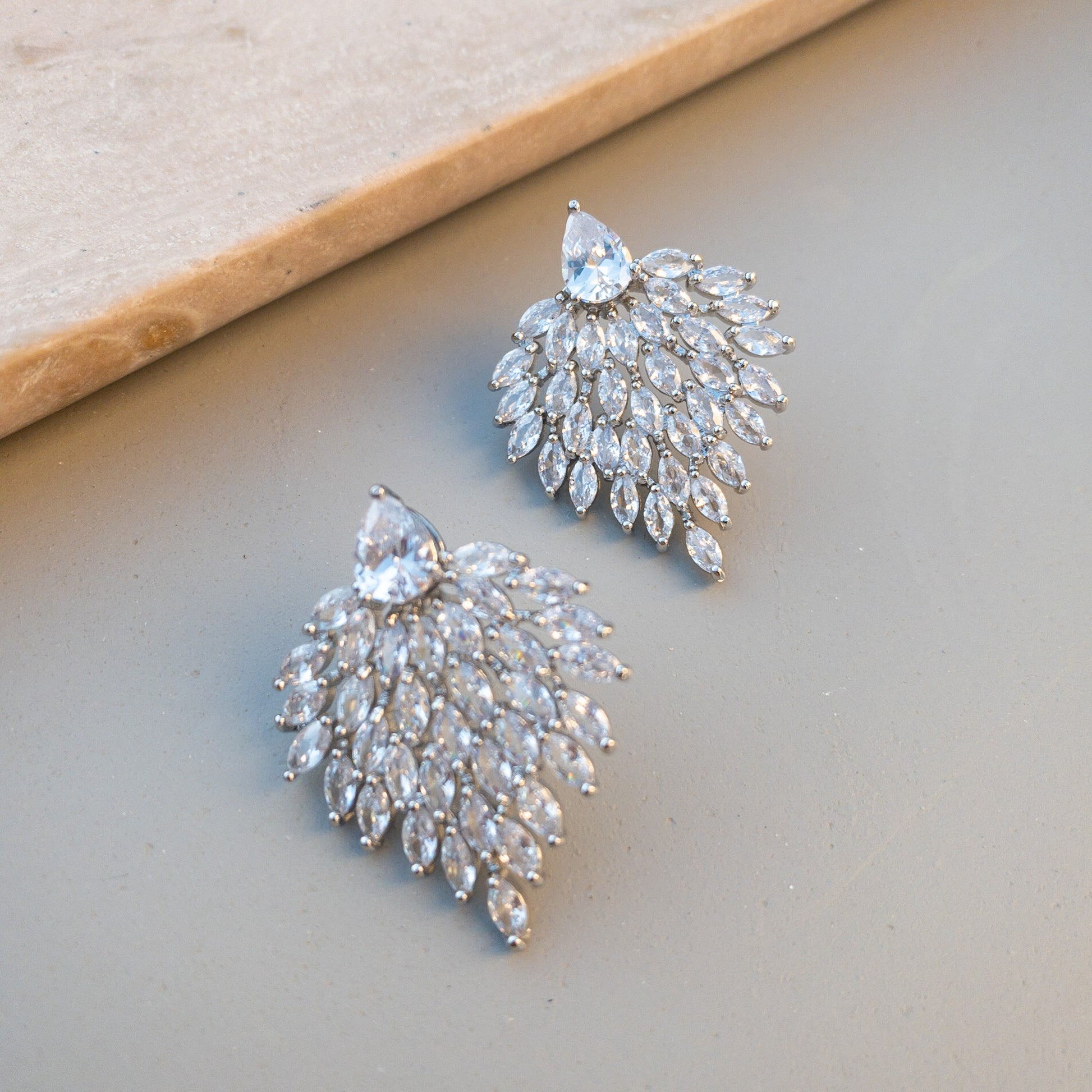 - Cercei fabricati din oțel inoxidabil, cu cristale de zirconiu aplicate.