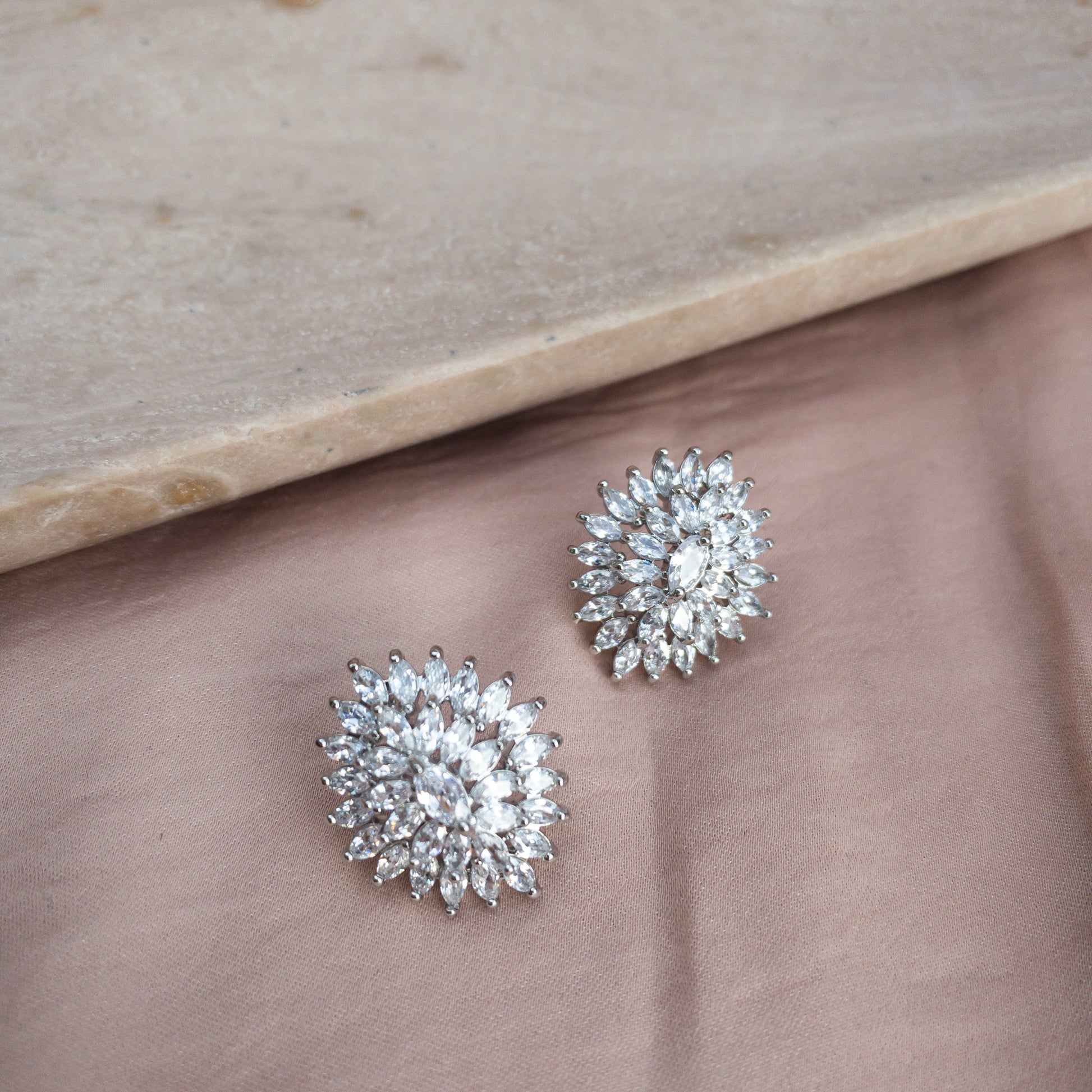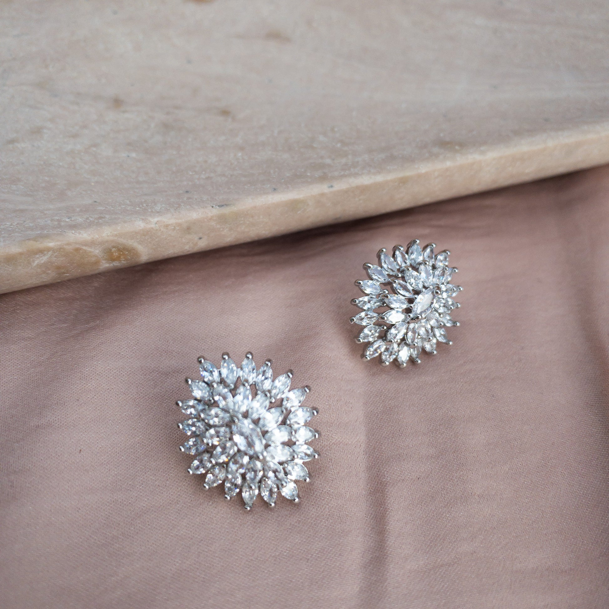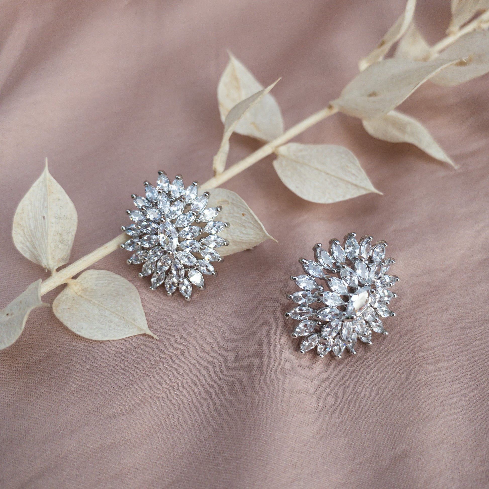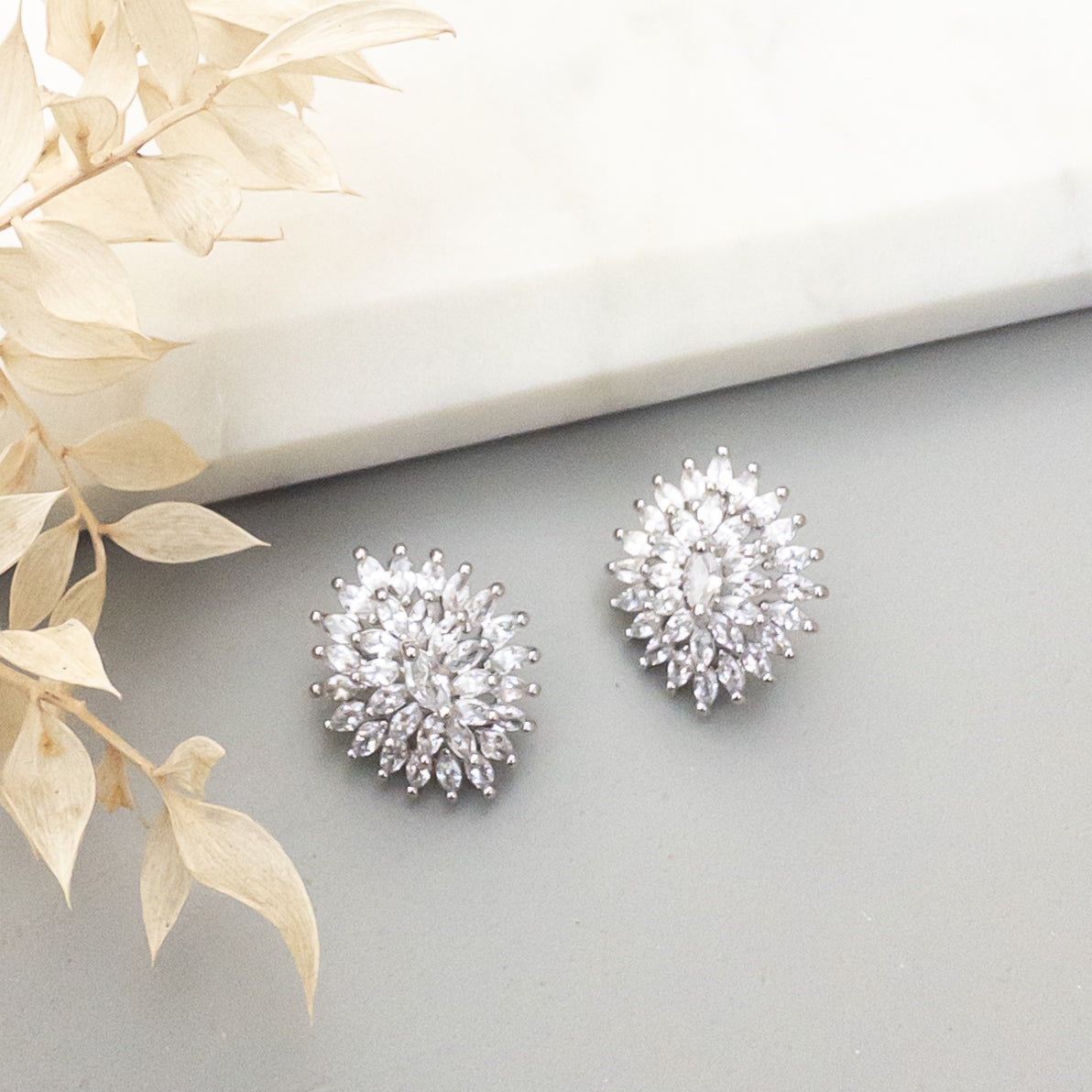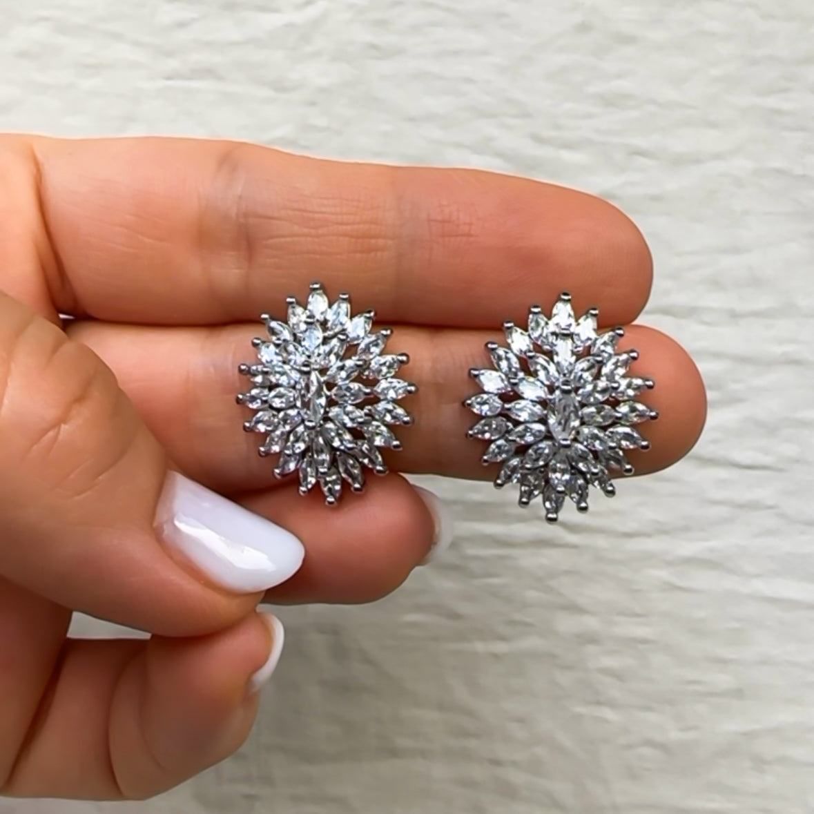 - Cercei fabricati din cupru, placati cu rodiu, cu cristale de zirconiu aplicate.