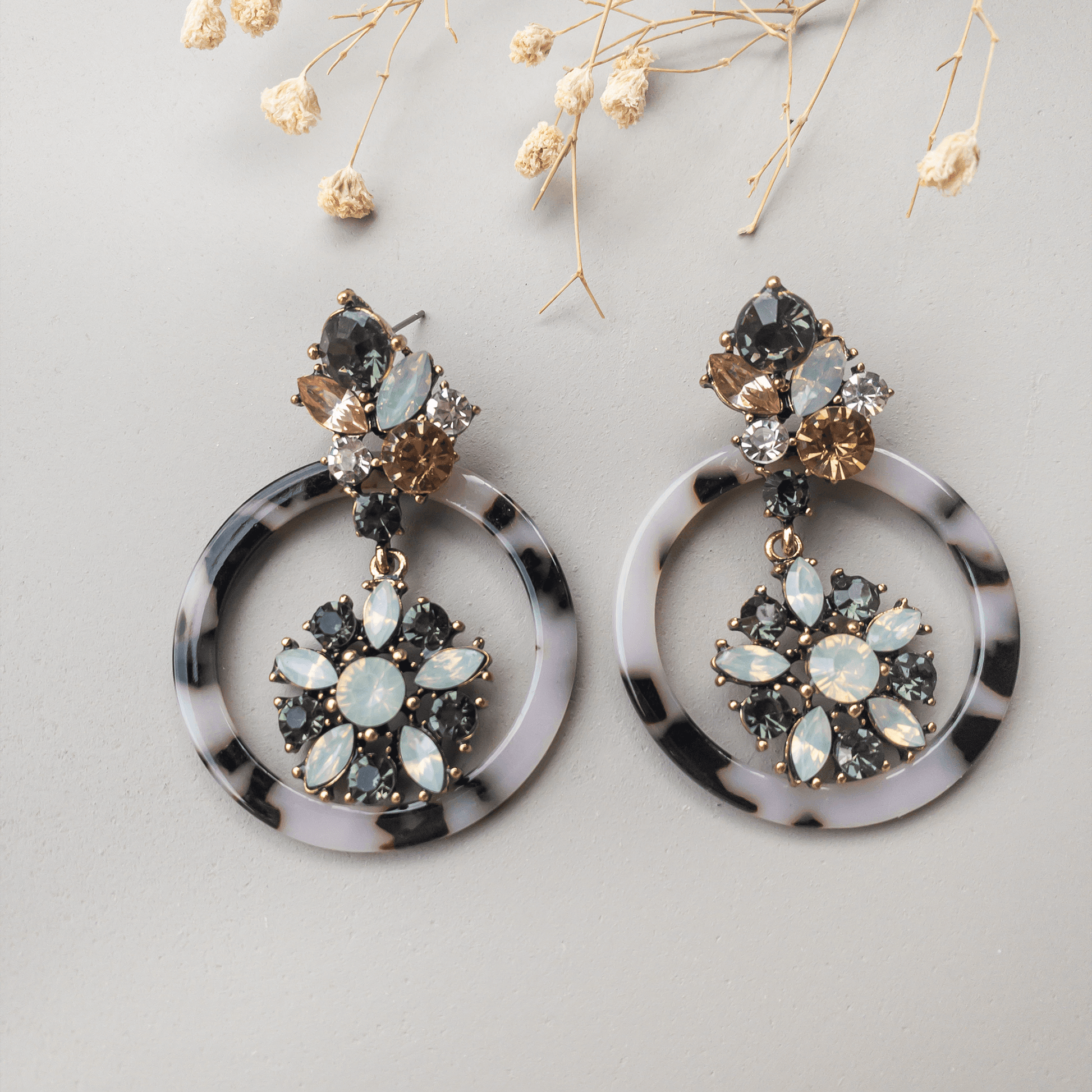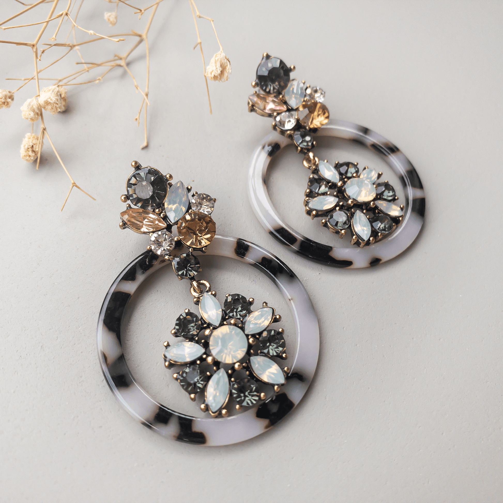 - Cercei fabricati din metal, cu cristale de sticla aplicate, aliaj zinc.