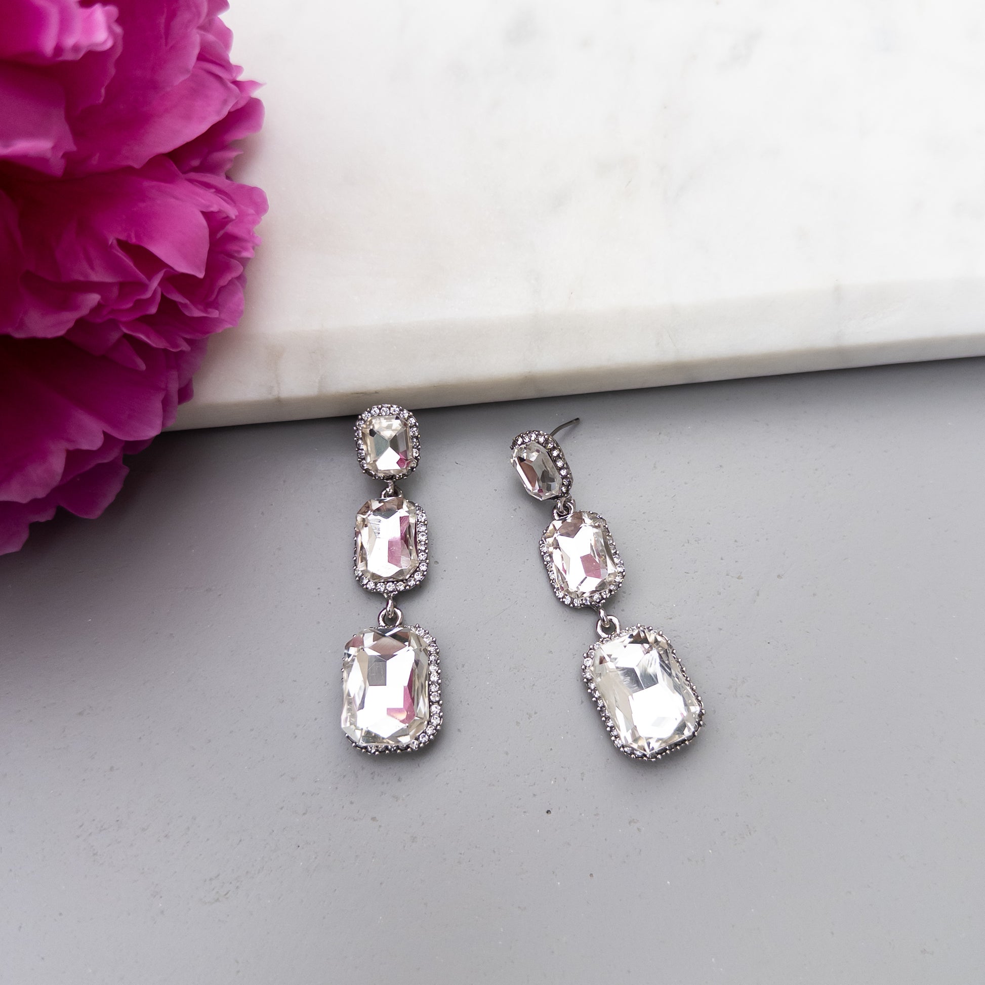 - Cercei fabricati din metal, cu cristale de sticla aplicate.