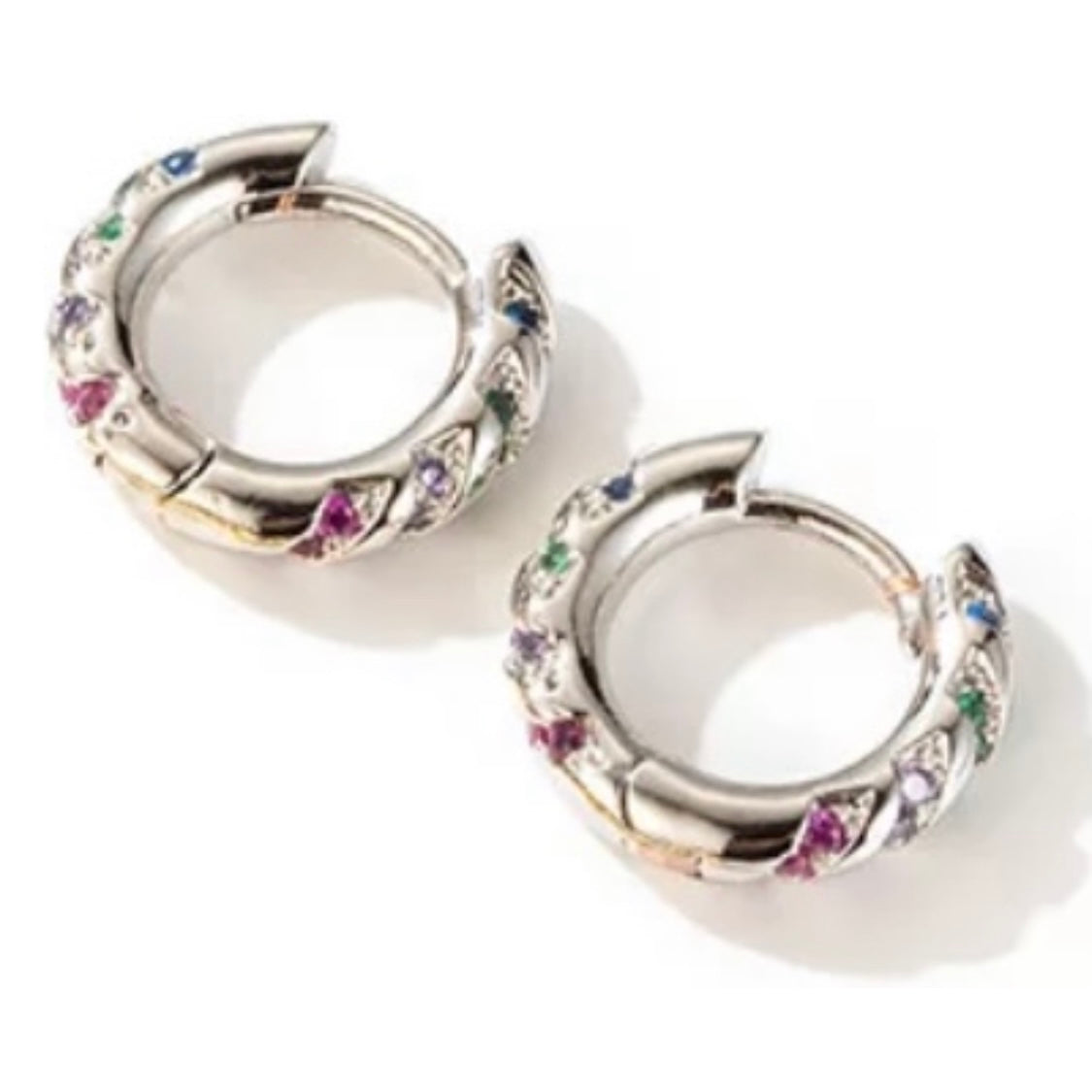 - Cercei fabricati din metal inoxidabil, cu cristale de zirconiu aplicate.