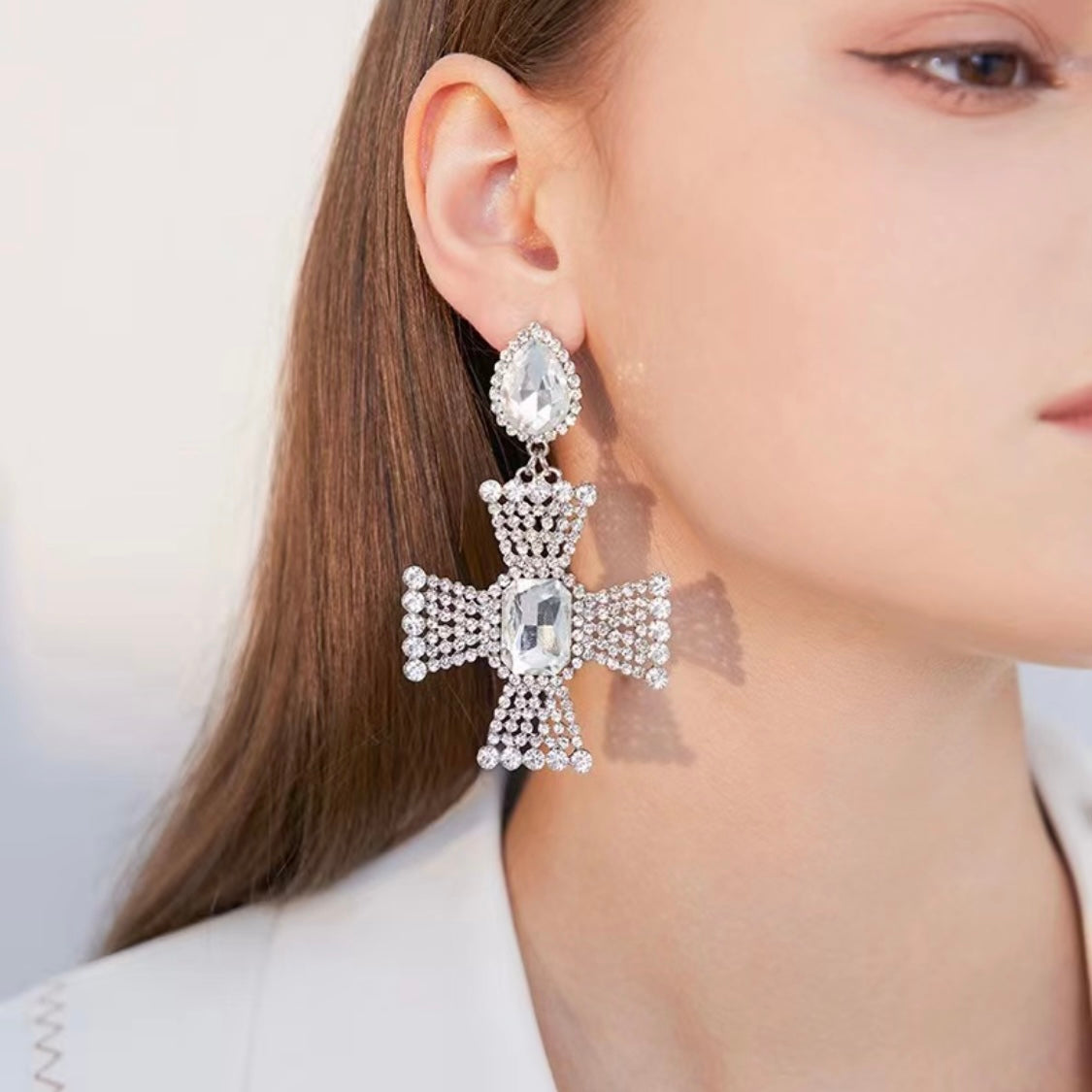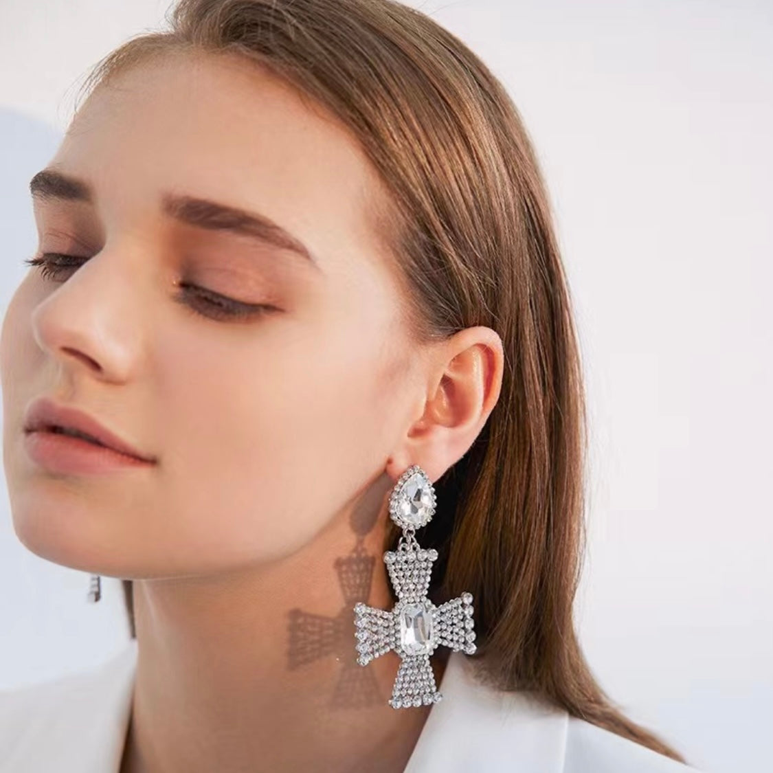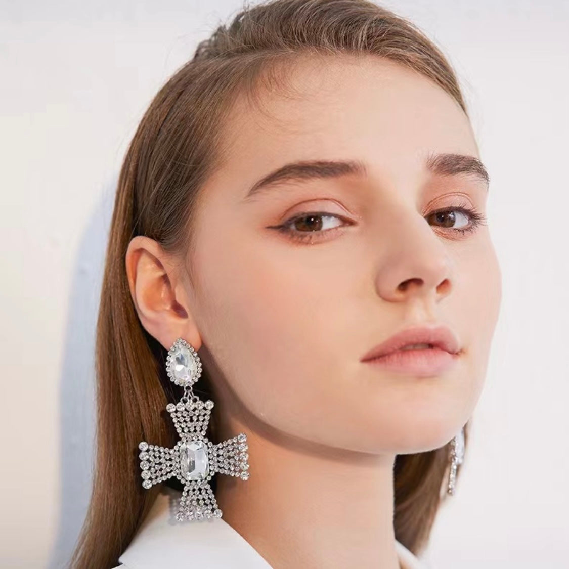 - Cercei fabricati din metal, cu cristale de sticla aplicate.