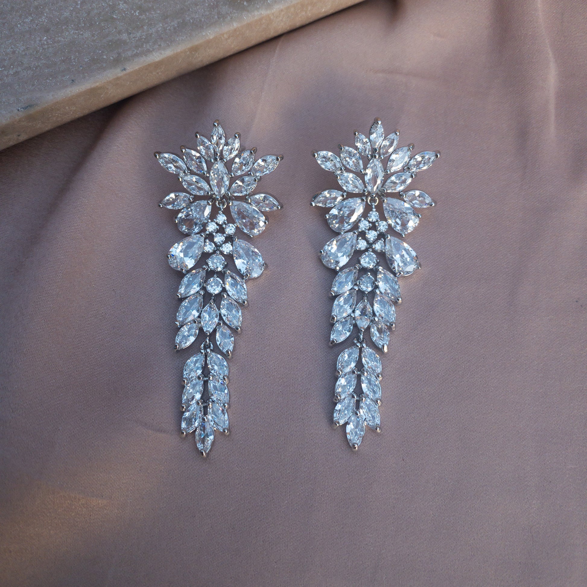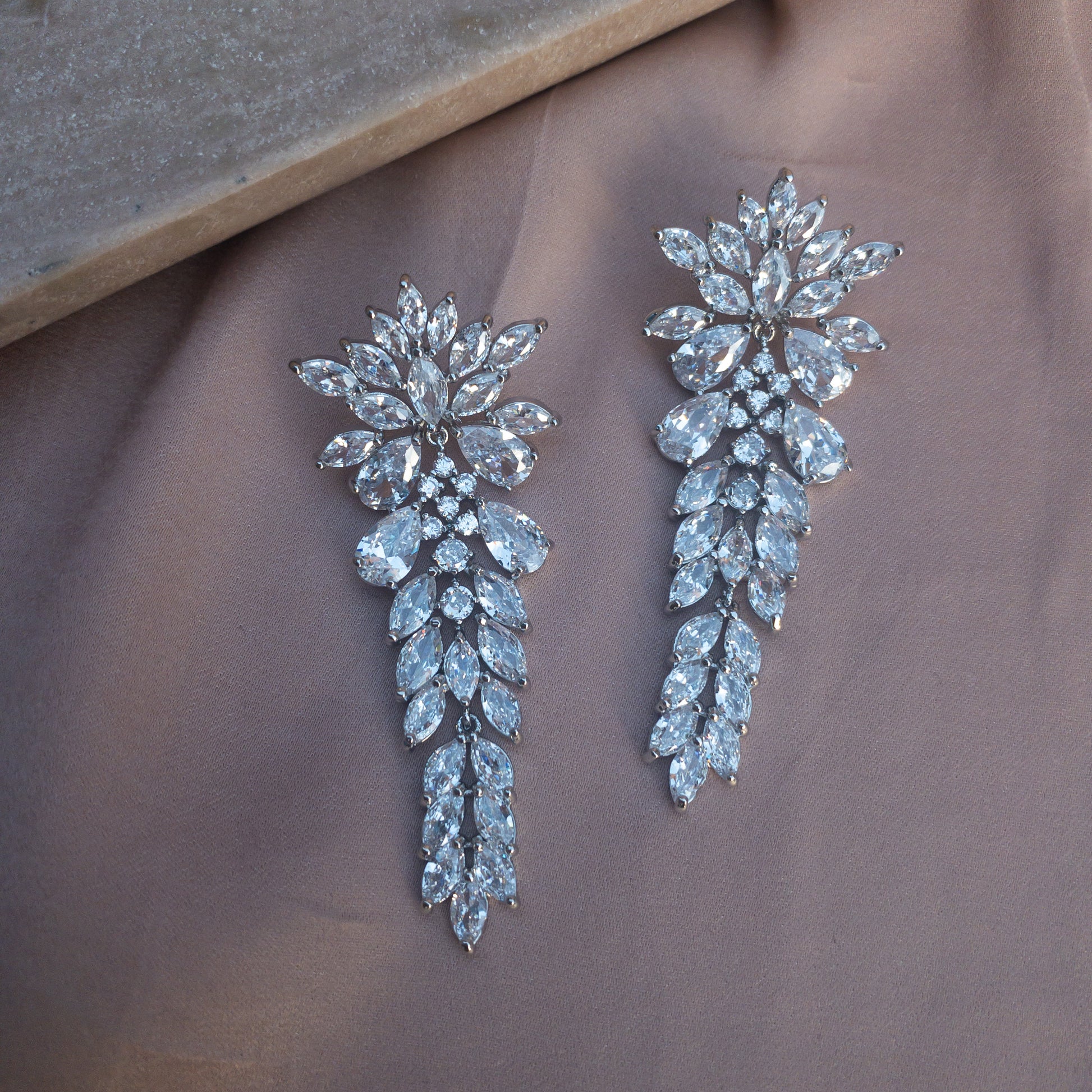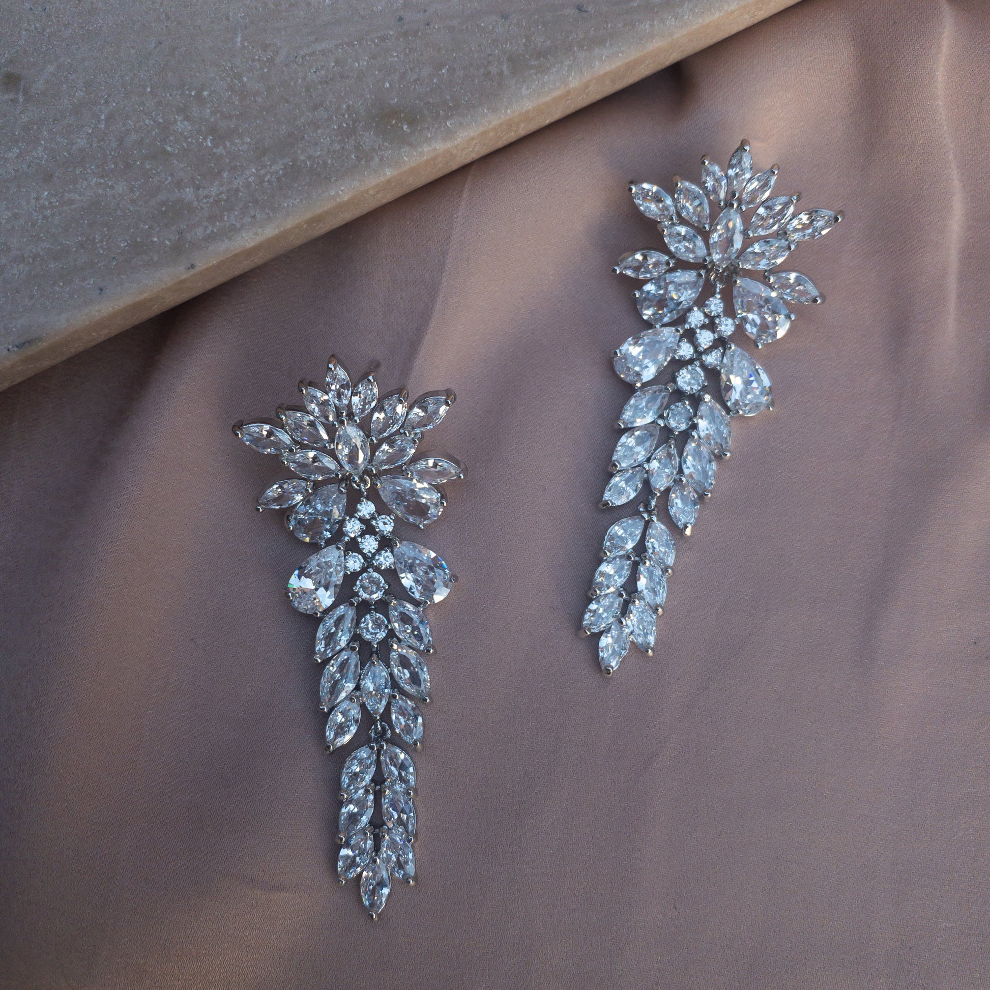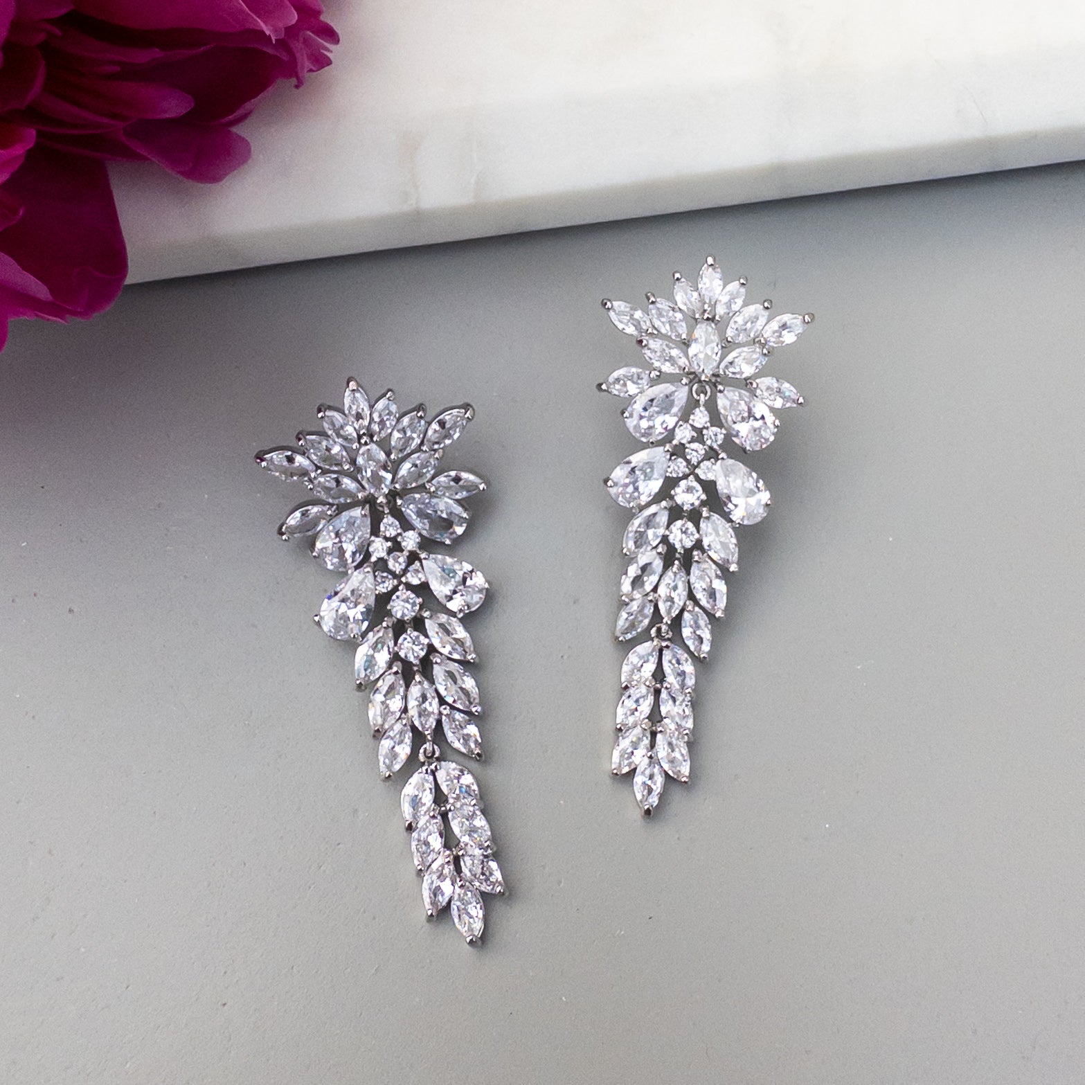 - Cercei fabricati din cupru, placati cu rodiu, cu cristale de zirconiu aplicate.
