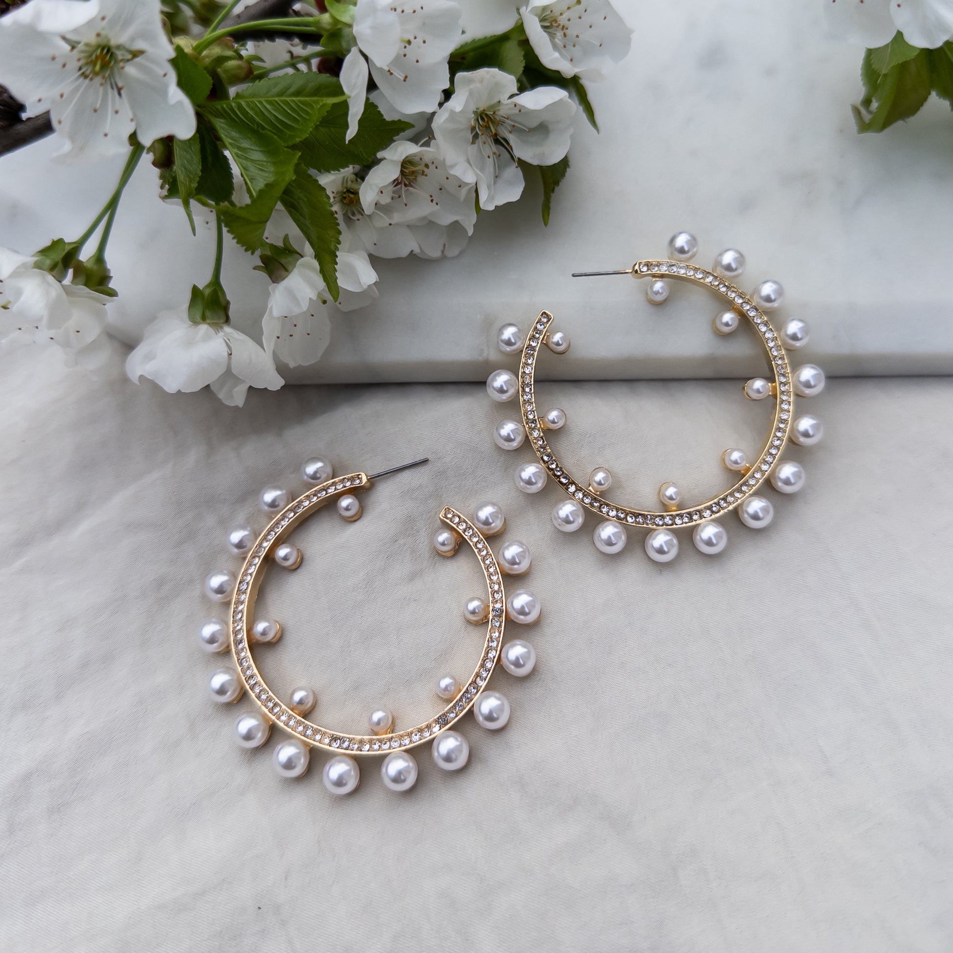 - Cercei fabricati din metal, cu cristale de sticla și perle aplicate.