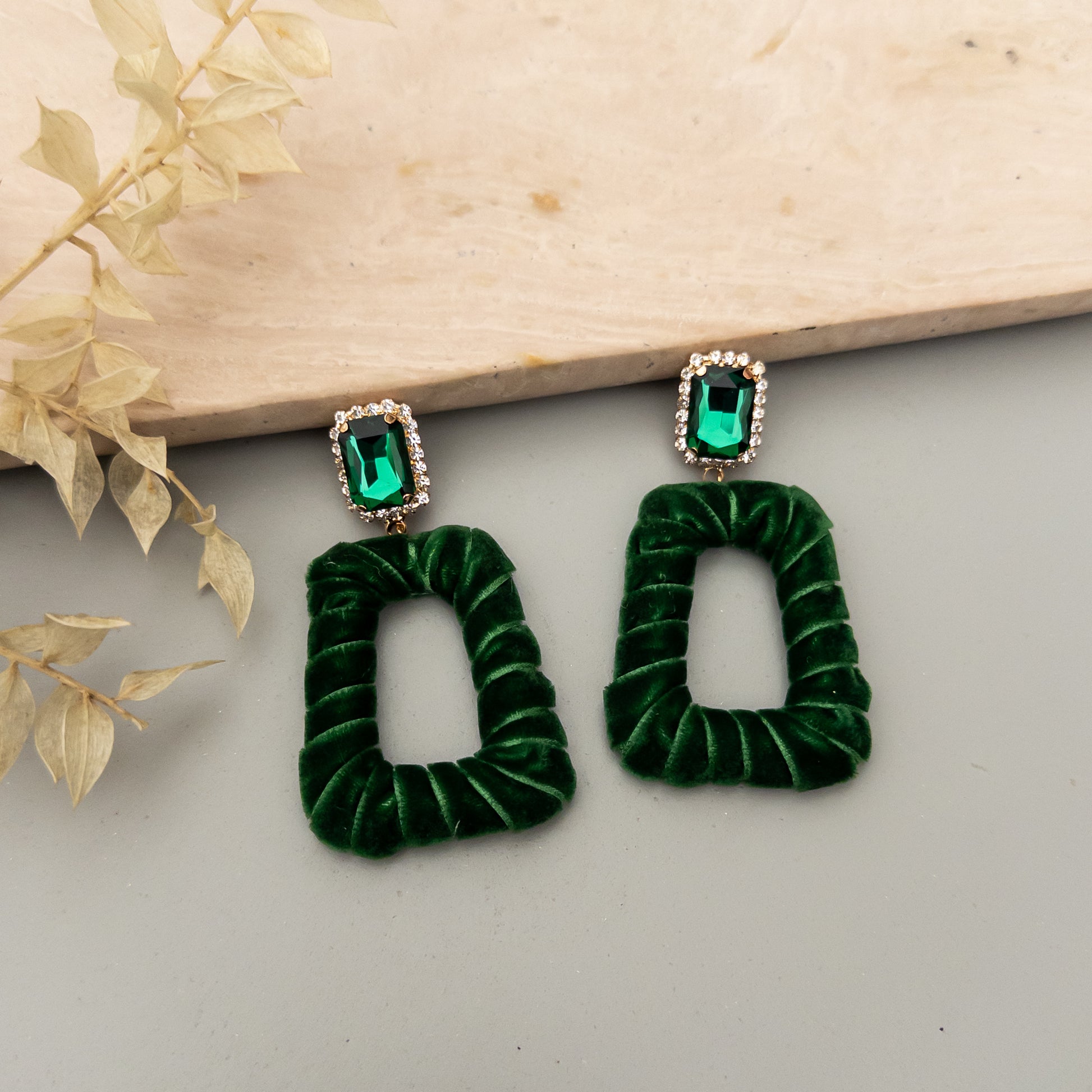- Cercei fabricati din metal, cu cristale de sticla și catifea aplicate.