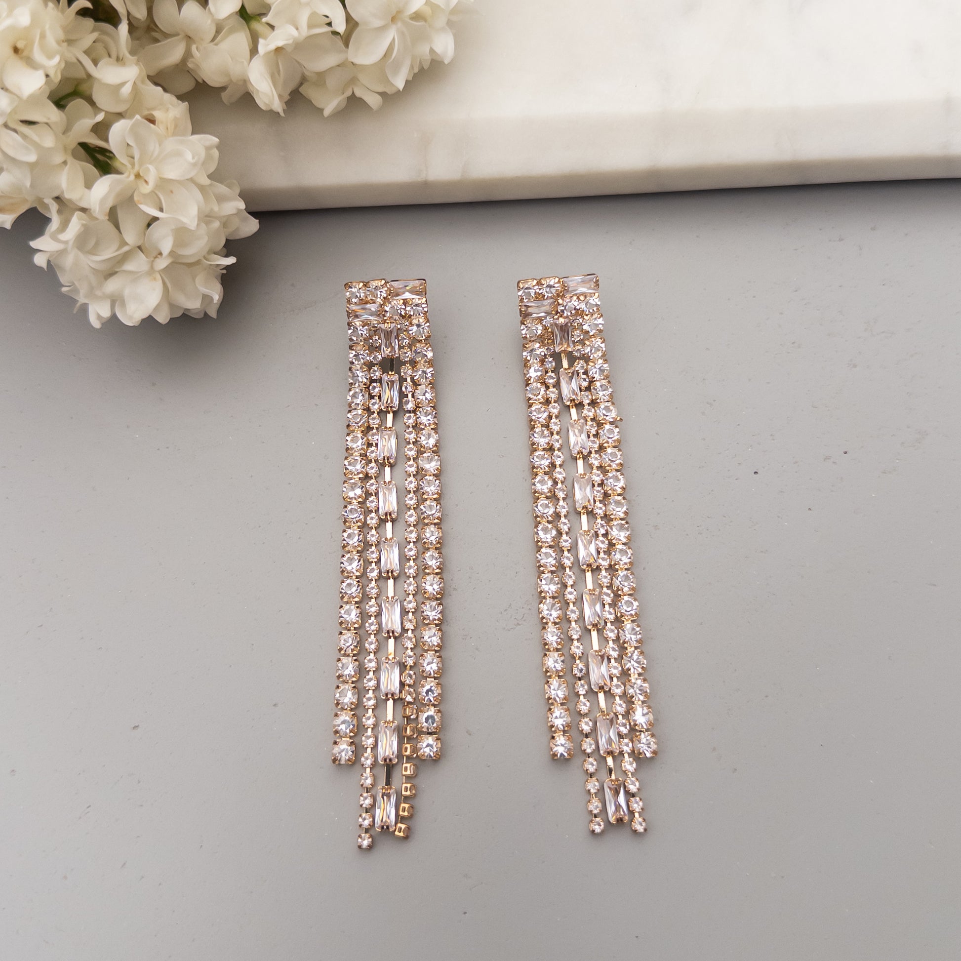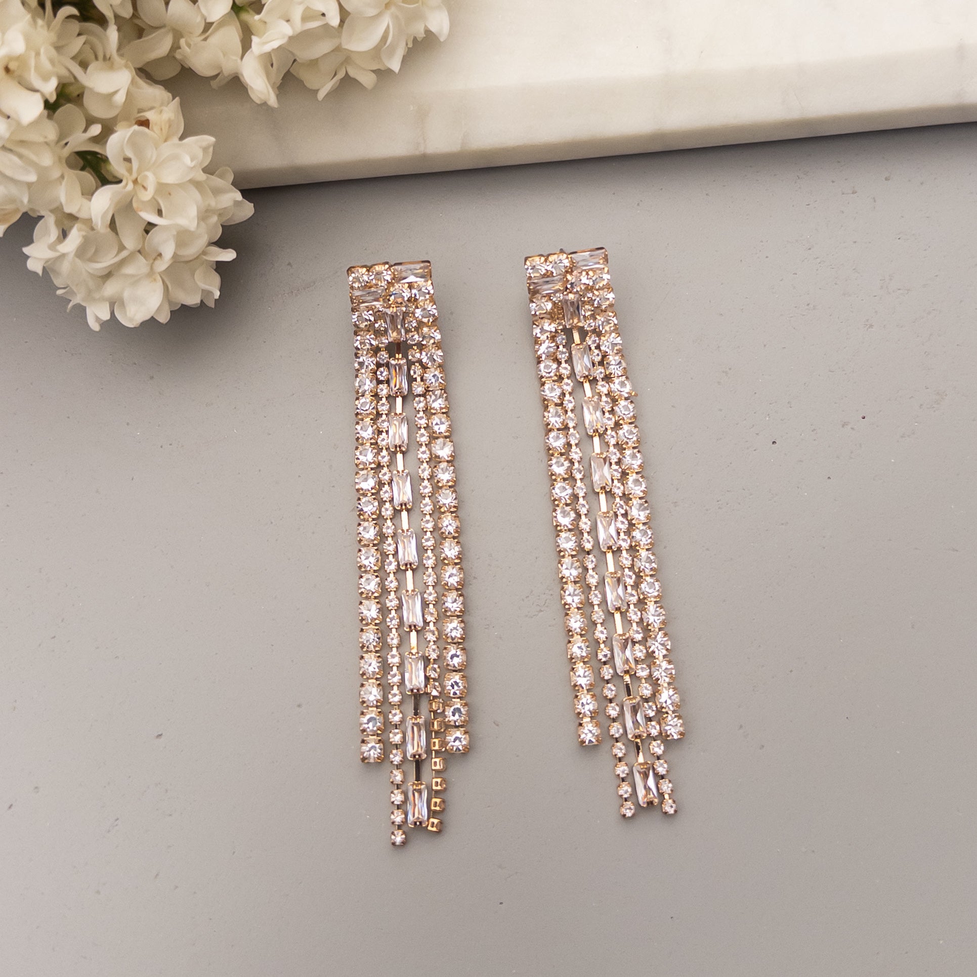 - Cercei fabricati din oțel inoxidabil, cu cristale de zirconiu aplicate.