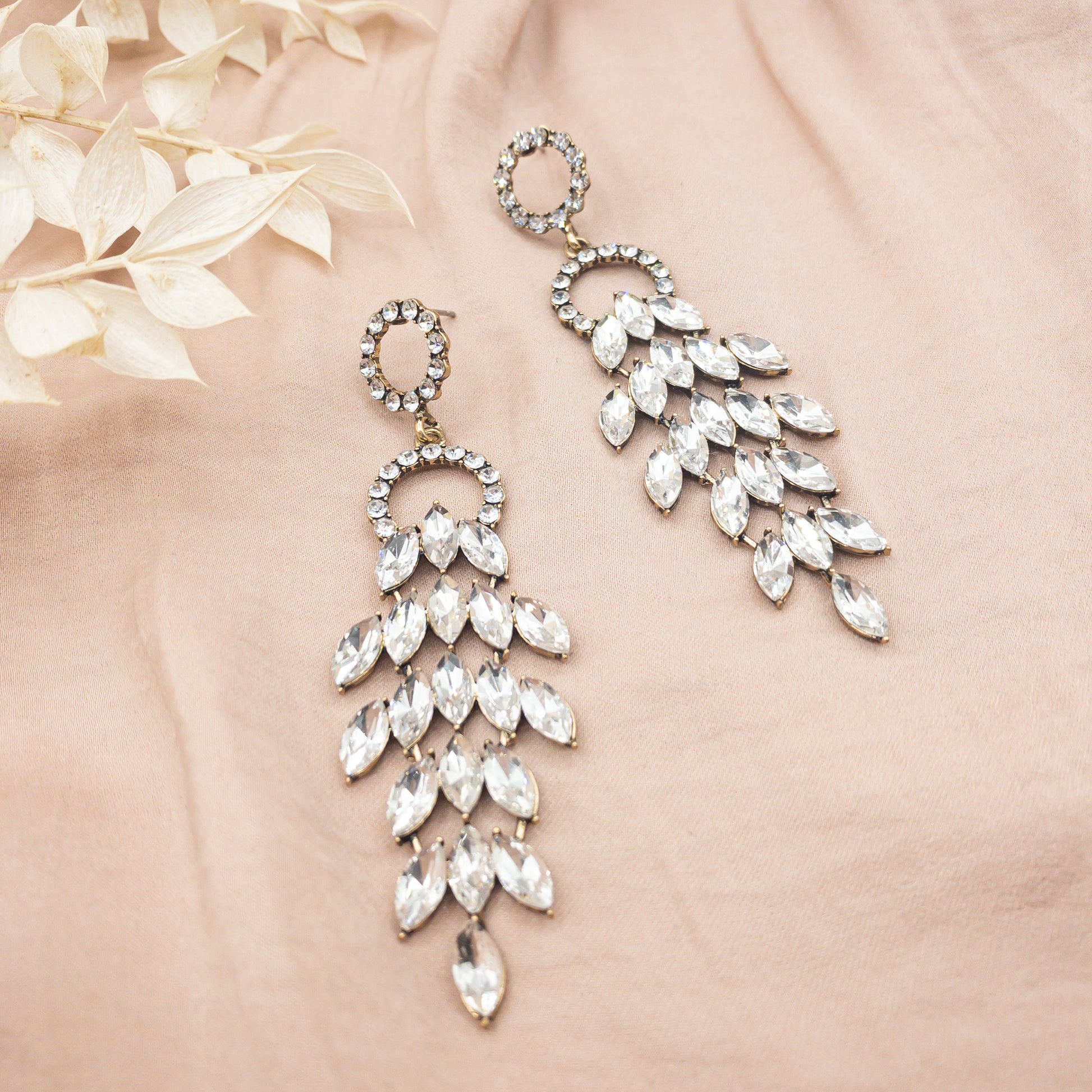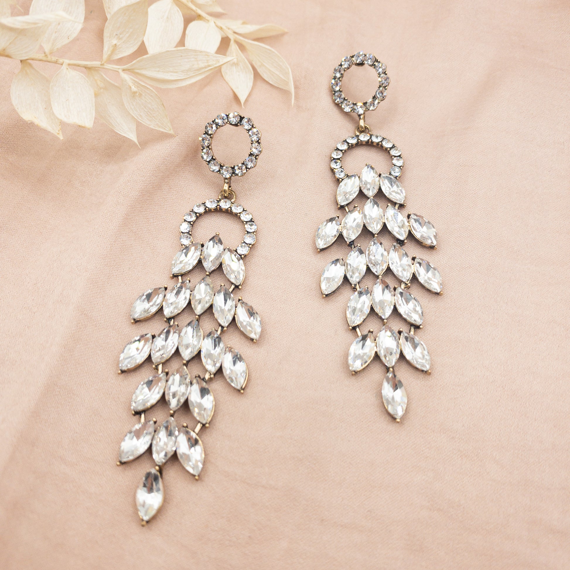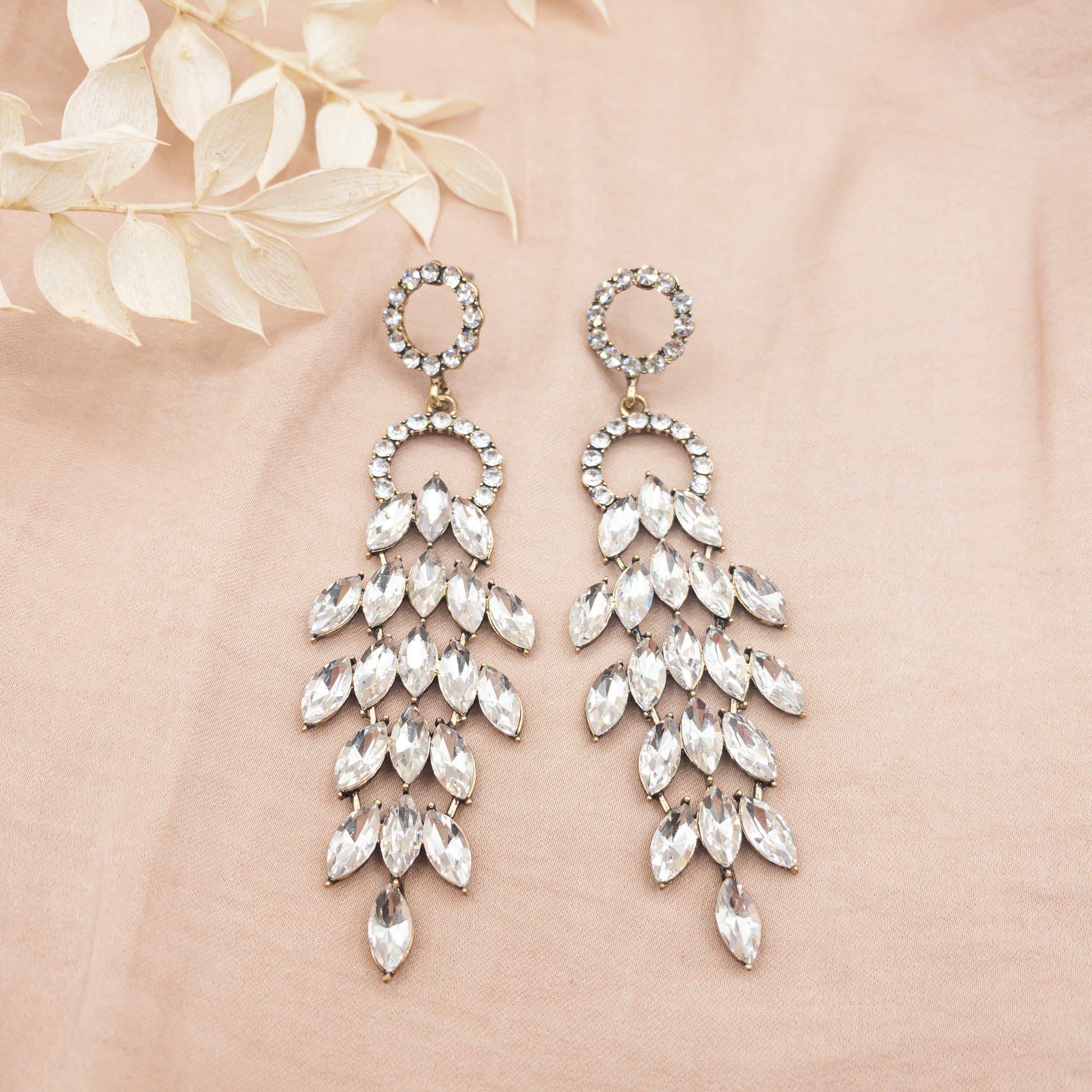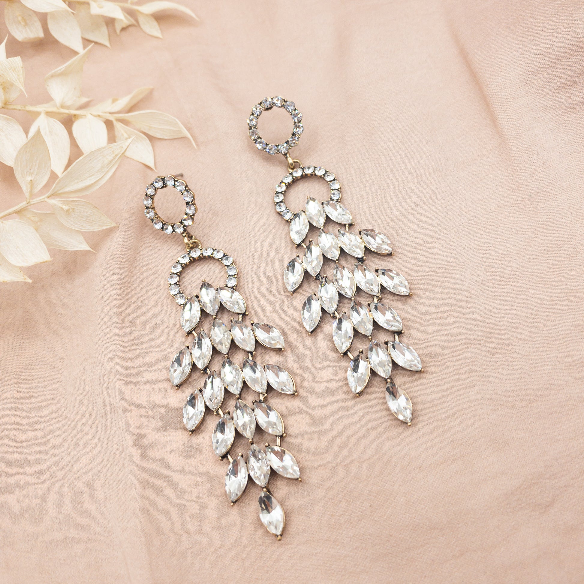 - Cercei fabricati din metal, cu cristale de sticla aplicate.
