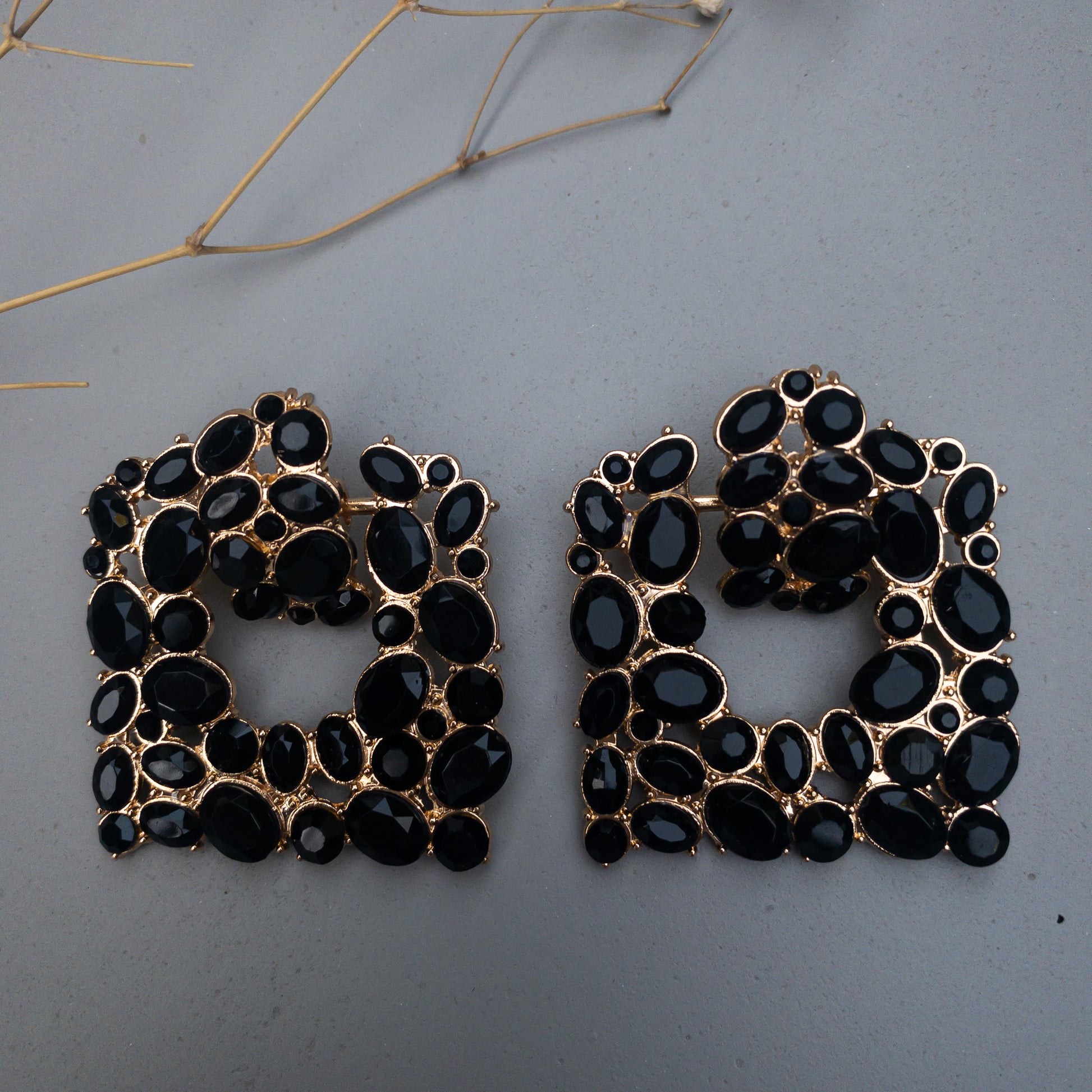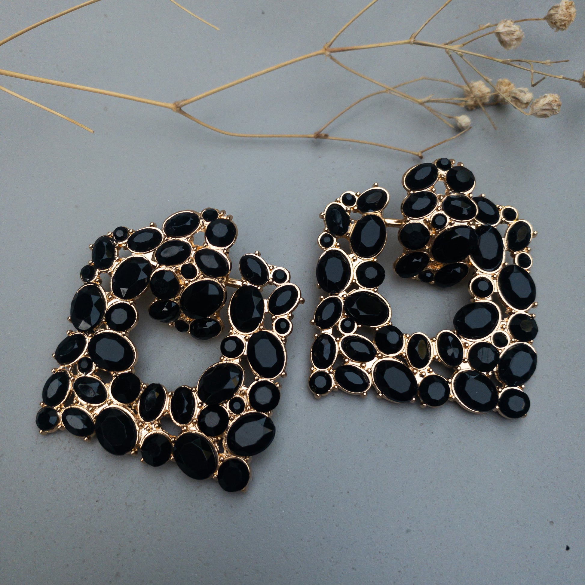 - Cercei fabricati din metal, cu cristale de sticla aplicate.