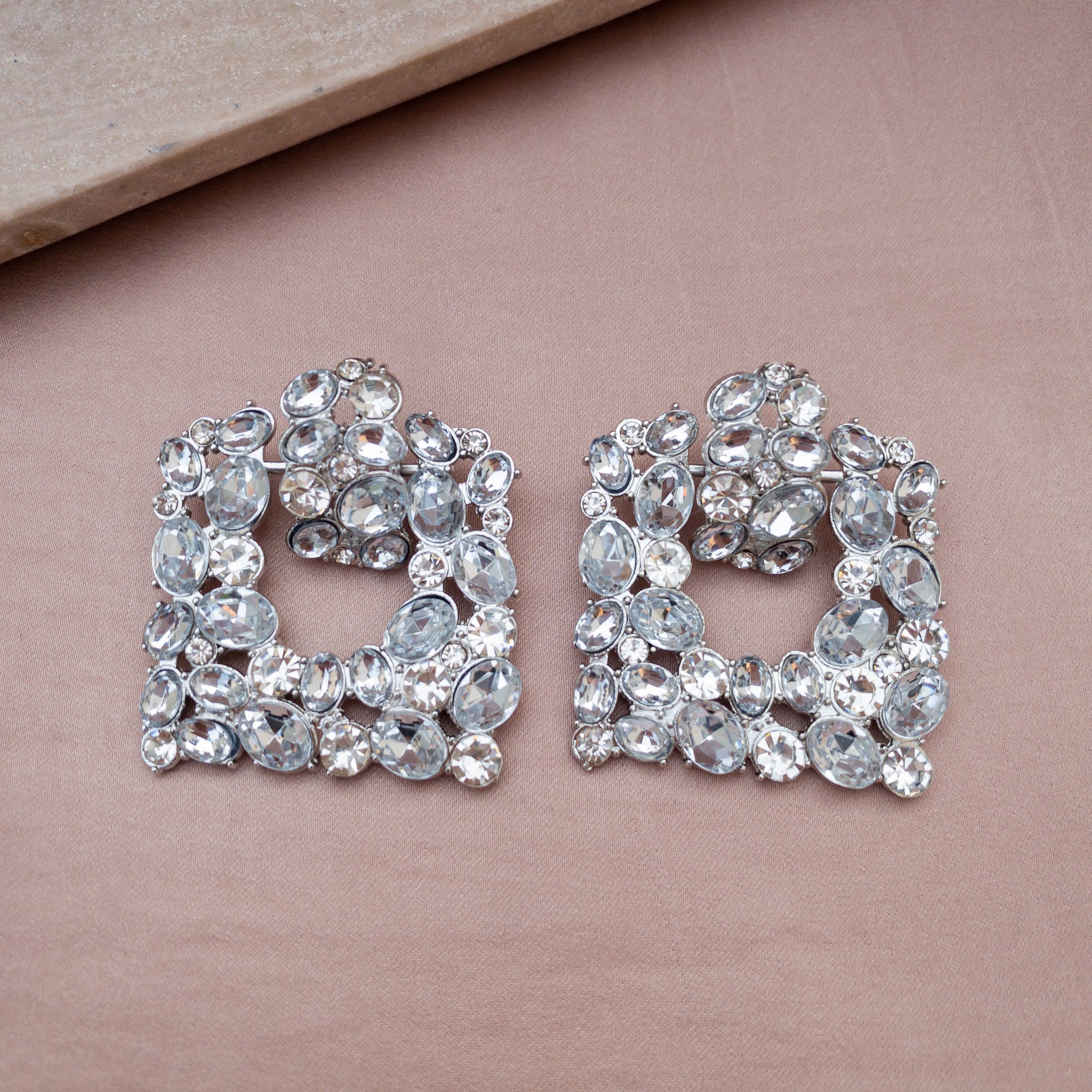 - Cercei fabricati din metal, cu cristale de sticla aplicate.