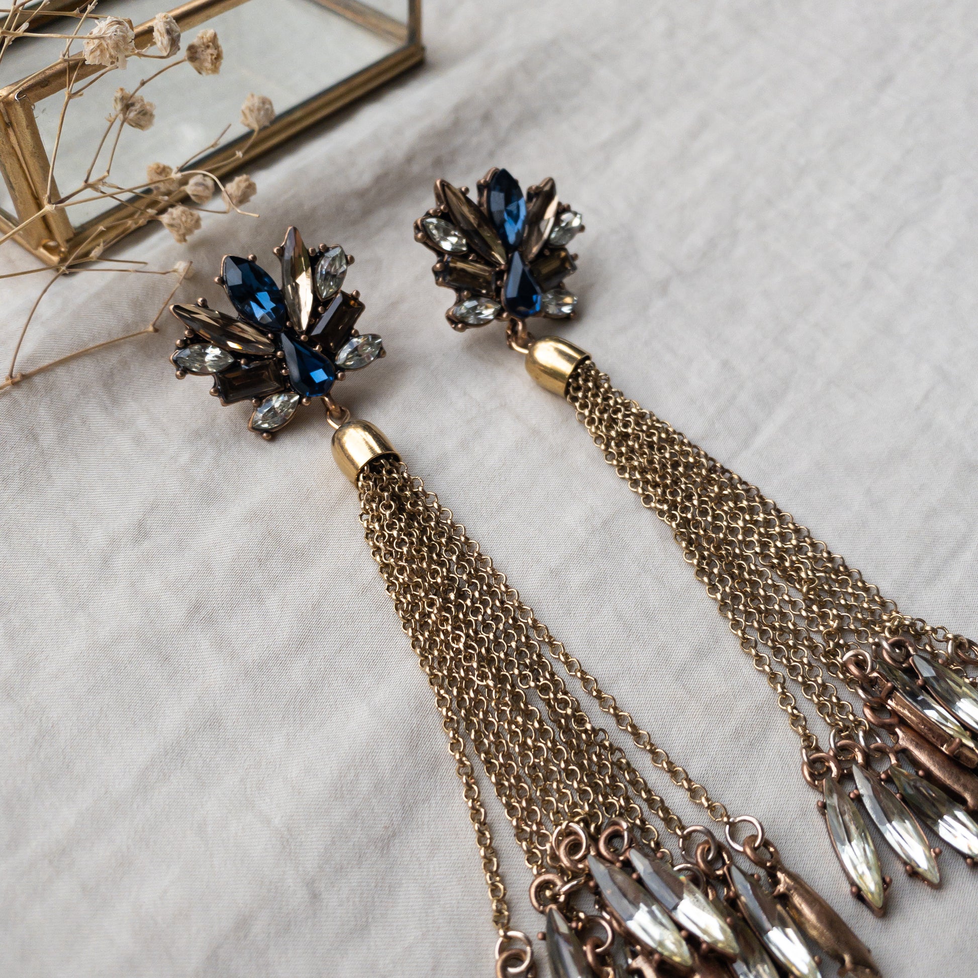 - Cercei fabricati din metal, cu cristale de sticla aplicate.
