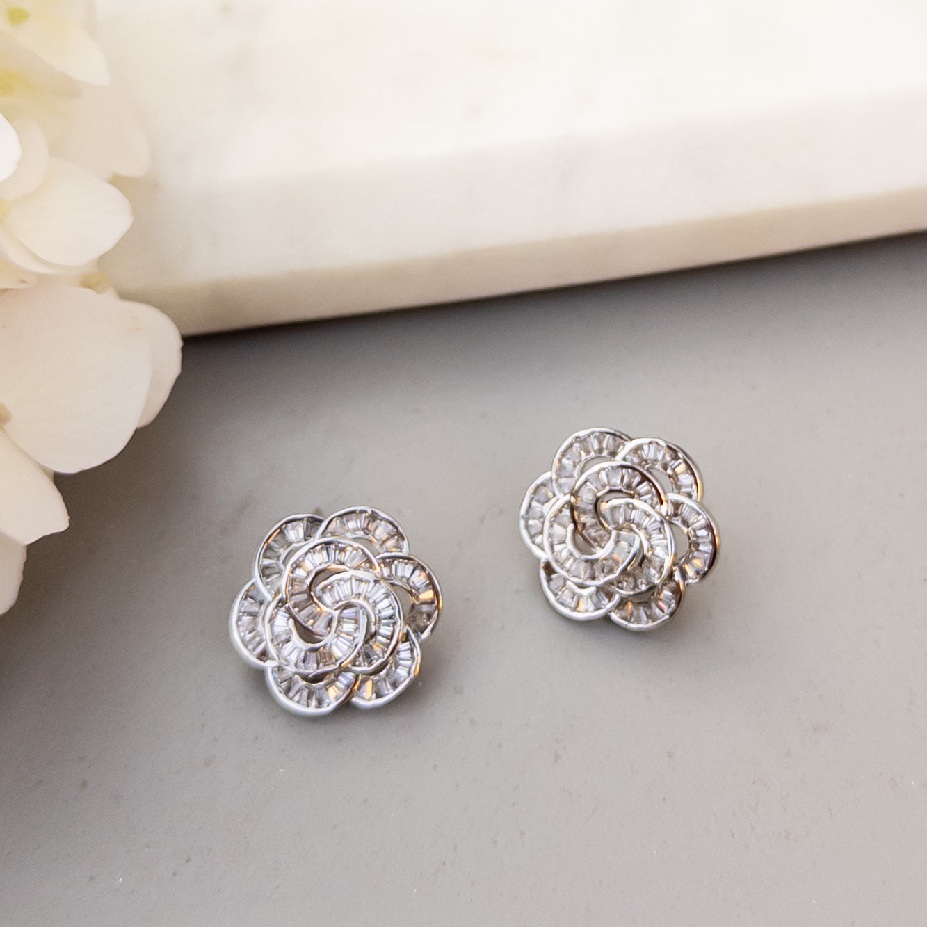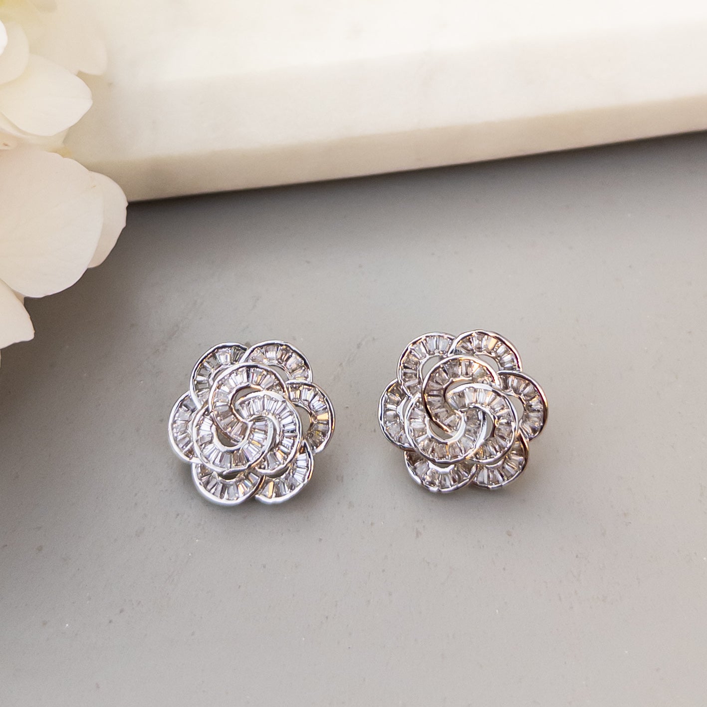 - Cercei fabricati din oțel inoxidabil, cu cristale de zirconiu aplicate.
