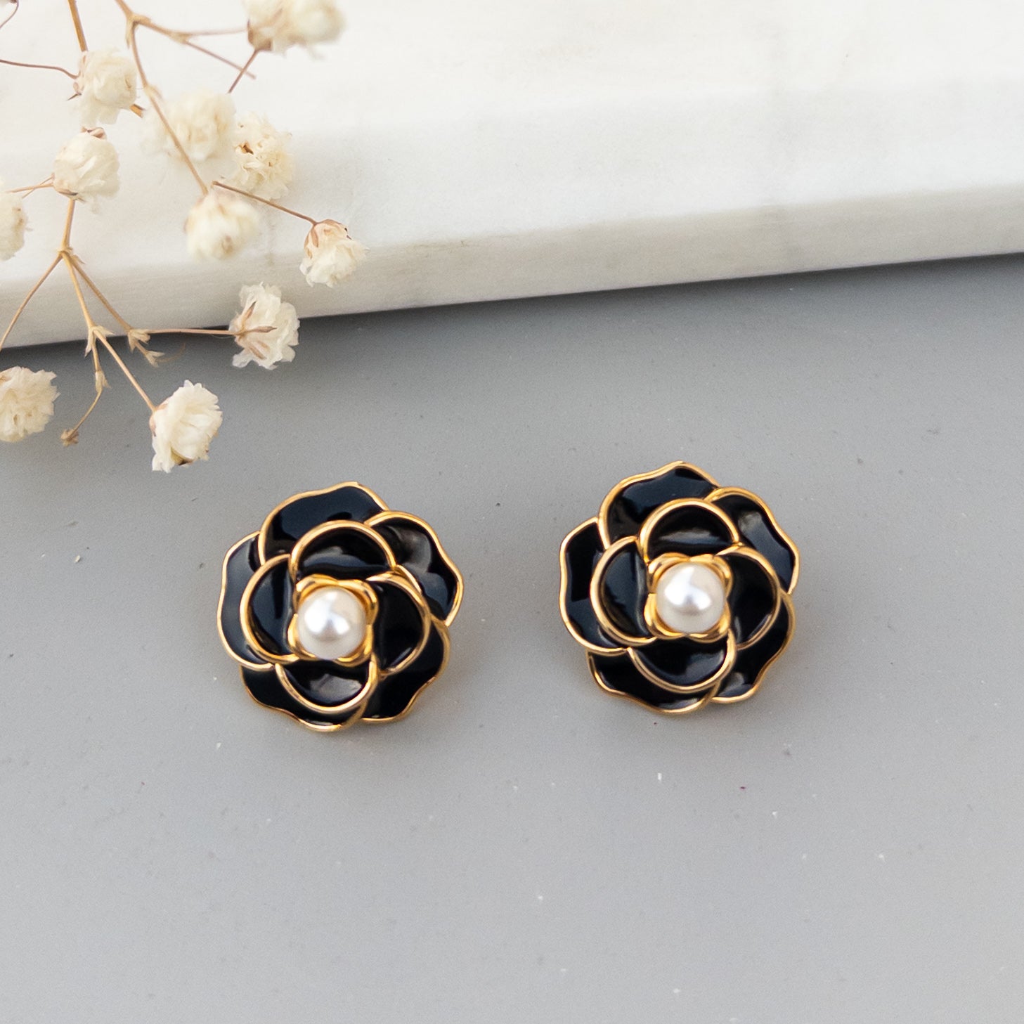 - Cercei fabricati din otel inoxidabil, placati cu rodiu, cu perle aplicate.