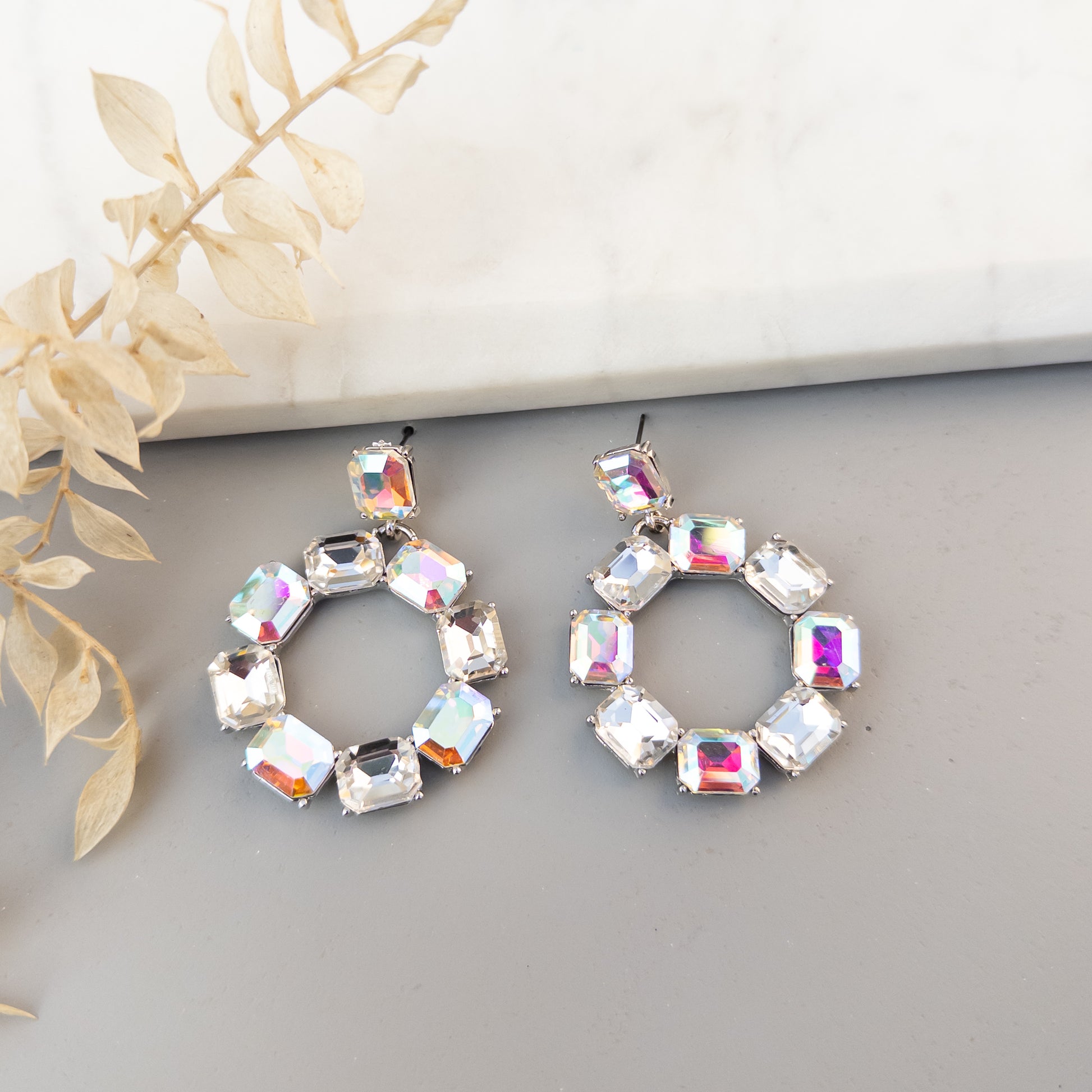 - Cercei fabricati din metal, cu cristale de sticla aplicate.